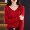 Suéter de primera línea para mujer, camisa de fondo de lana 100%, cuello en V, suéter de cachemira suelto de punto, top adelgazante para otoño e invierno