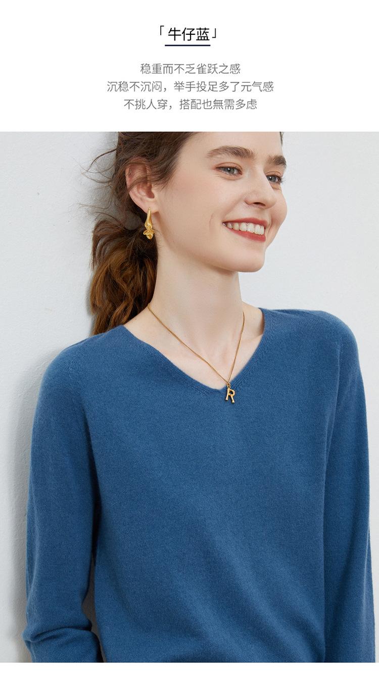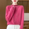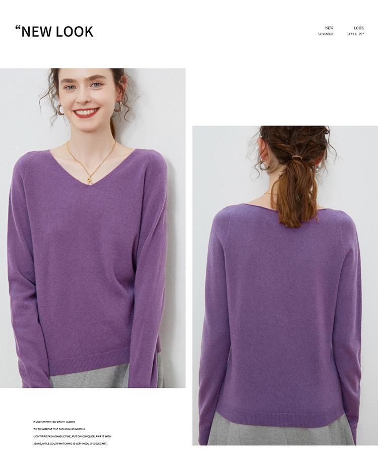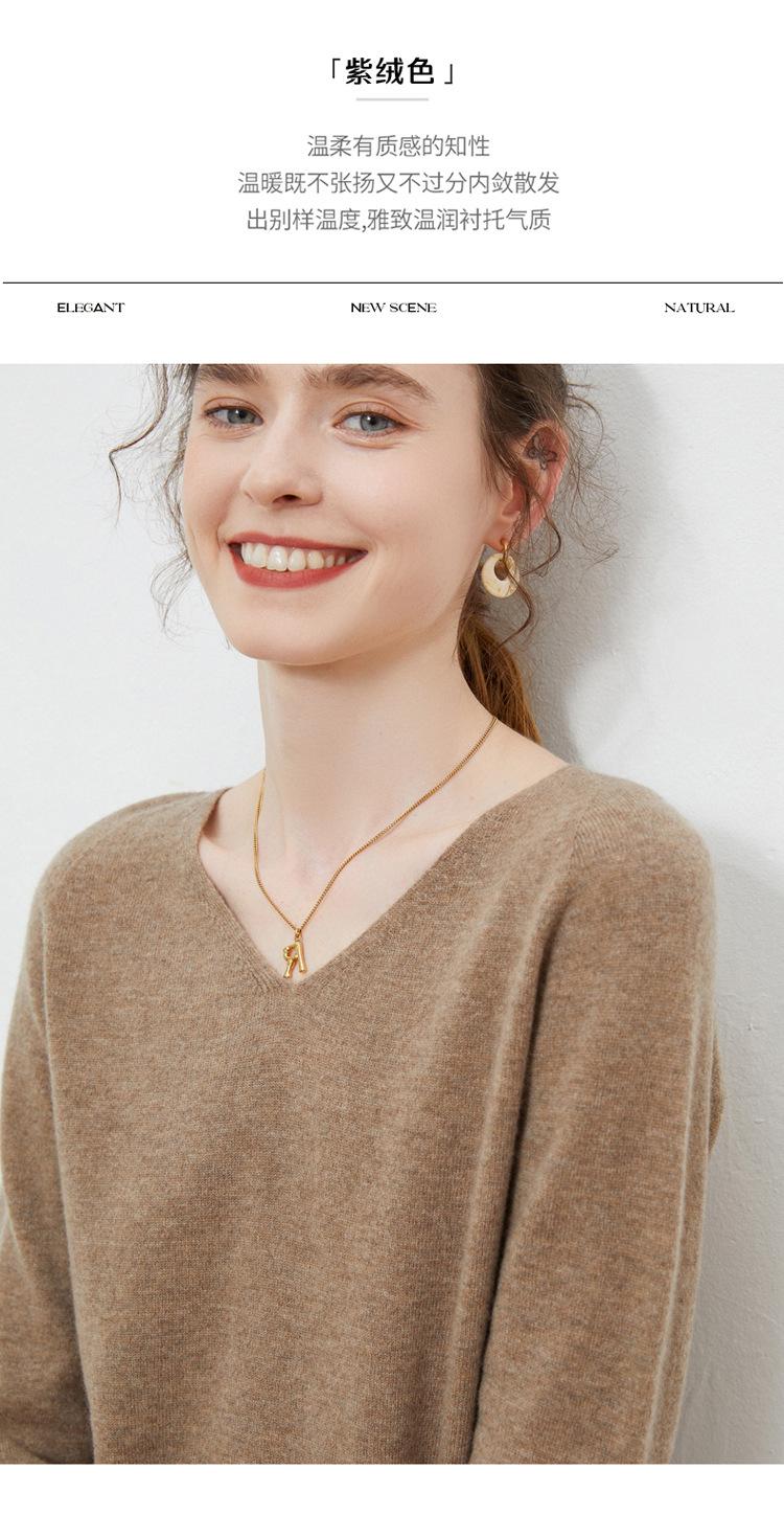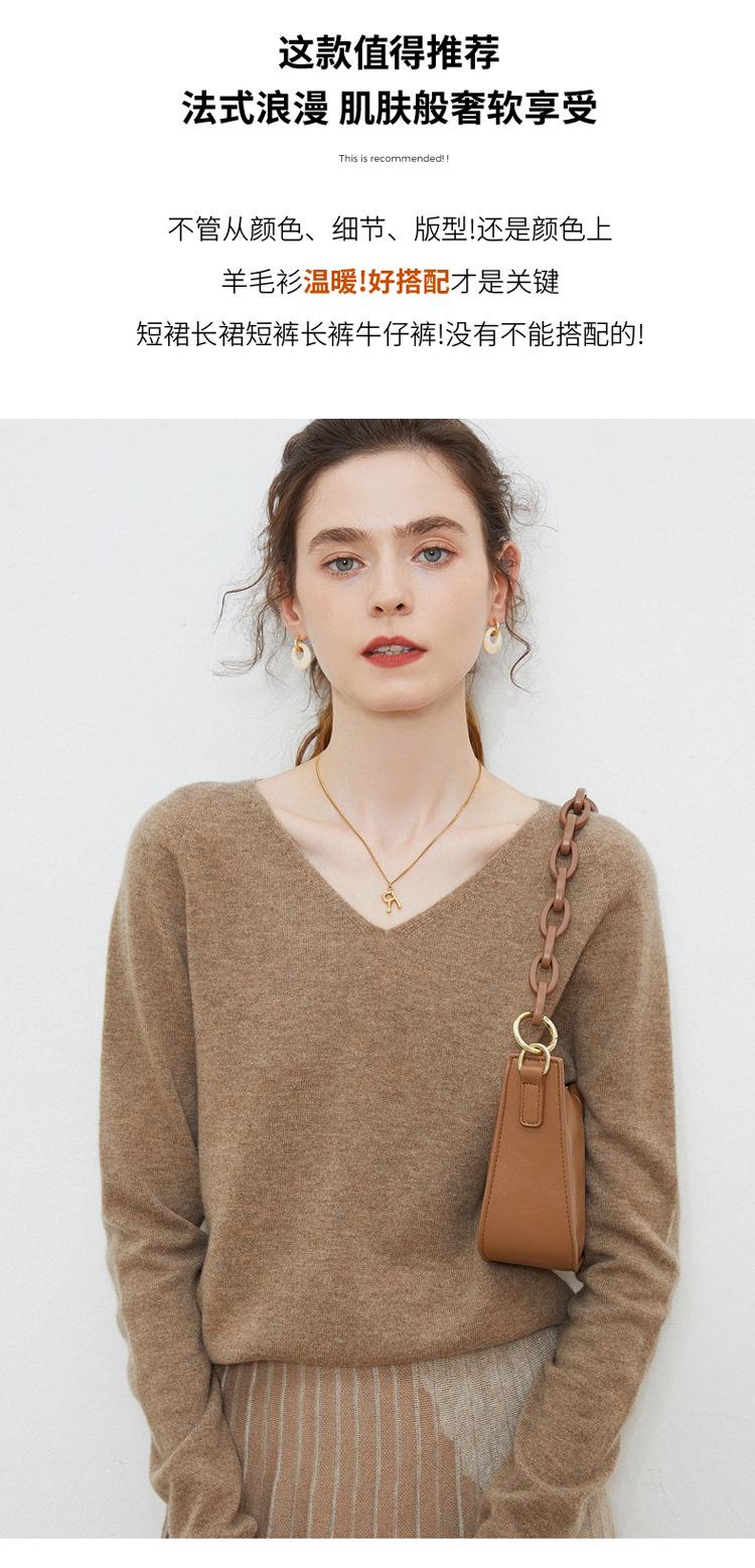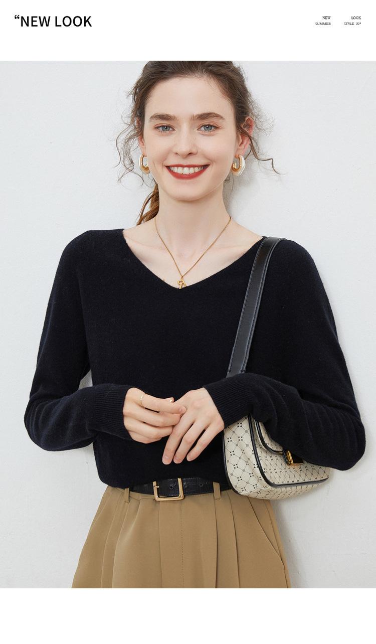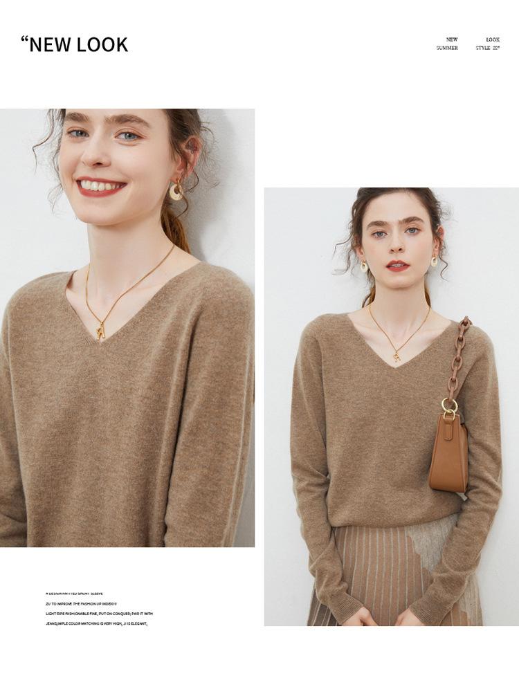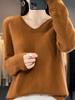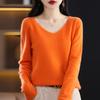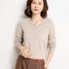 Suéter de lana confeccionado de primera línea, suéter de base de lana 100 para mujer, suéter de cachemira suelto de punto con cuello en V, top ajustado para otoño e invierno