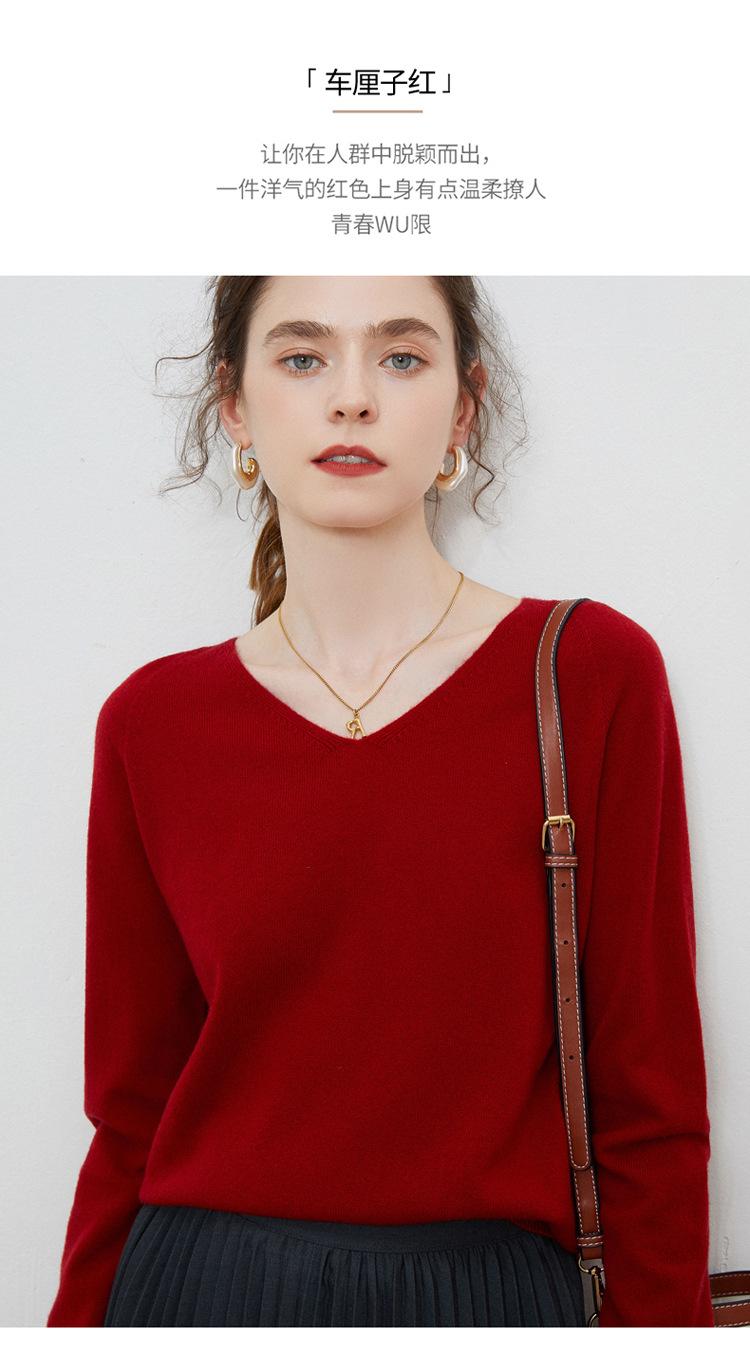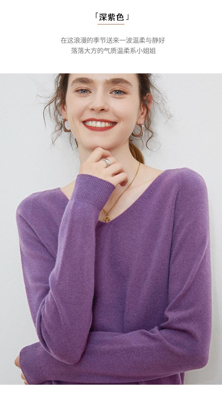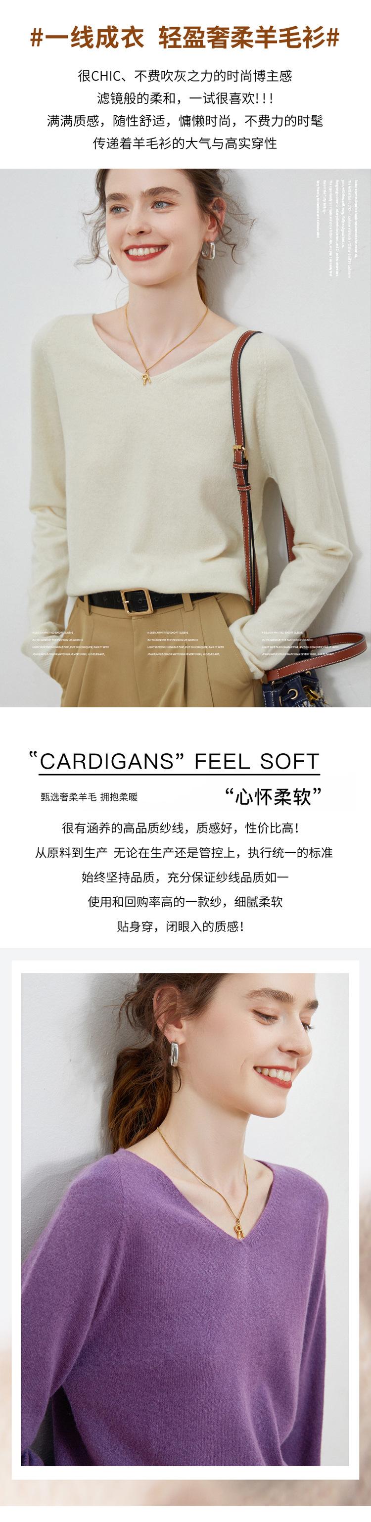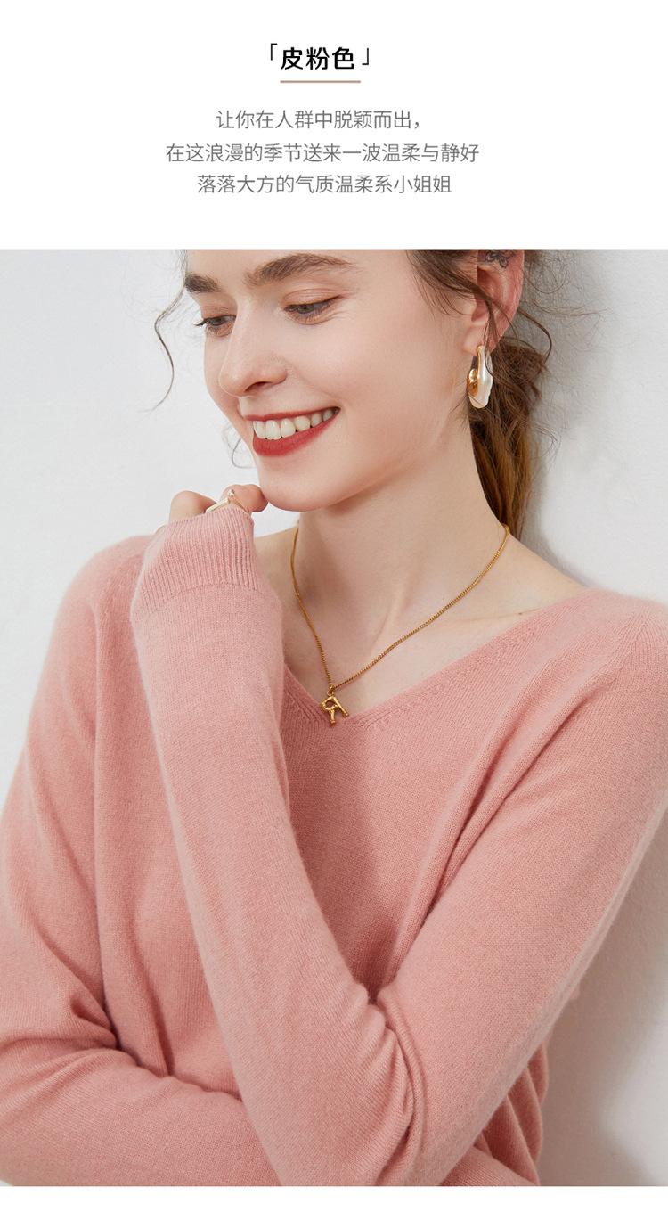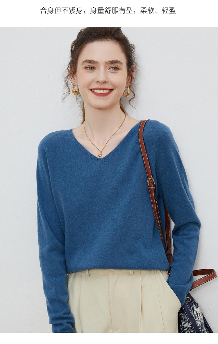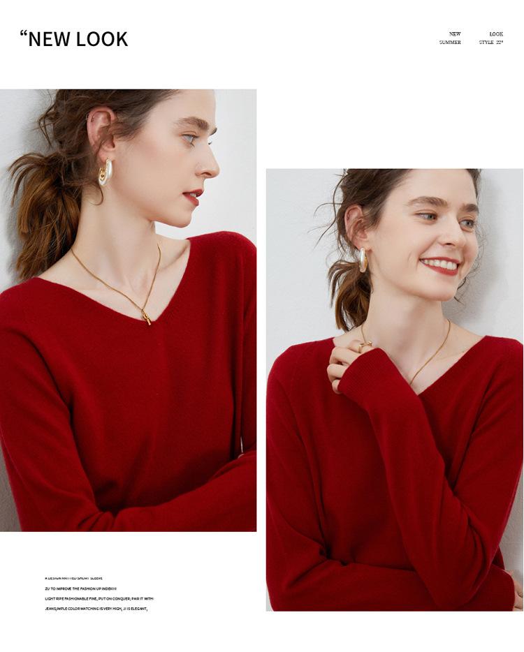 Suéter de lana confeccionado de primera línea, suéter de base de lana 100 para mujer, suéter de cachemira suelto de punto con cuello en V, top ajustado para otoño e invierno