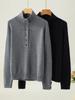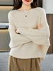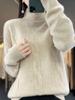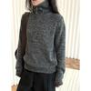 Otoño e Invierno Estilo Perezoso Cuello Alto Medio Todo Lana Simple Color Puro Tejido de Punto para Mujer Abertura Lateral Tejido de Punto Casual Holgado