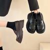 Mocasines de piel suave con suela gruesa y diseño versátil para mujer, primavera y otoño 2025, estilo británico, pequeños, negros, sin cordones.