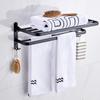 Compra Toallero de baño de aluminio negro espacial, toallero de pared sin perforaciones, toallero plegable de doble capa, estante de almacenamiento al por mayor en Joom.pro