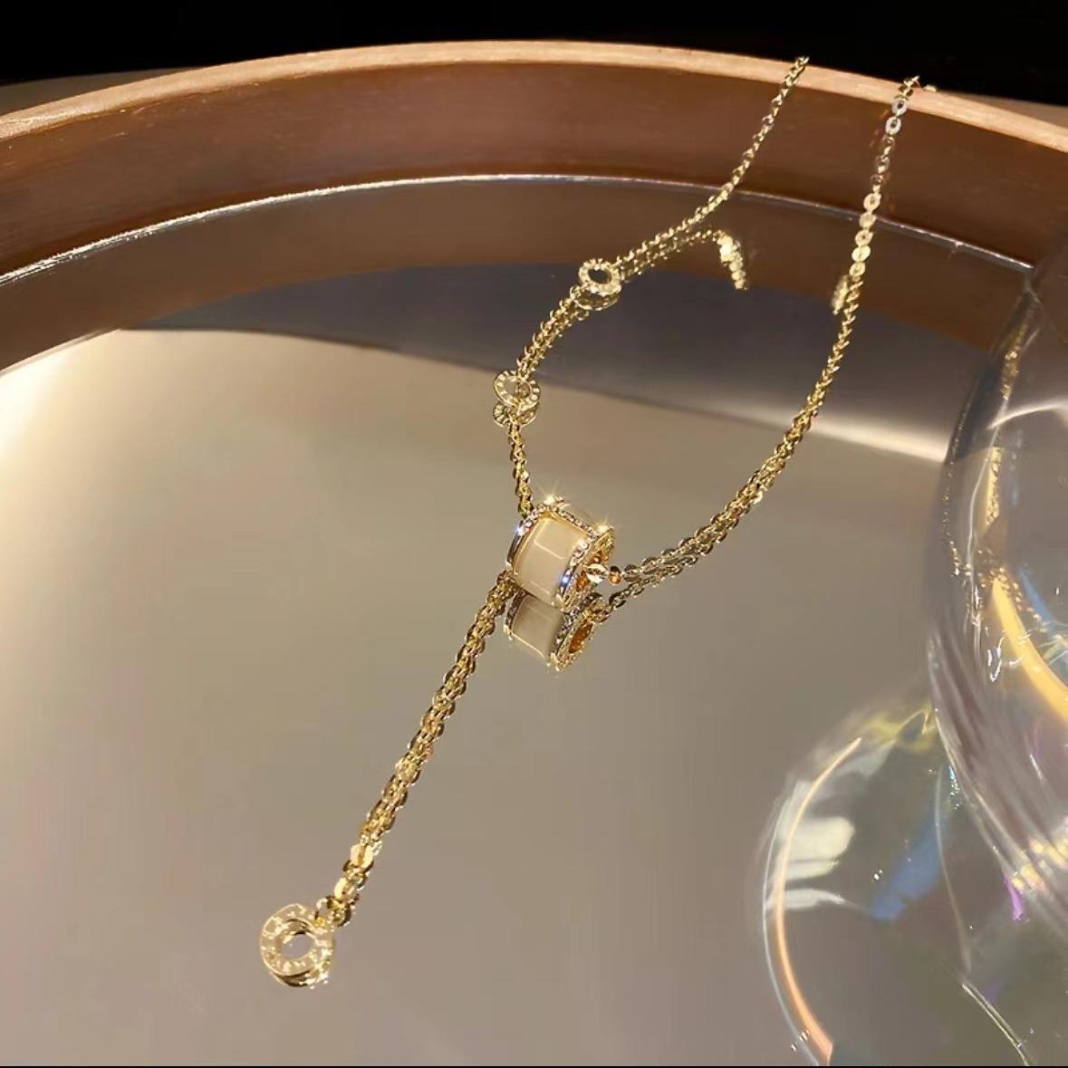 Collar de diamantes con piedra de ojo de gato de acero de titanio, colgante de cintura de acero inoxidable, cadena de clavícula, versión coreana de la nueva joyería para mujer, venta al por mayor