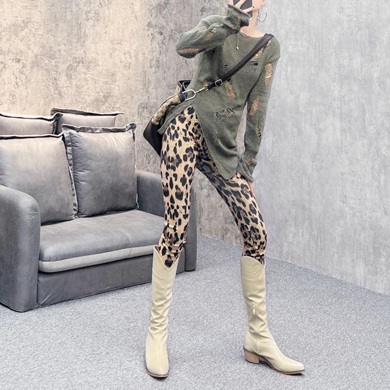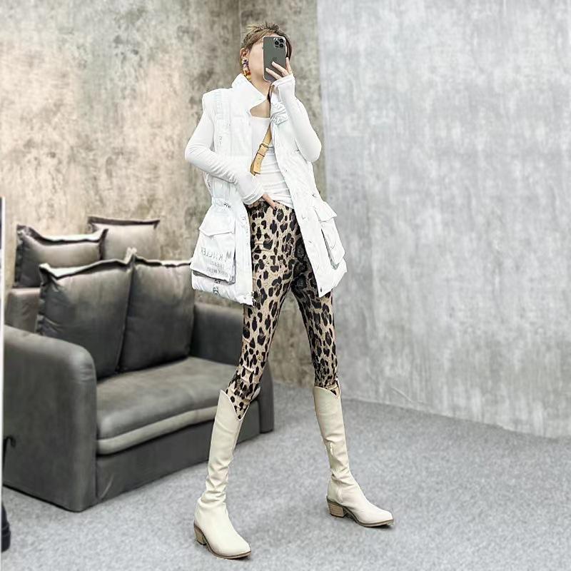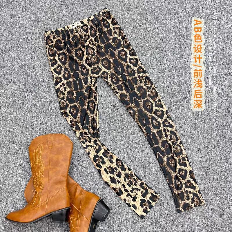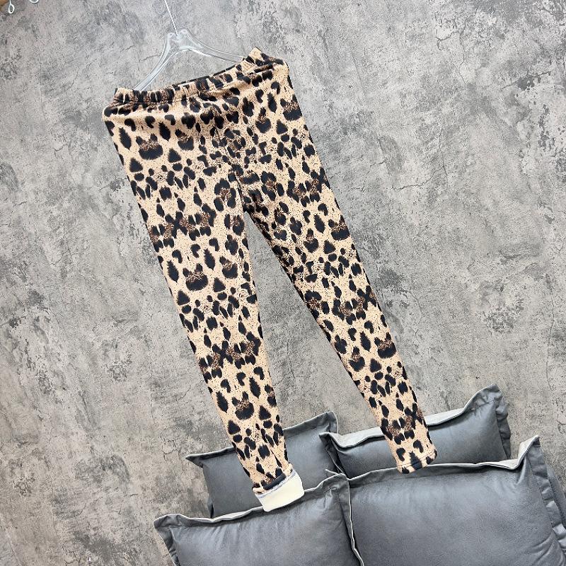 Ropa exterior gruesa con forro polar para mujer europea y americana, pantalones elásticos de cintura alta, pantalones capri de yoga con estampado de leopardo a la moda, pantalones para entrega
