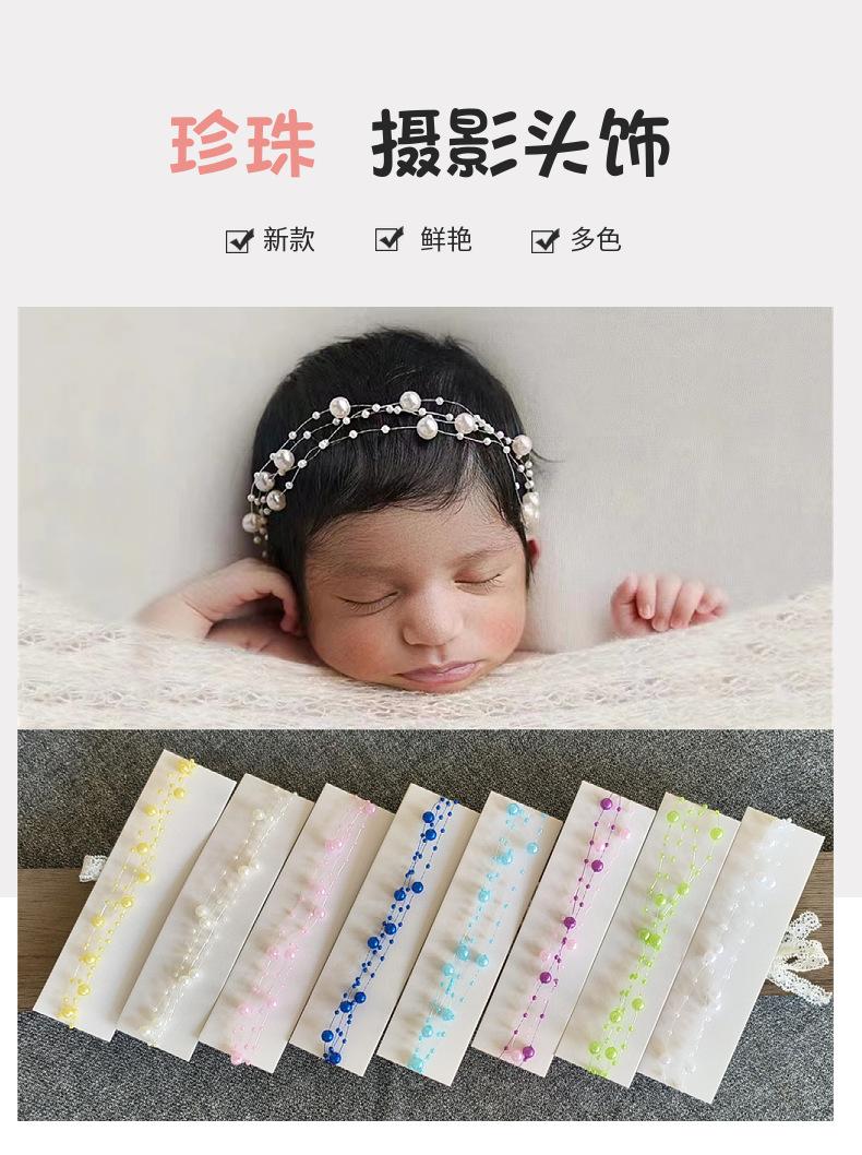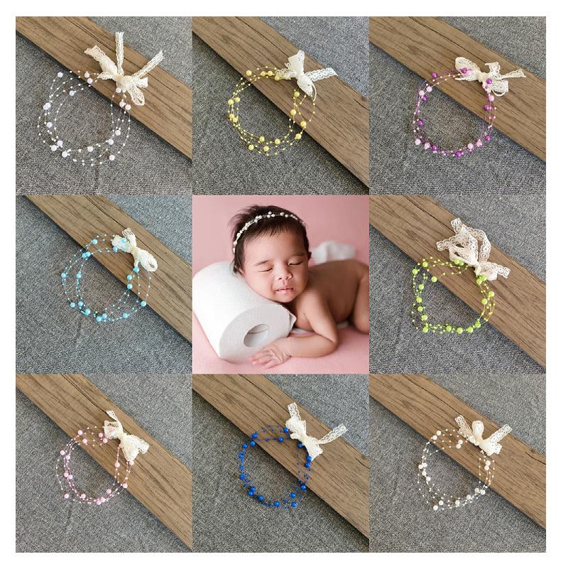 Accesorios para Fotos de Bebé Fotografía Infantil Flor para la Cabeza Perla Tocado Accesorios para el Cabello Foto de Bebé Trabajo de Líneas Hecho a Mano Banda para el Cabello