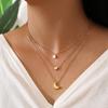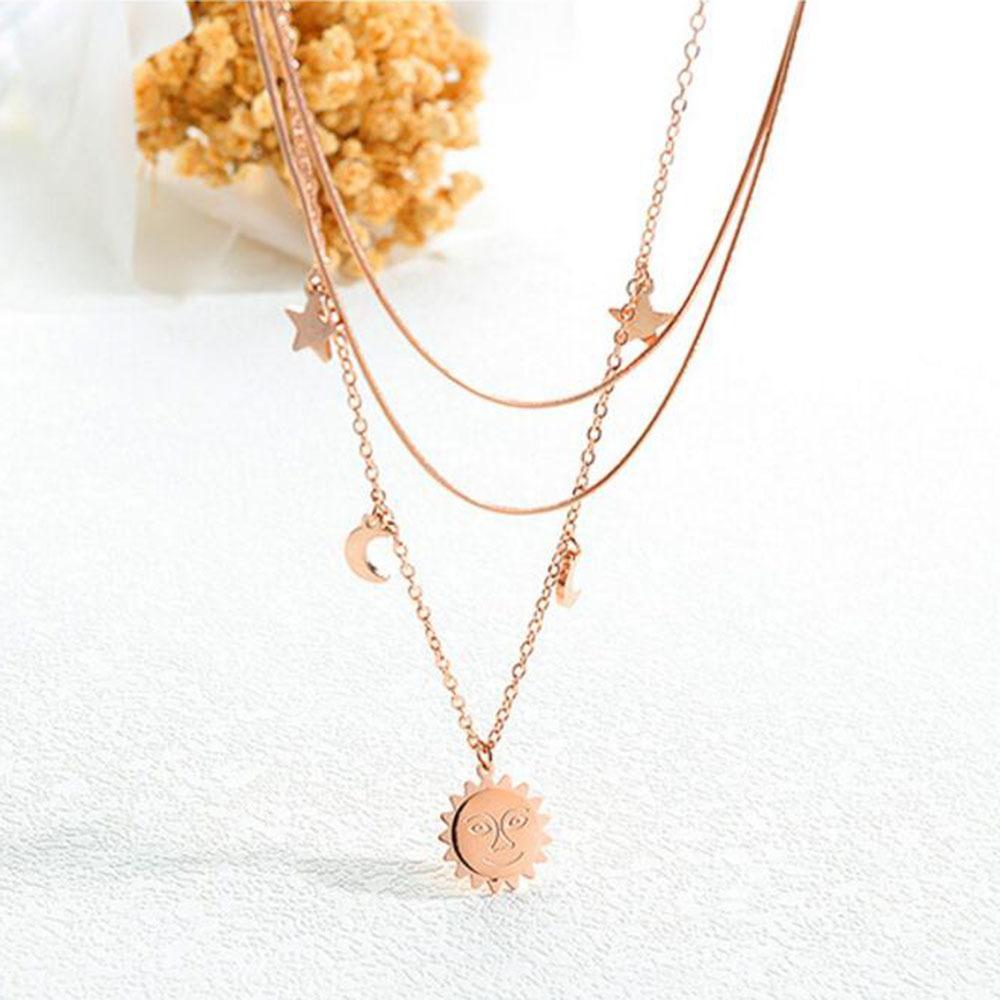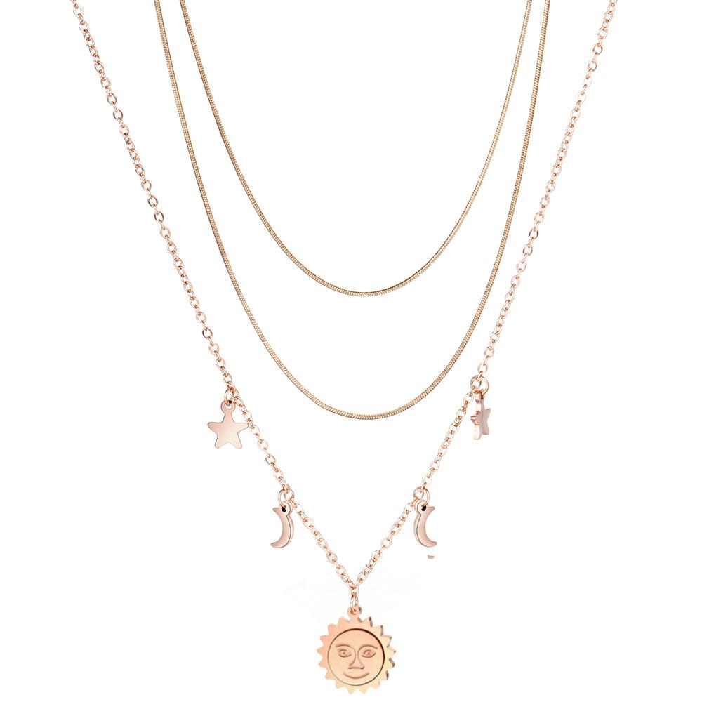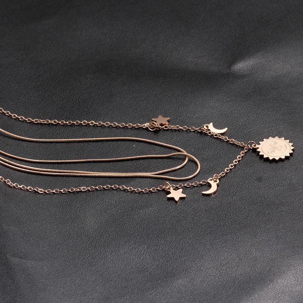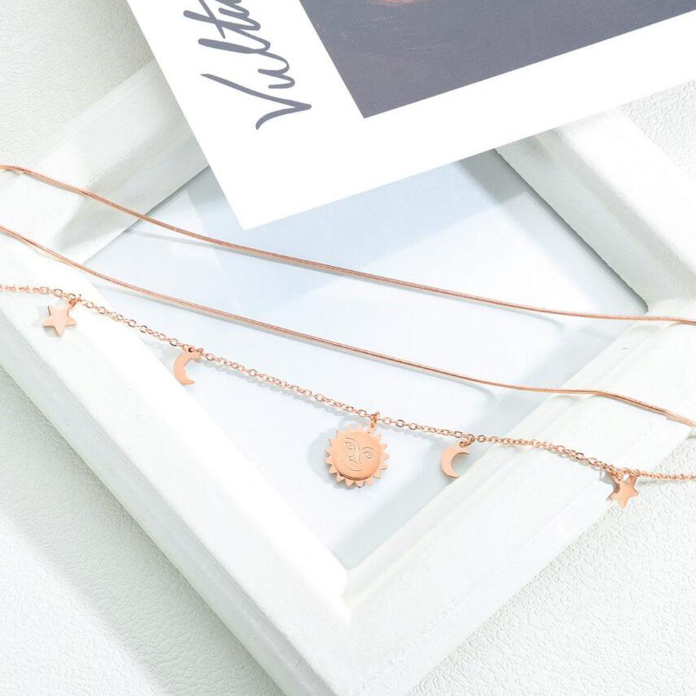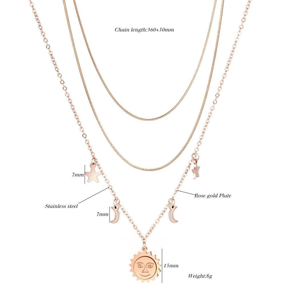 Collar de acero de titanio apilado de doble capa con diseño de sol, luna y estrella personalizado transfronterizo europeo y americano, collar de cadena de clavícula de moda combinable para mujer