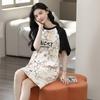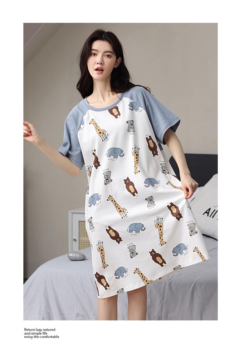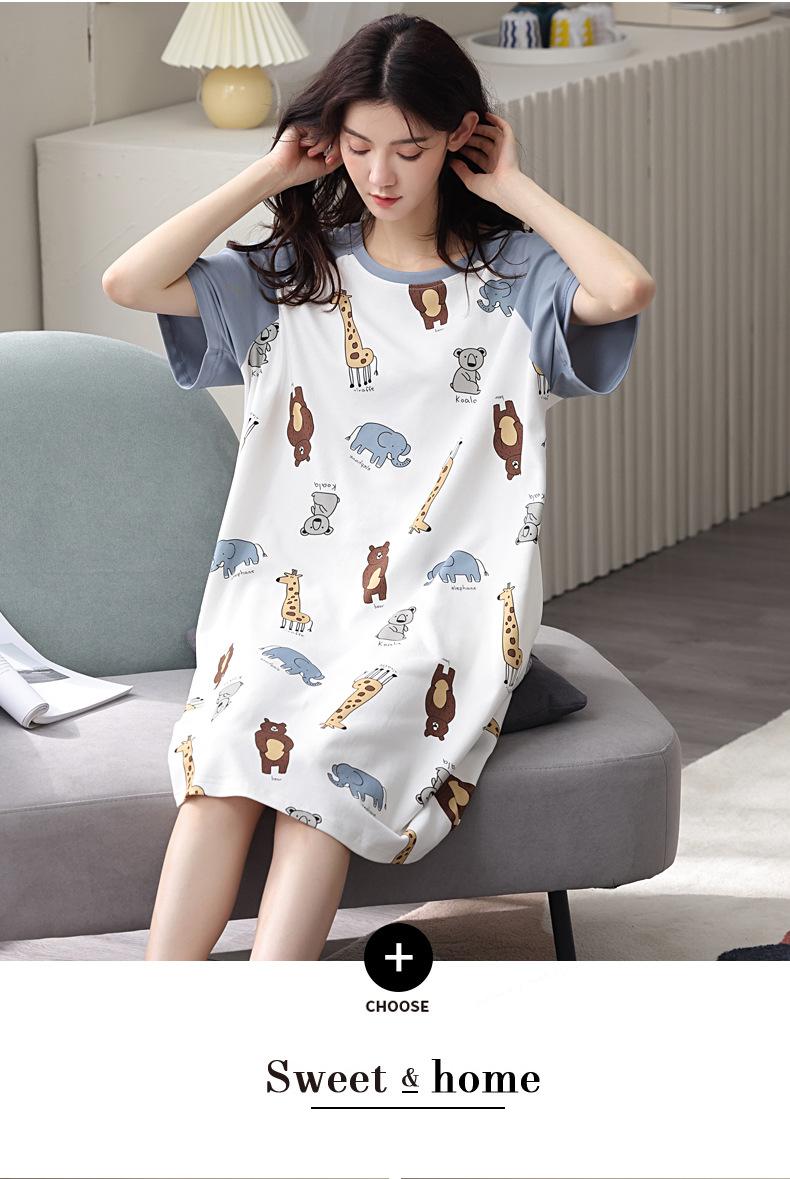 Camisón para Mujer, Vestido de Manga Corta de Algodón Puro para Mujer para Verano, Falda de Algodón para Mujer, Se Puede Usar Afuera, Pijama de Verano para Estar en Casa