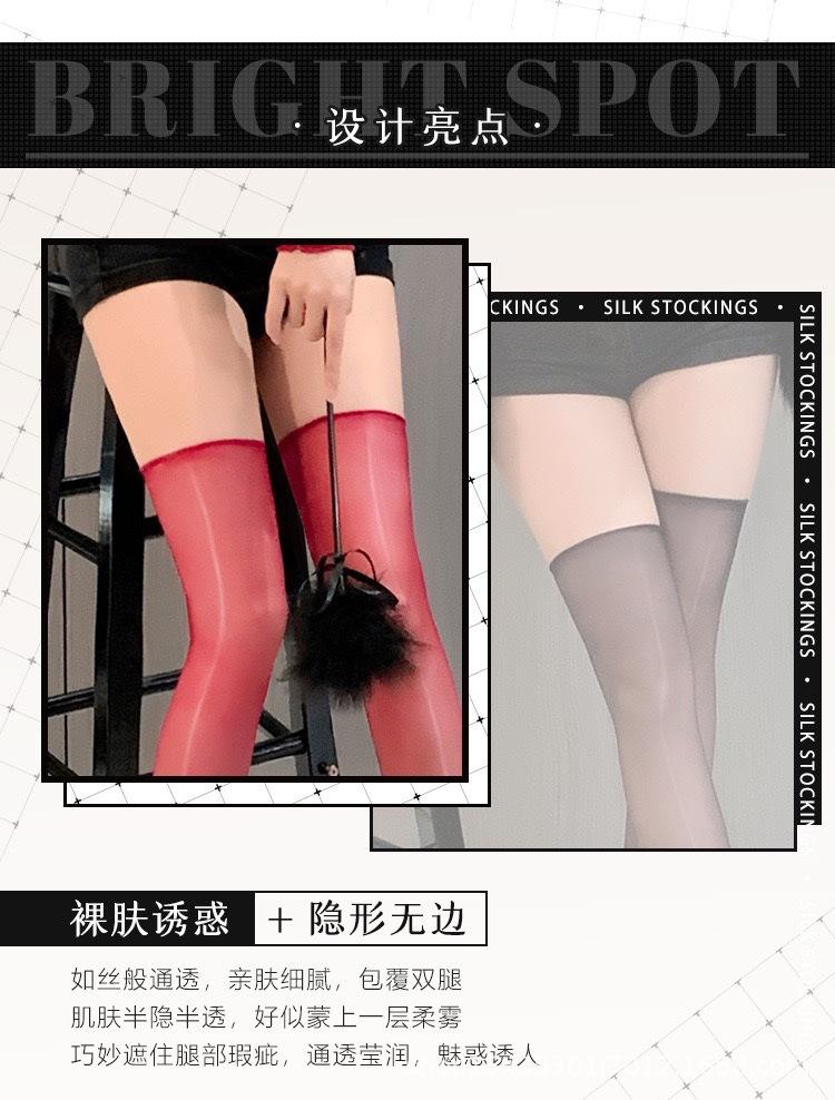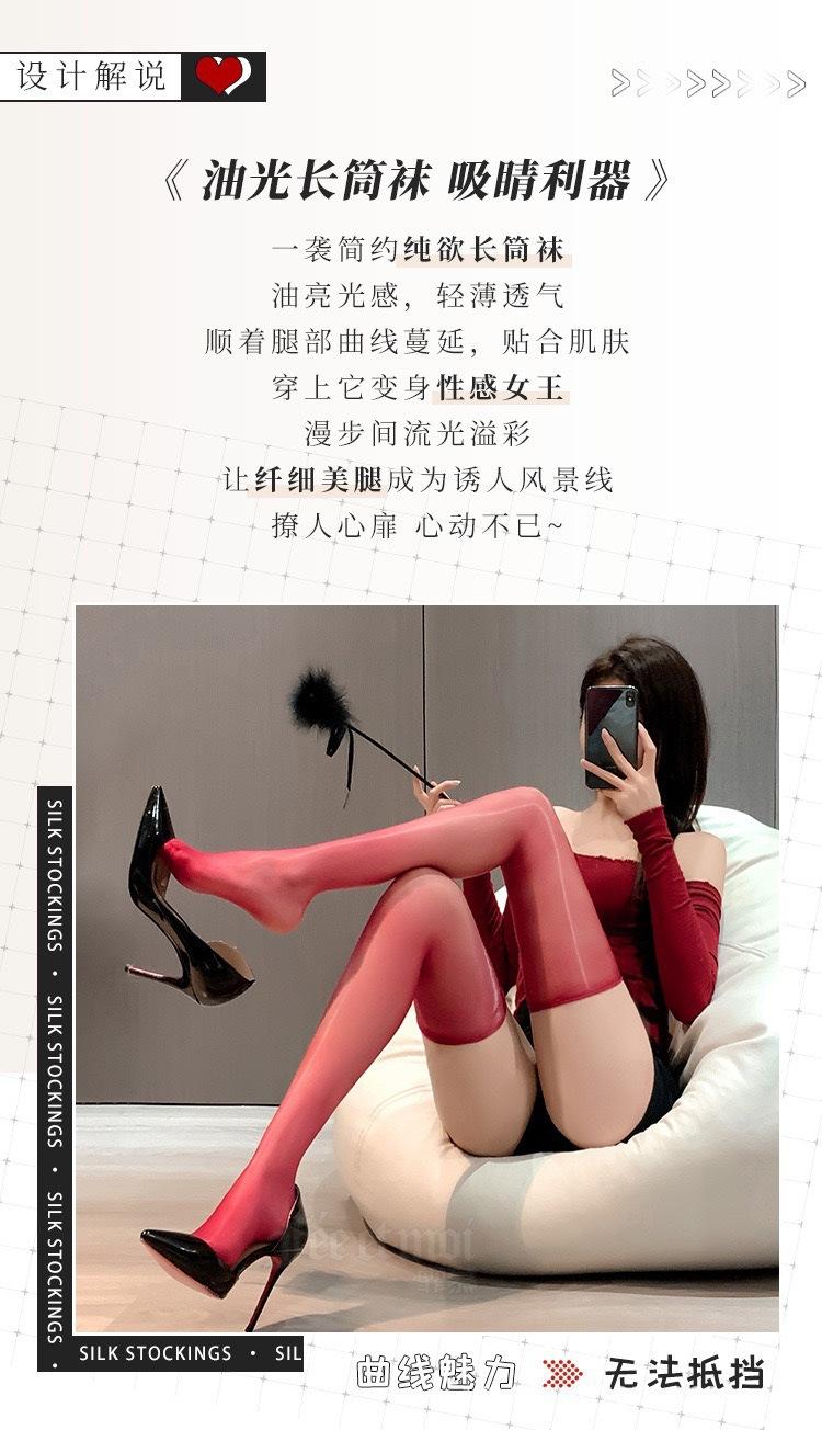 Medias de Seda Negra Brillante Aceitada 15D Seda Brillante Ultrafinas Aceitadas Ligeras Sexys Hasta el Muslo Rojo Cibernético Medias Sin Borde Liguero de Mujer