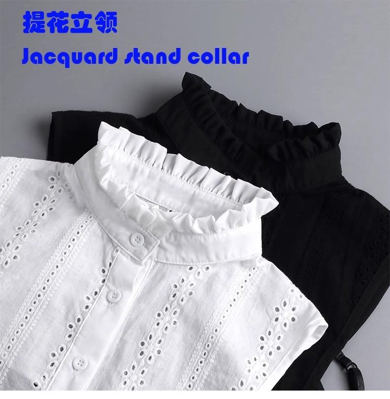 Suéter de mujer con cuello falso, cuello con volantes decorativos, cuello de muñeca de medio cuerpo, otoño, invierno, primavera, base de algodón jacquard, camisa de cuello redondo