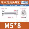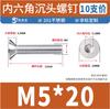 Tornillo de cabeza plana hexagonal de acero inoxidable 201, tornillo de cabeza avellanada hexagonal, tornillo de cabeza hexagonal M3M4M5M6M8