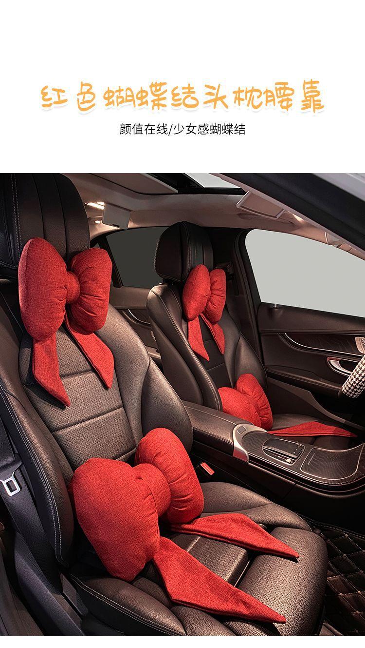 Red Ribbon Bow-Headrest, Red Ribbon Bow-Waist Support, Black Ribbon Bow-Headrest, Black Ribbon Bow-Waist, Pink...