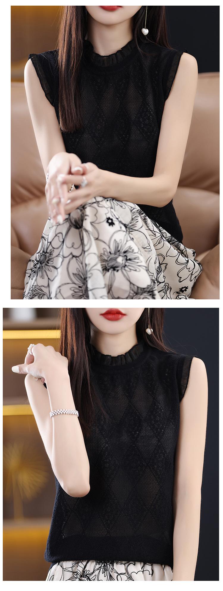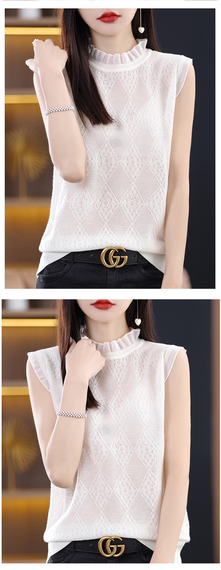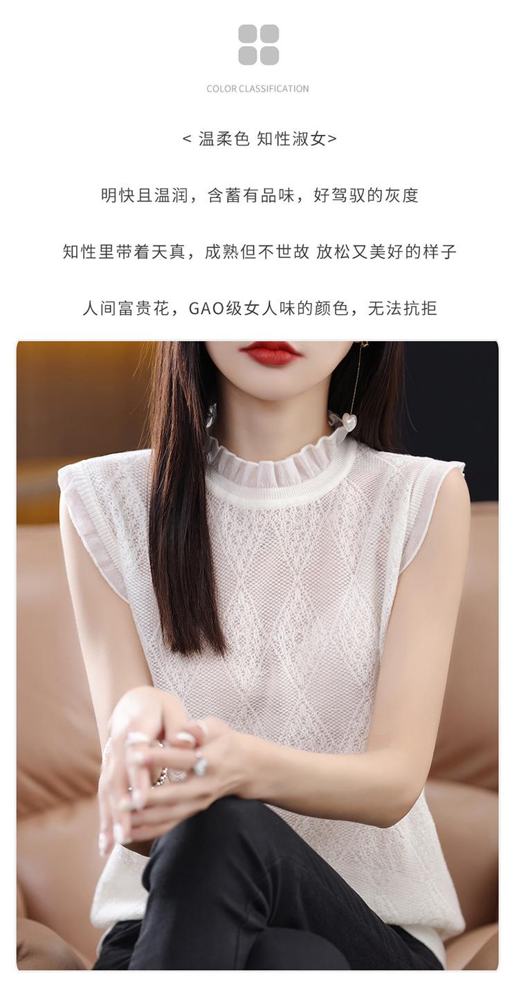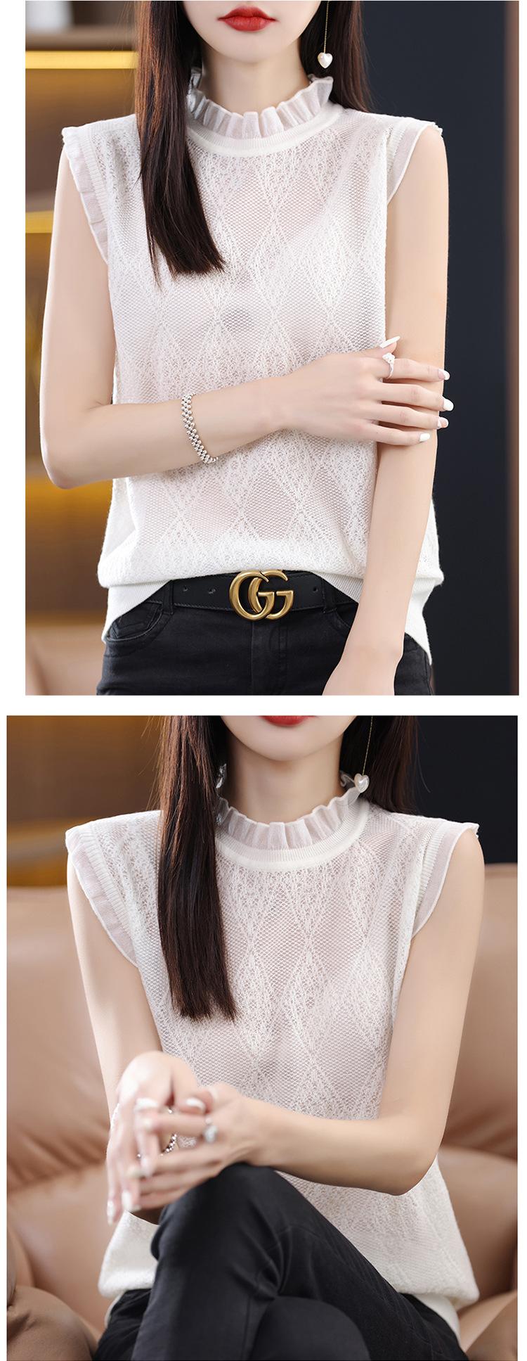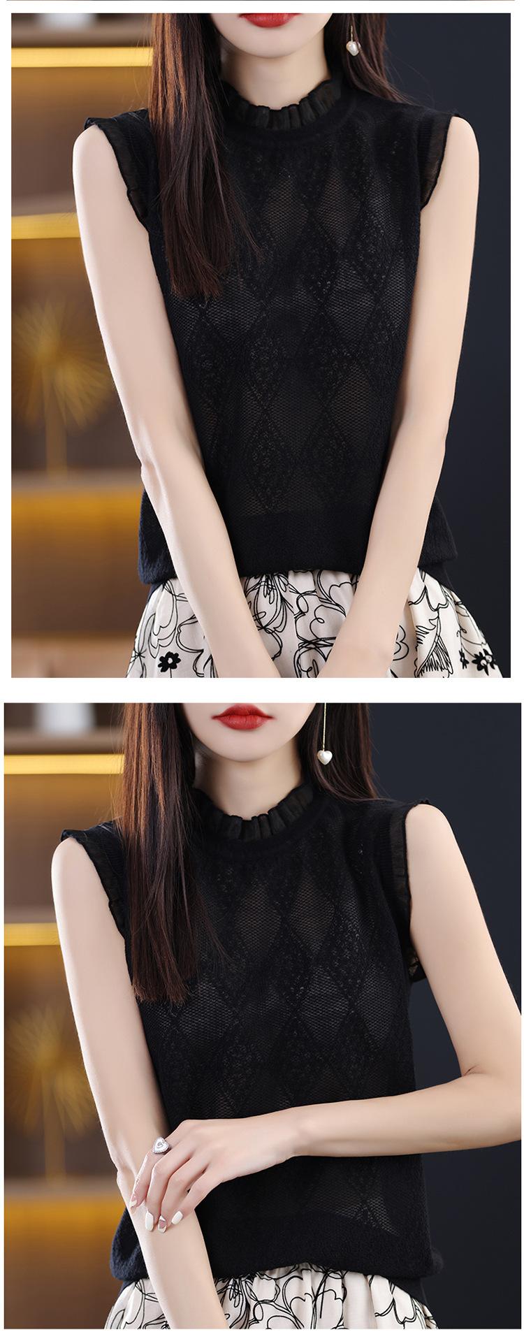 Camisola de encaje sin mangas estilo francés para mujer, traje con cuello de oreja y parte superior de punto de lana peinada de verano