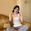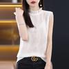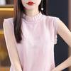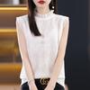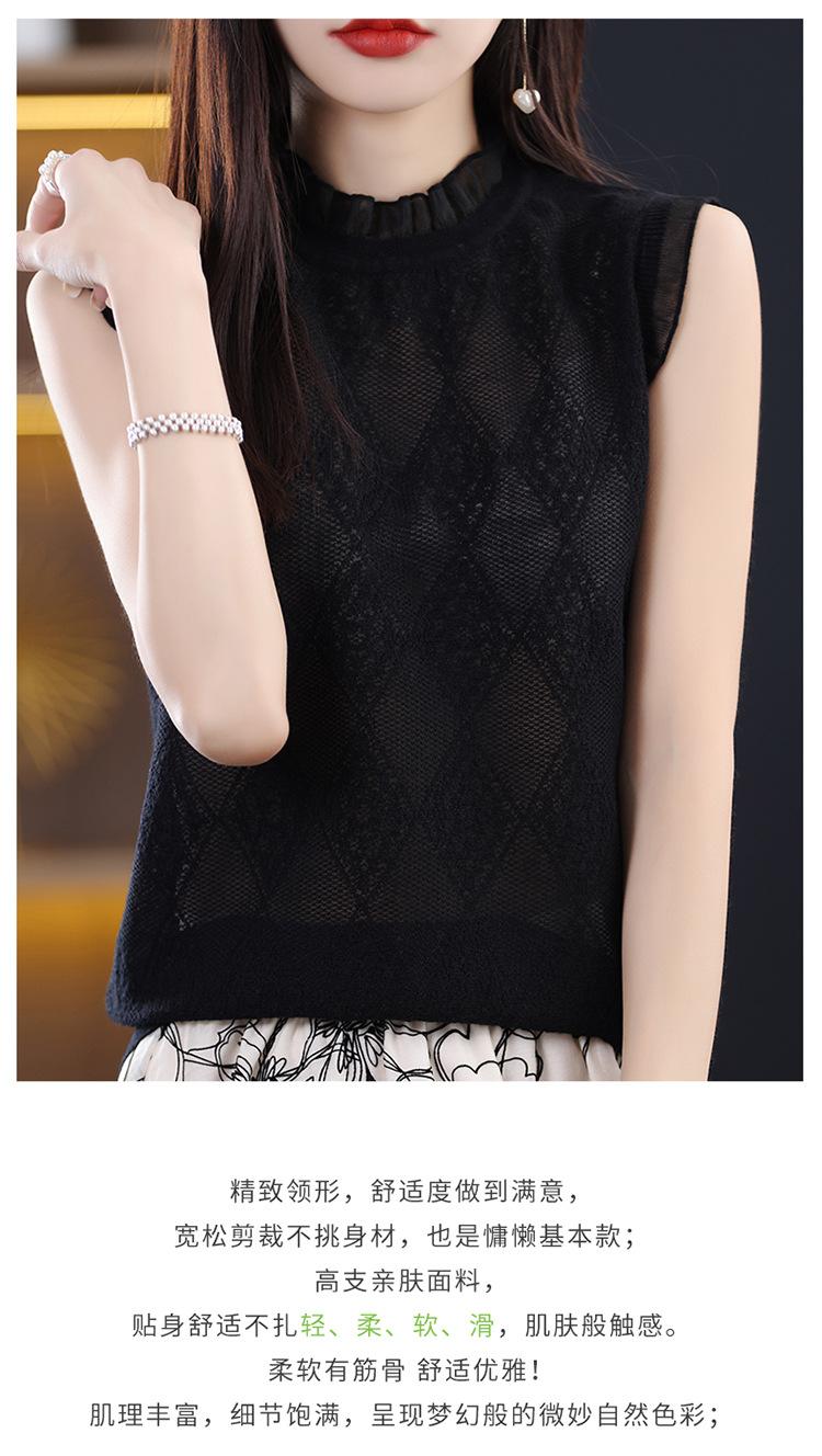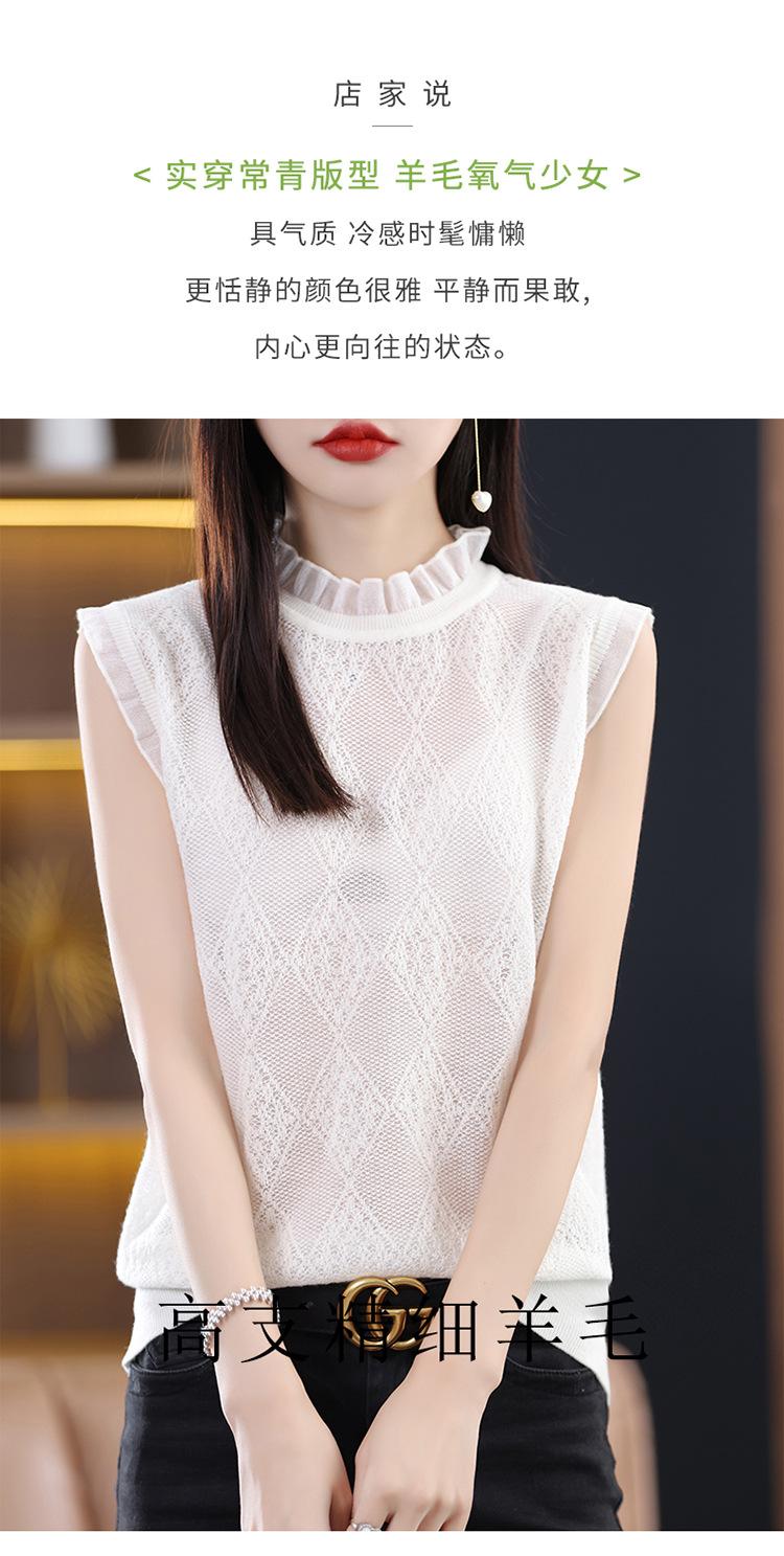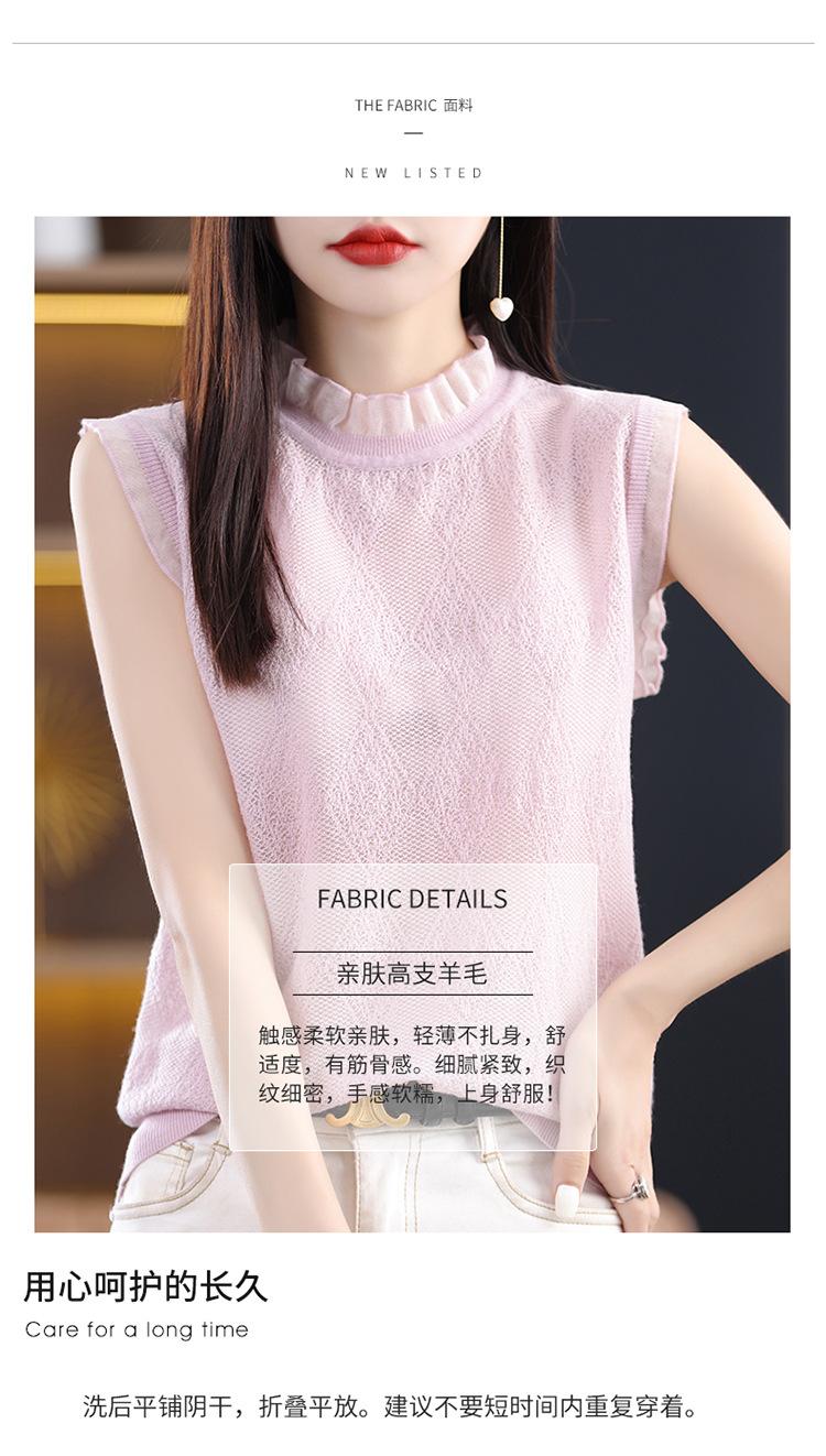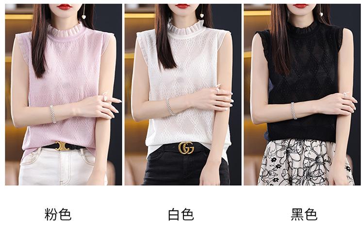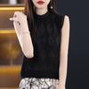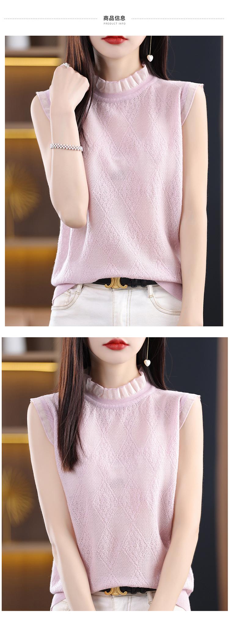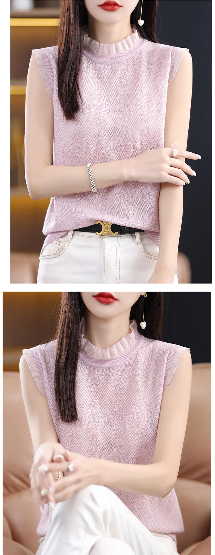Camisola de encaje sin mangas estilo francés para mujer, traje con cuello de oreja y parte superior de punto de lana peinada de verano