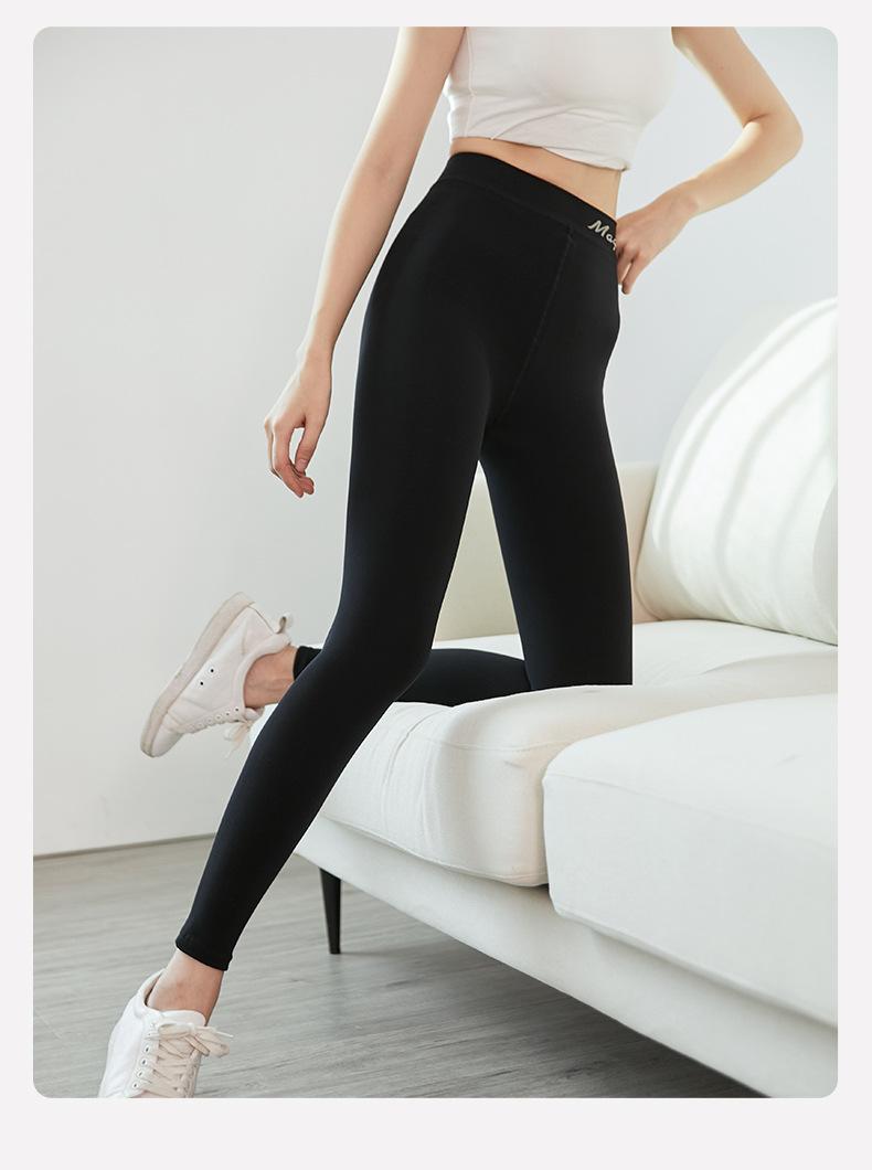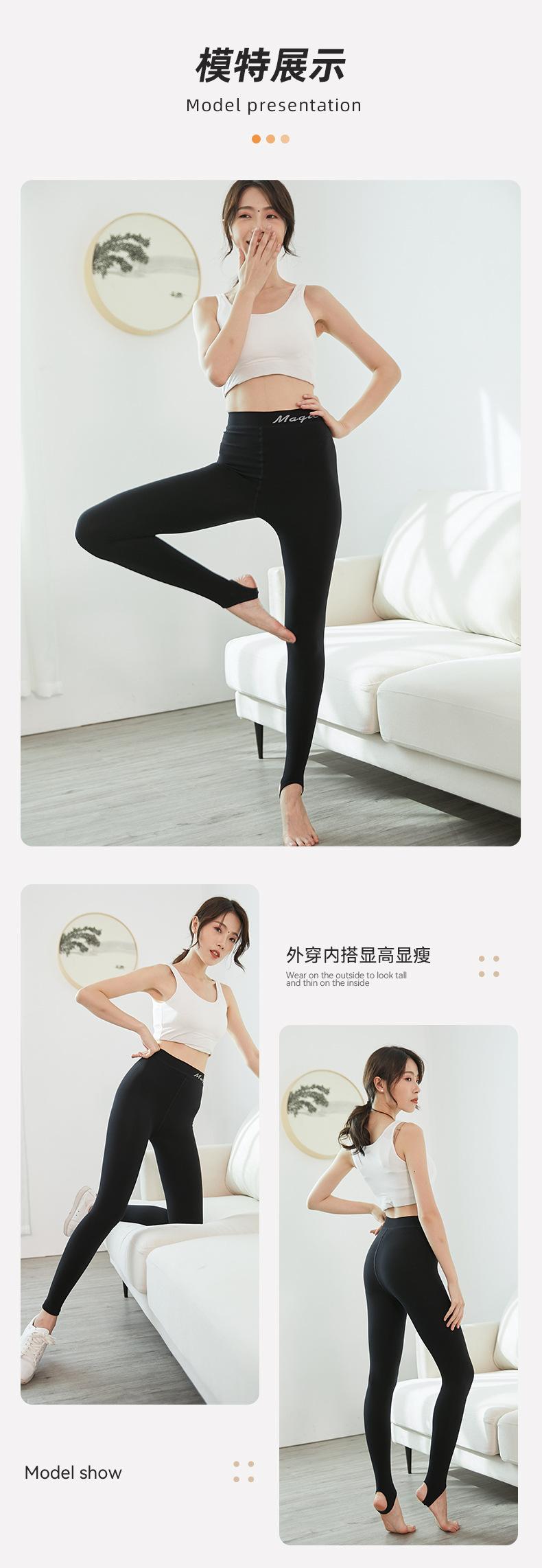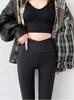 2023 Ropa Exterior para Mujer Primavera y Otoño Versátiles Pantalones de Yoga Negros, Pantalones Recortados con Pie, Forrados de Felpa y Gruesos, Levanta Cadera
