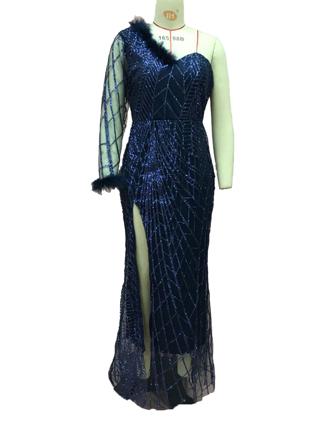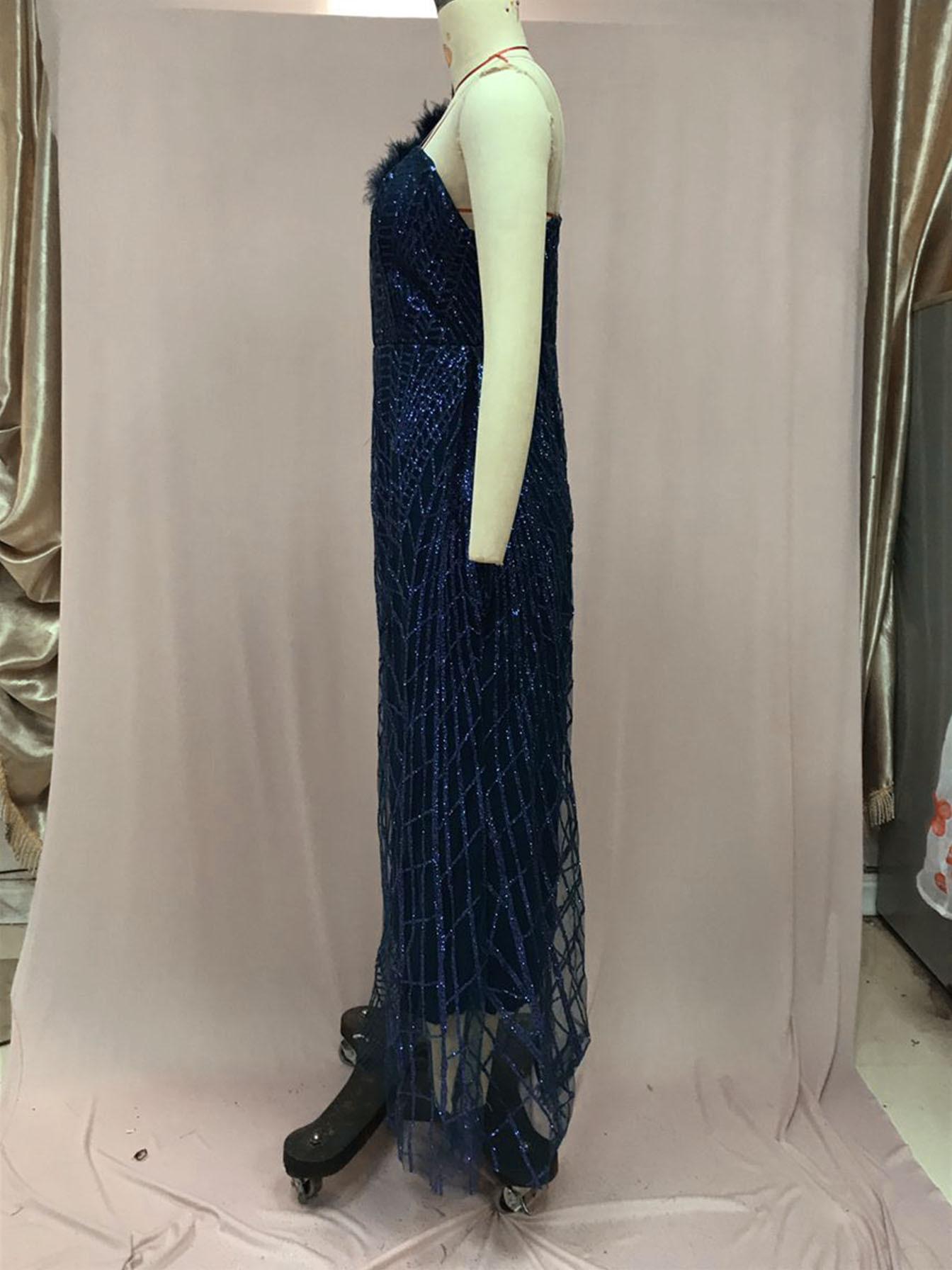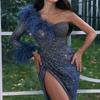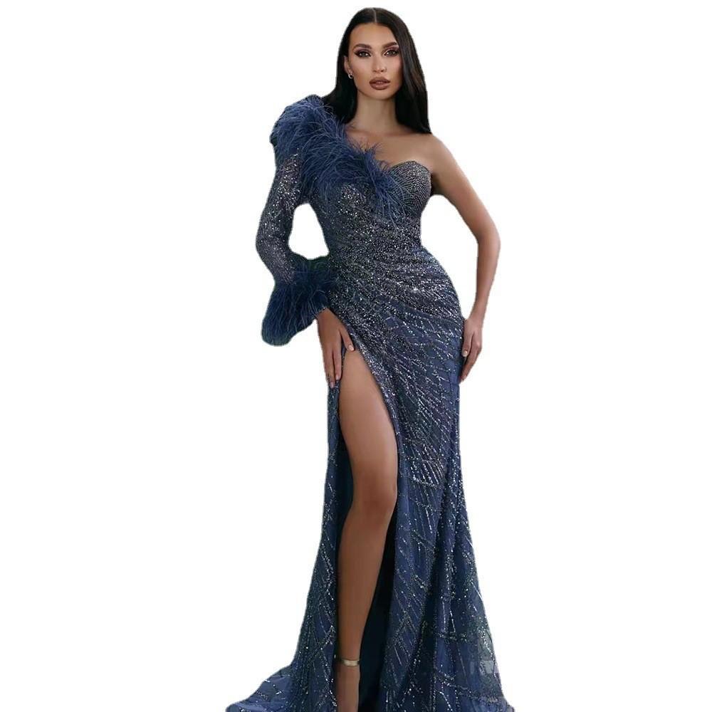 2025 Nuevo Vestido de Noche Europeo y Americano de Primavera y Verano Transfronterizo con Lentejuelas, Abertura Sexy, Vestido de Gala hasta el Suelo, Falda Larga