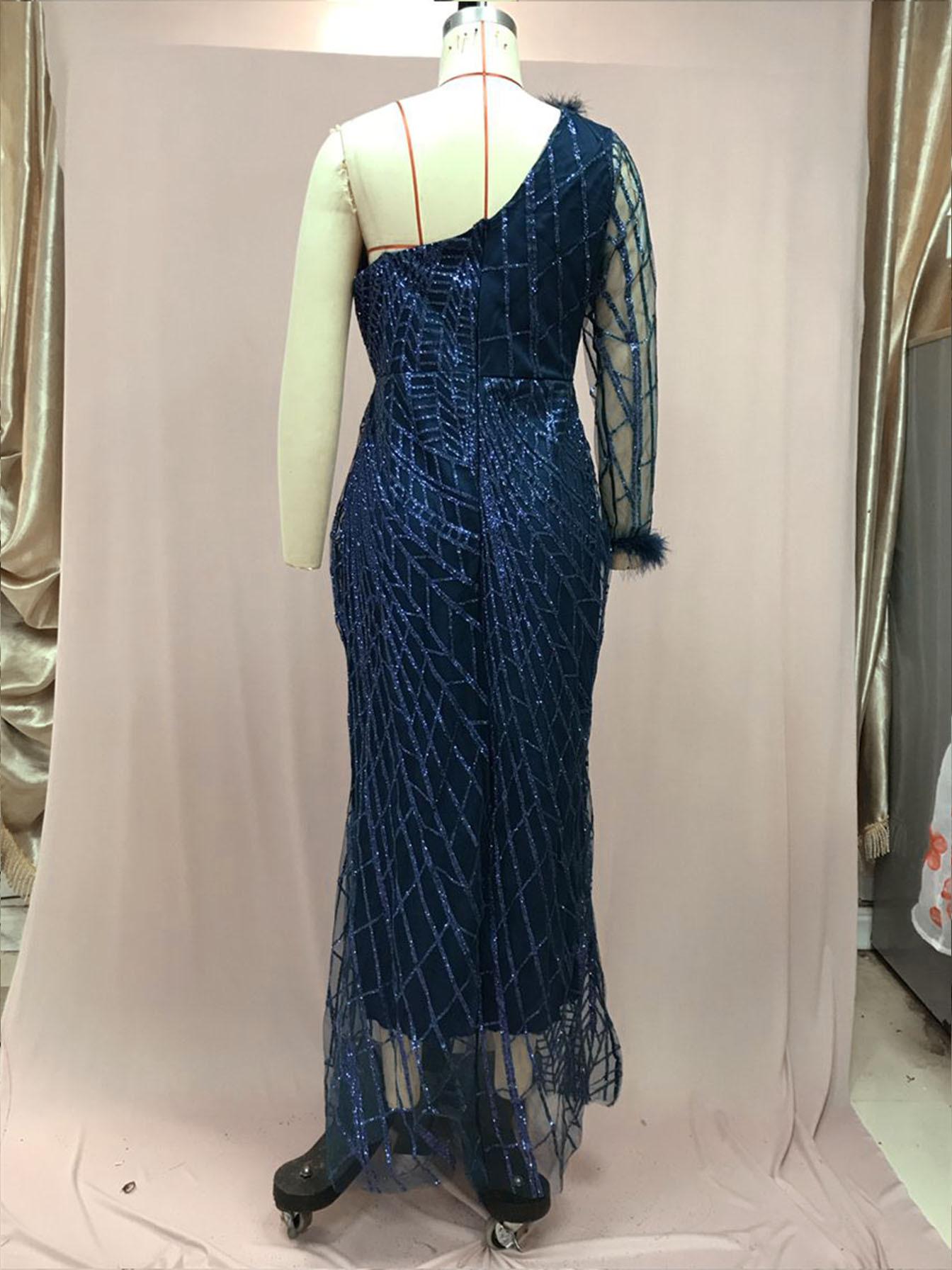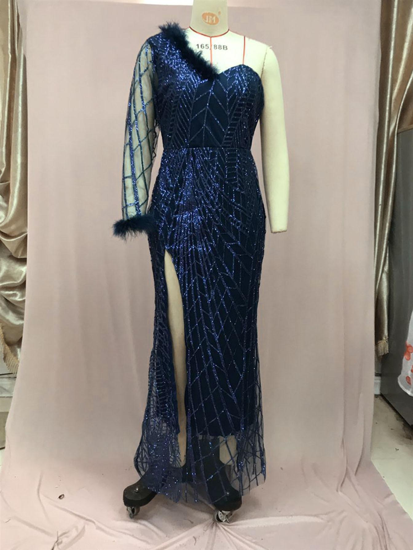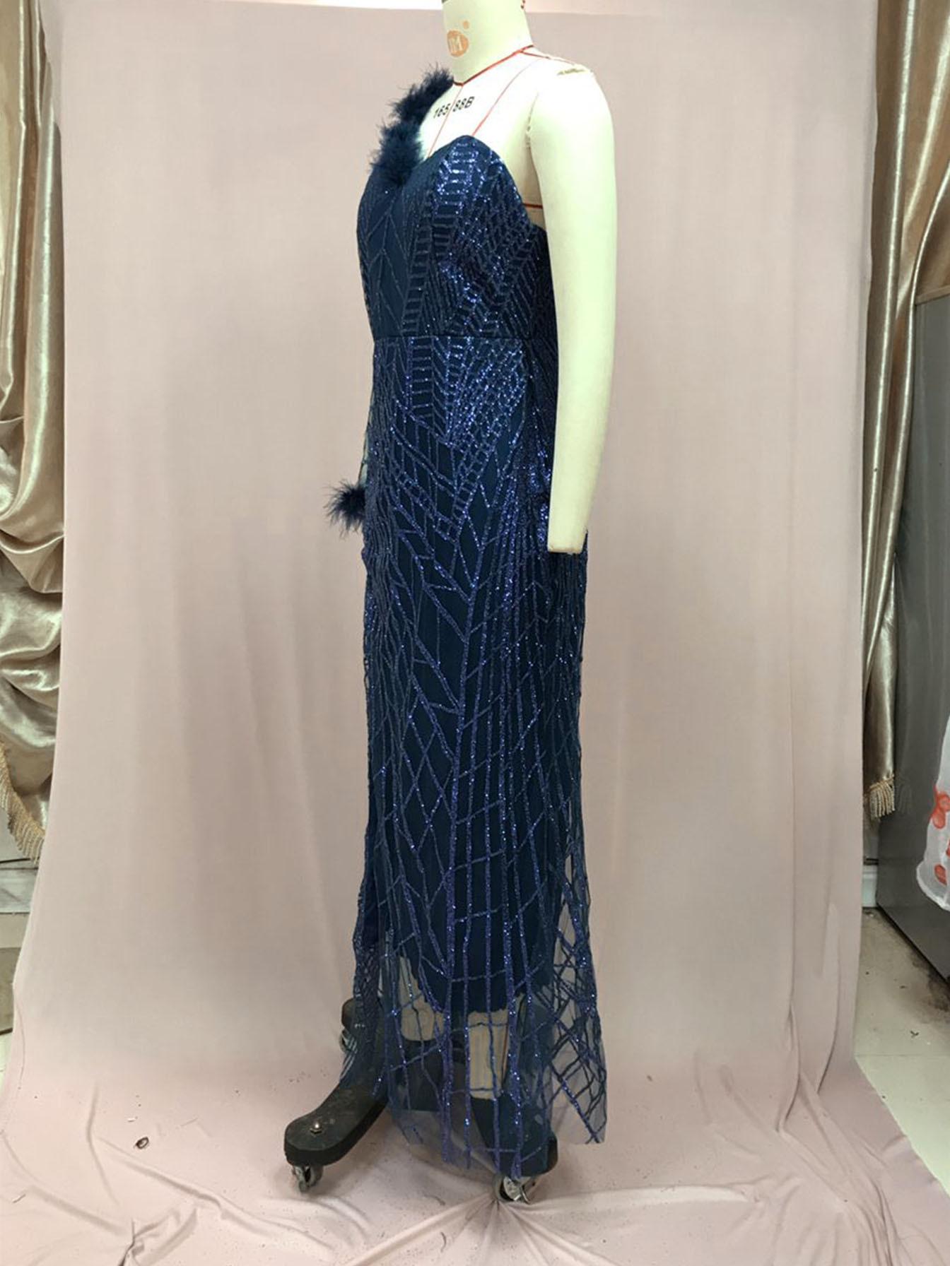 2025 Nuevo Vestido de Noche Europeo y Americano de Primavera y Verano Transfronterizo con Lentejuelas, Abertura Sexy, Vestido de Gala hasta el Suelo, Falda Larga