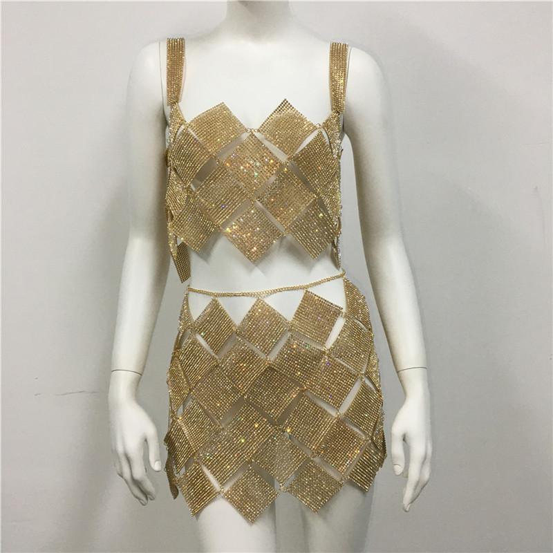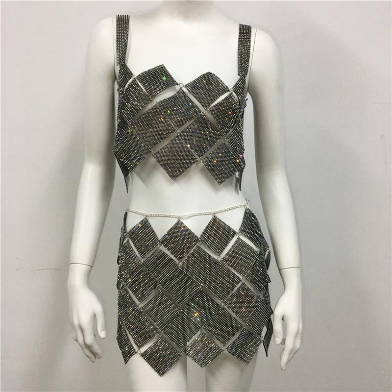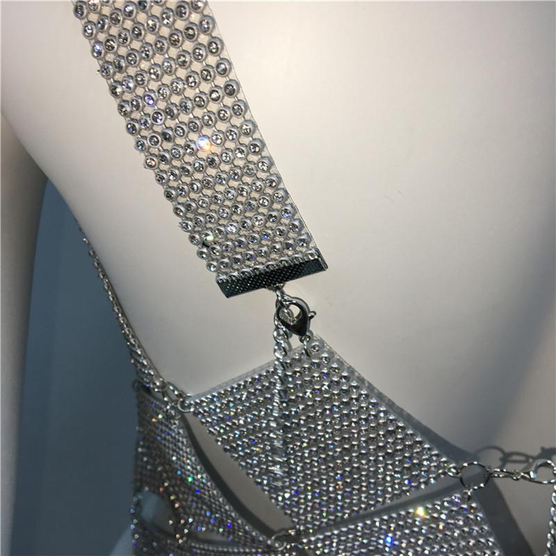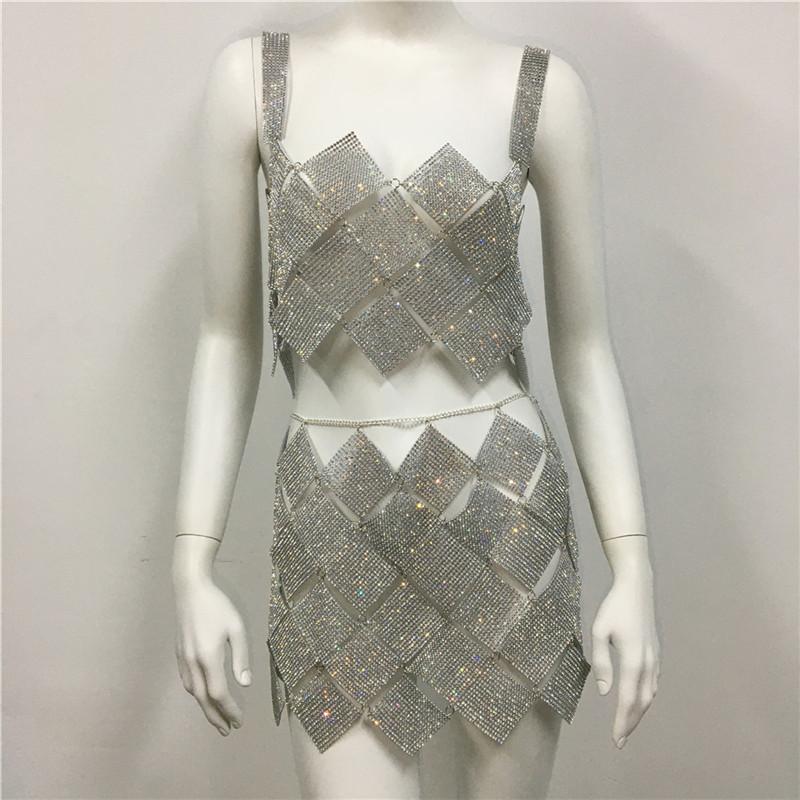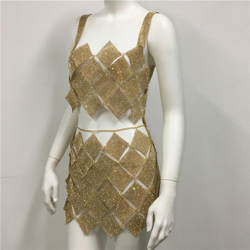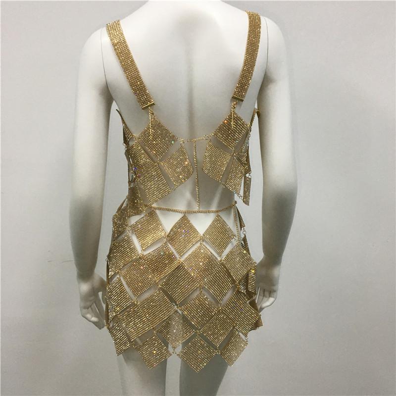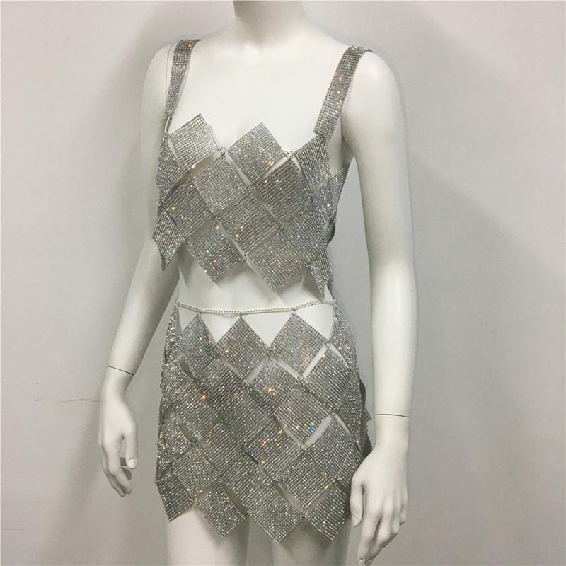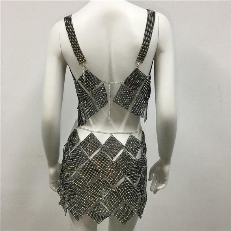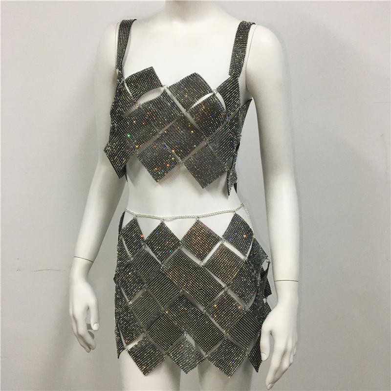 Explosiones transfronterizas vestido de mujer con diamantes completos y pedrería, costuras de diamantes, fiesta de club nocturno, vestido sexy de metal con pedrería
