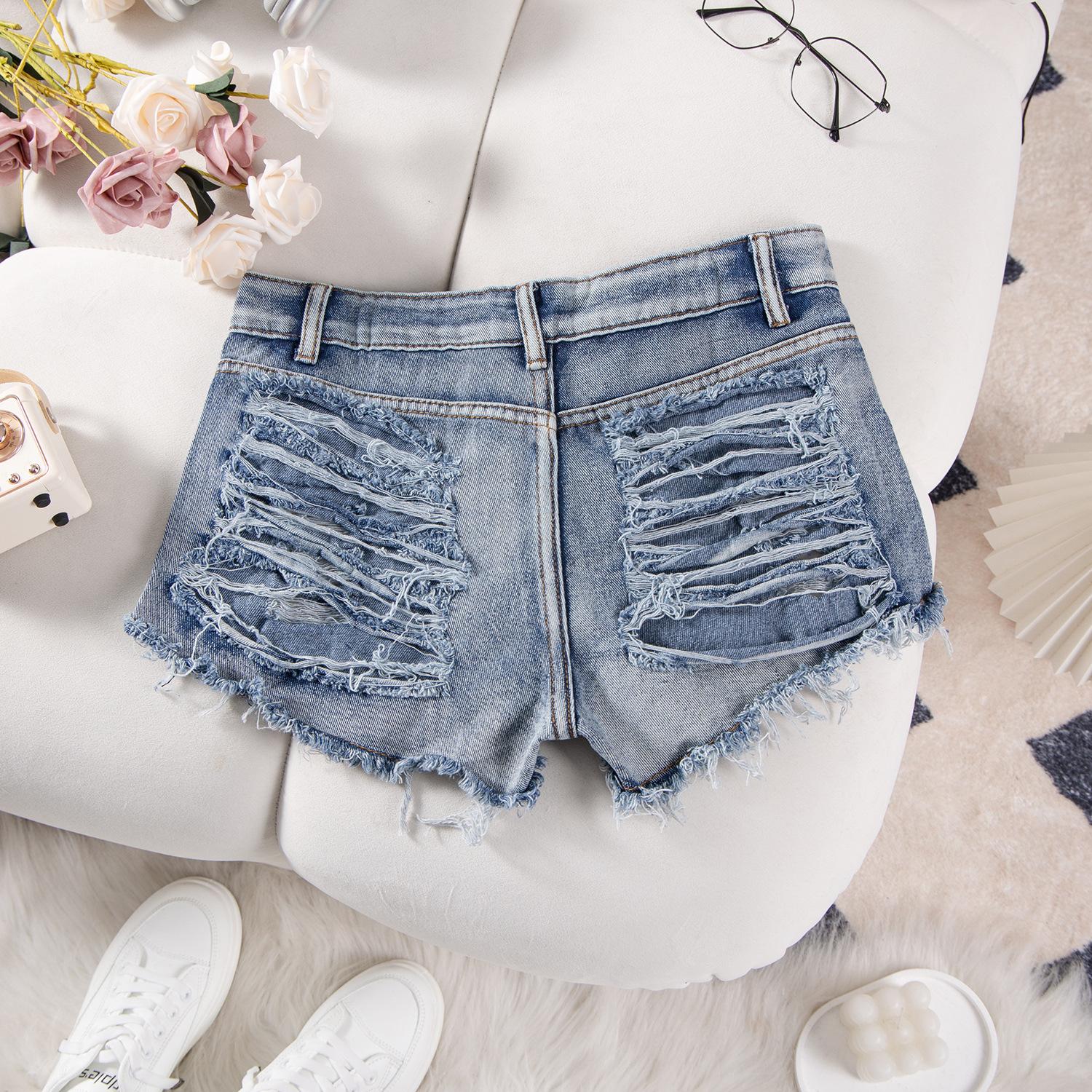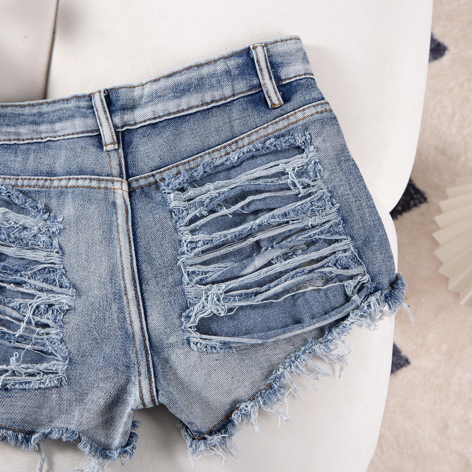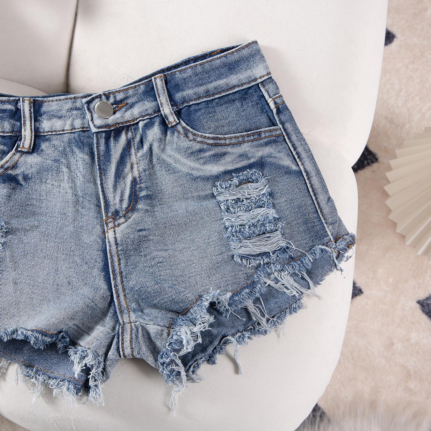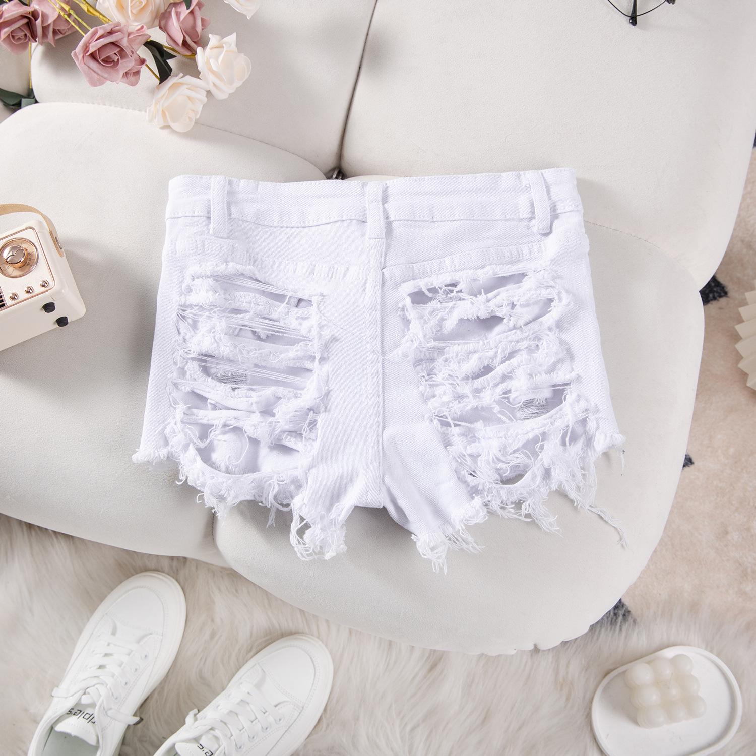 672# Nuevos Shorts de Mezclilla de Verano para Mujer Pantalones Calientes Jeans Europeos y Americanos Club Nocturno Sexy para Mujer Cintura Alta Agujero