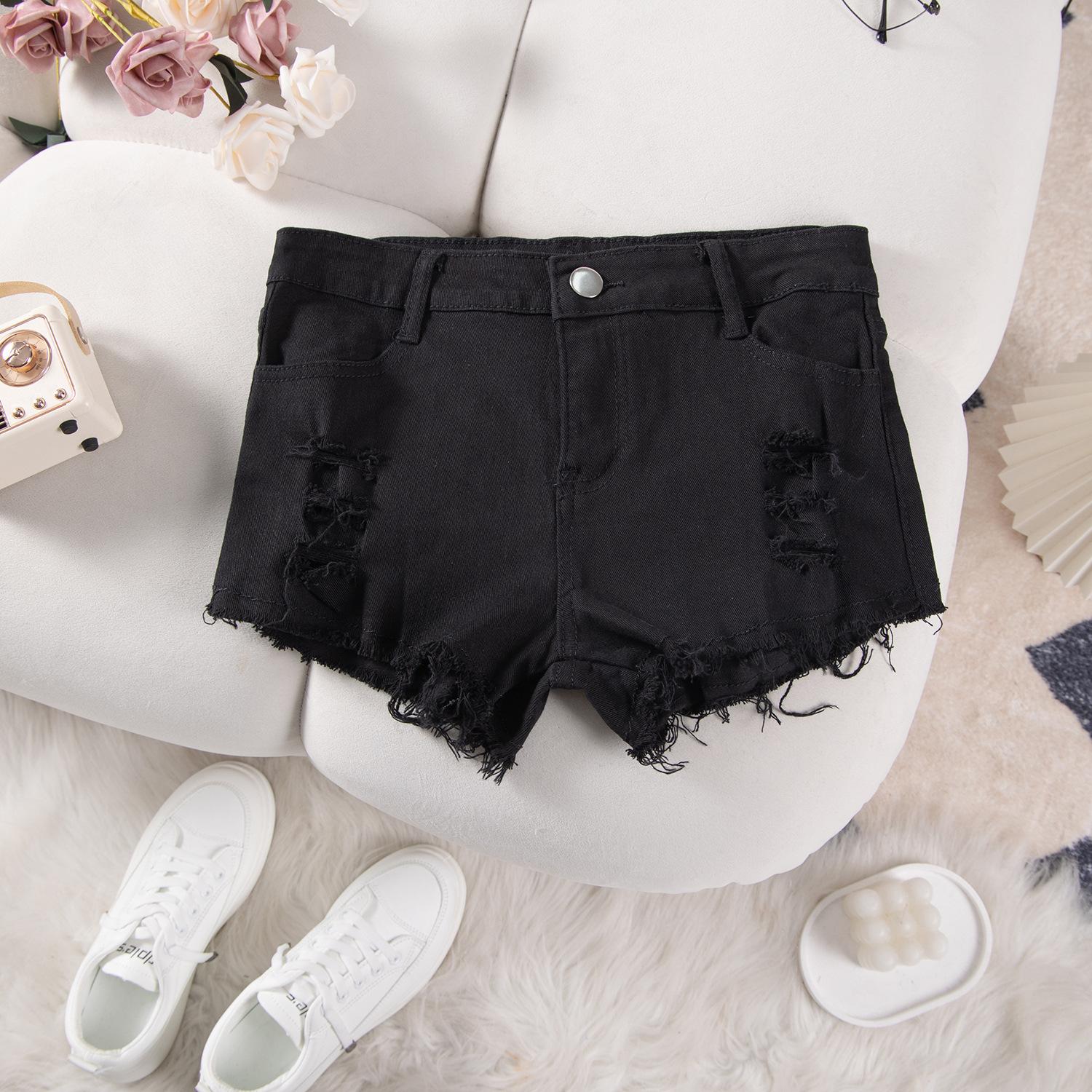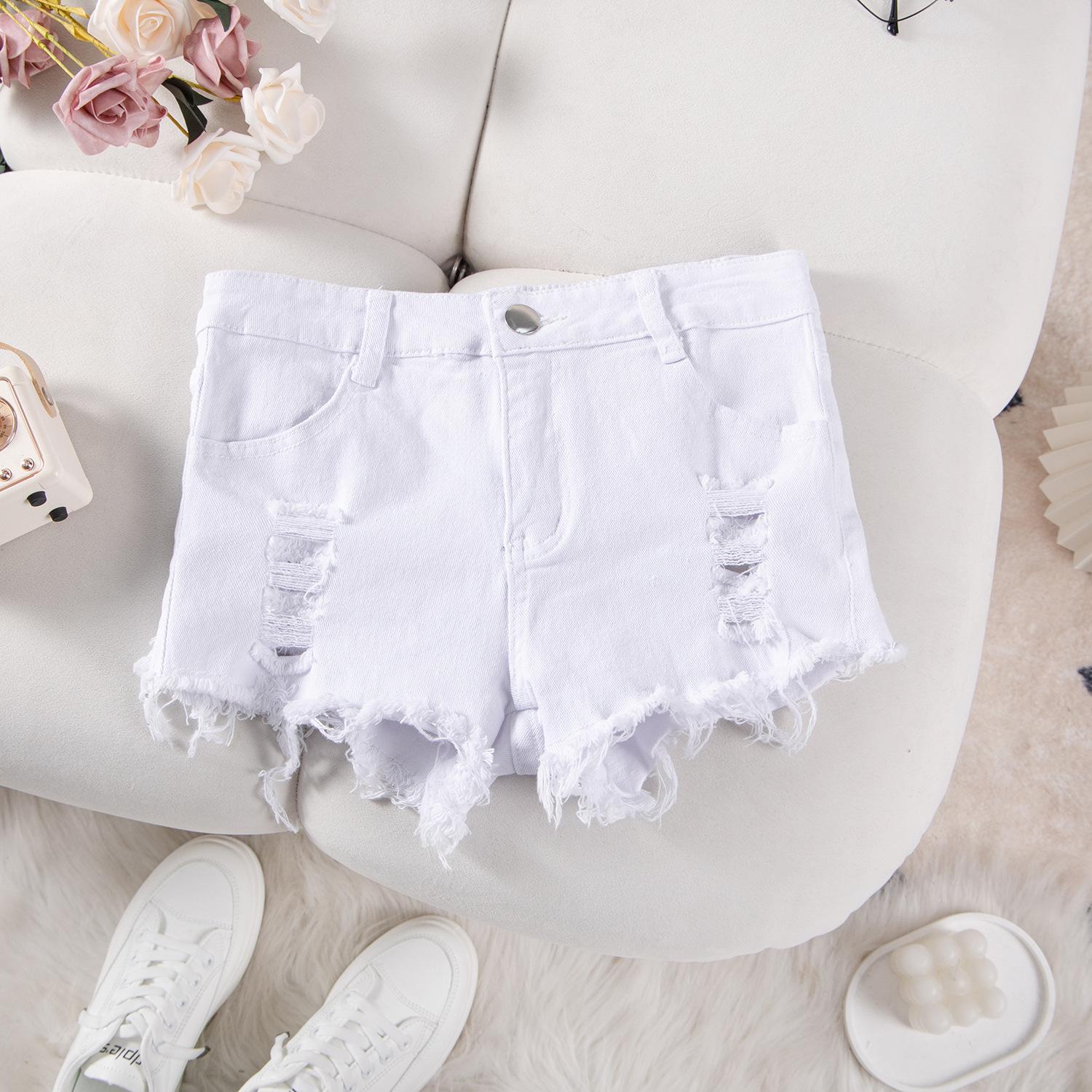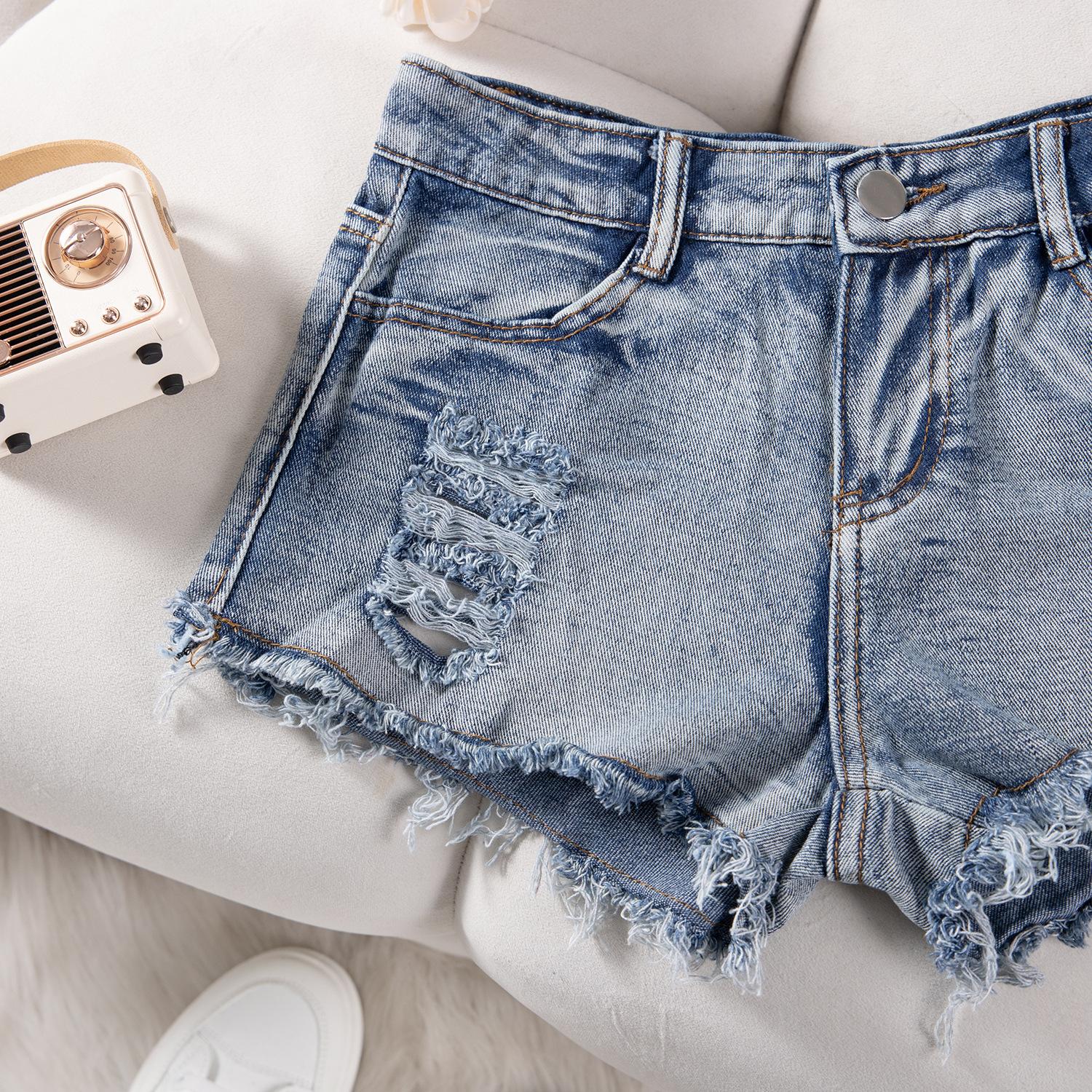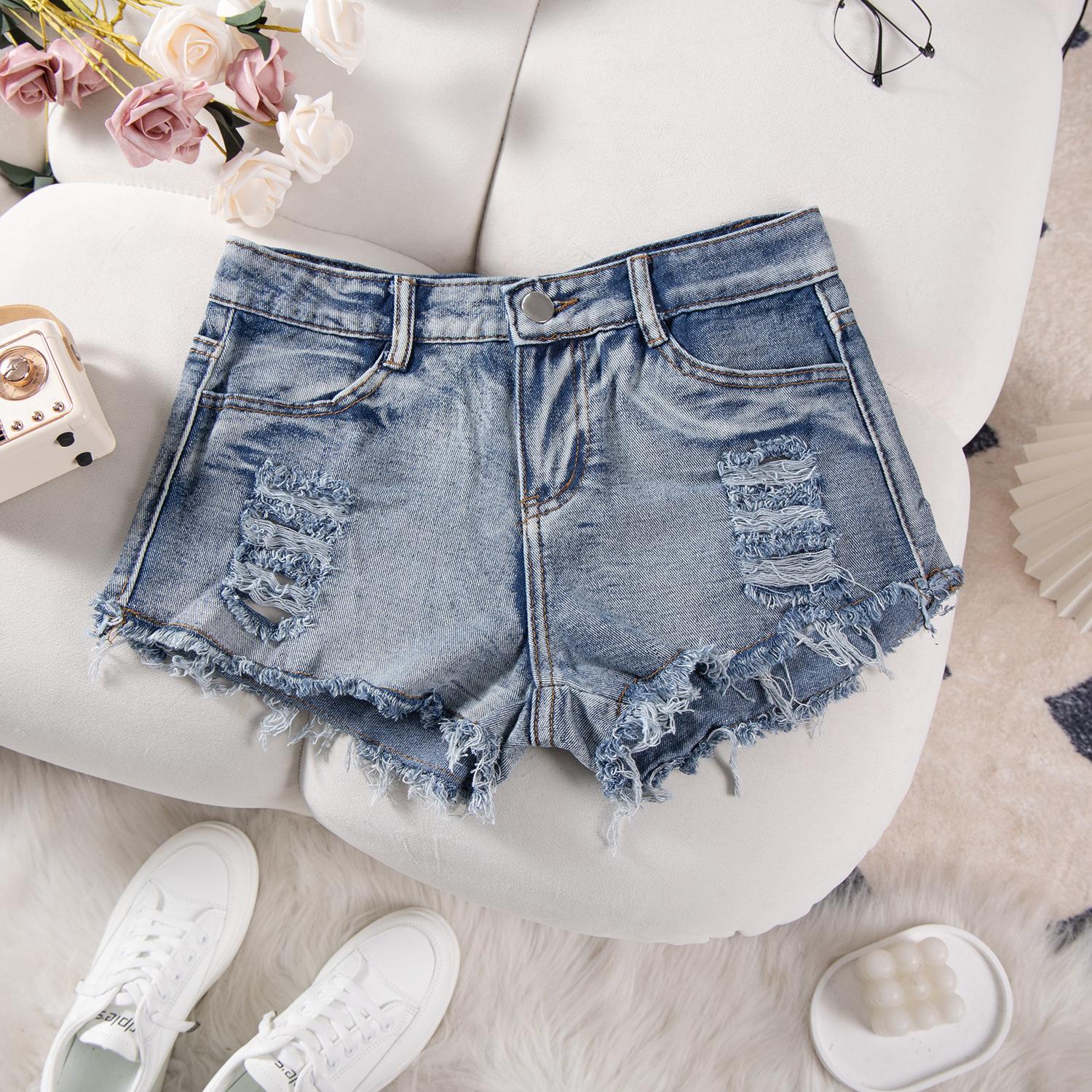 672# Nuevos Shorts de Mezclilla de Verano para Mujer Pantalones Calientes Jeans Europeos y Americanos Club Nocturno Sexy para Mujer Cintura Alta Agujero
