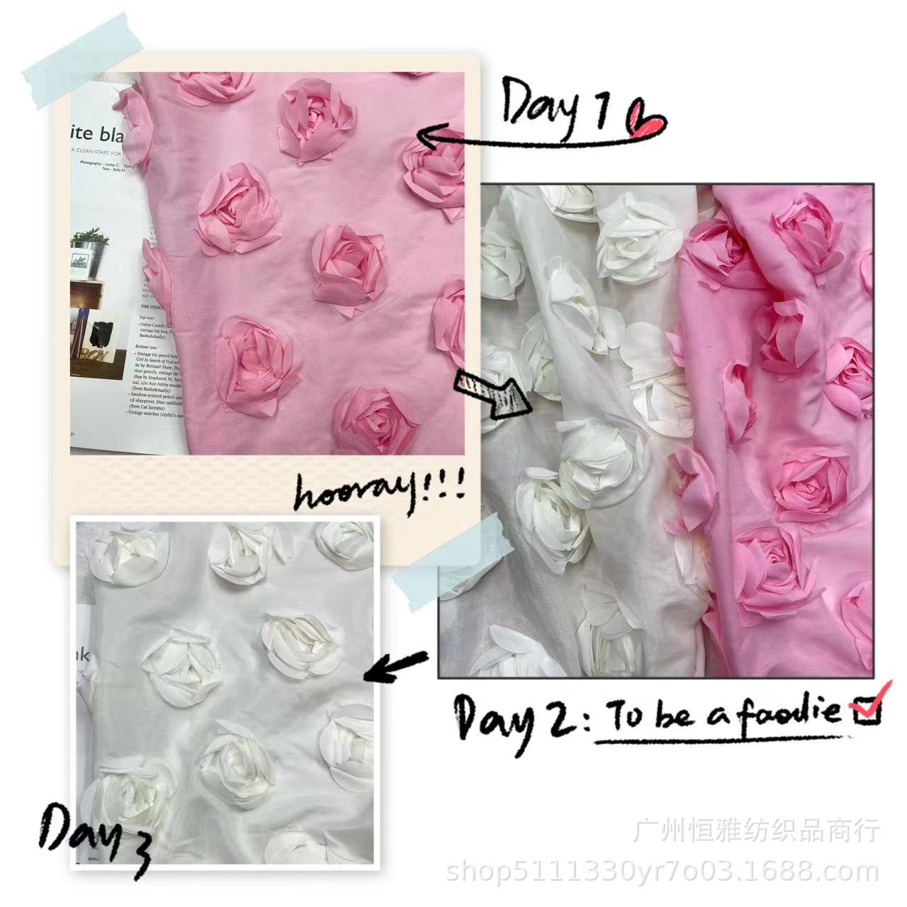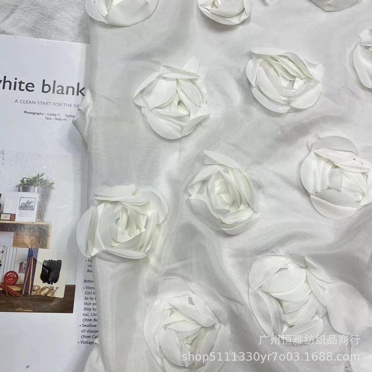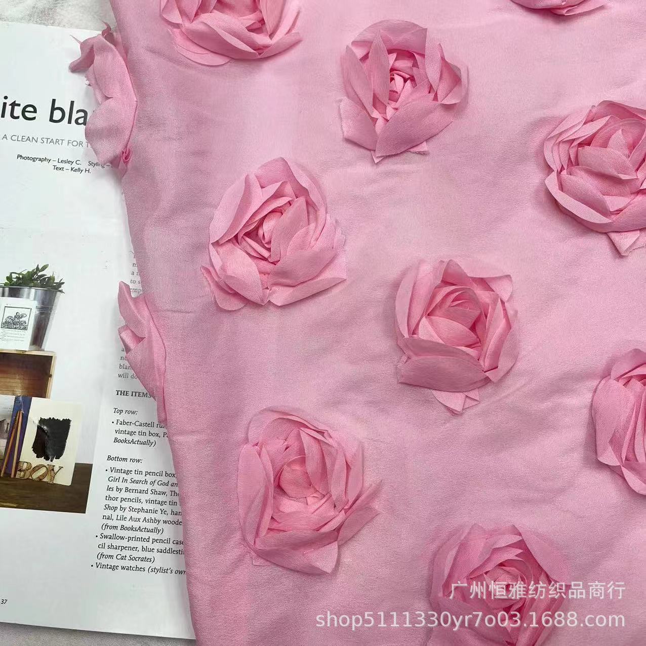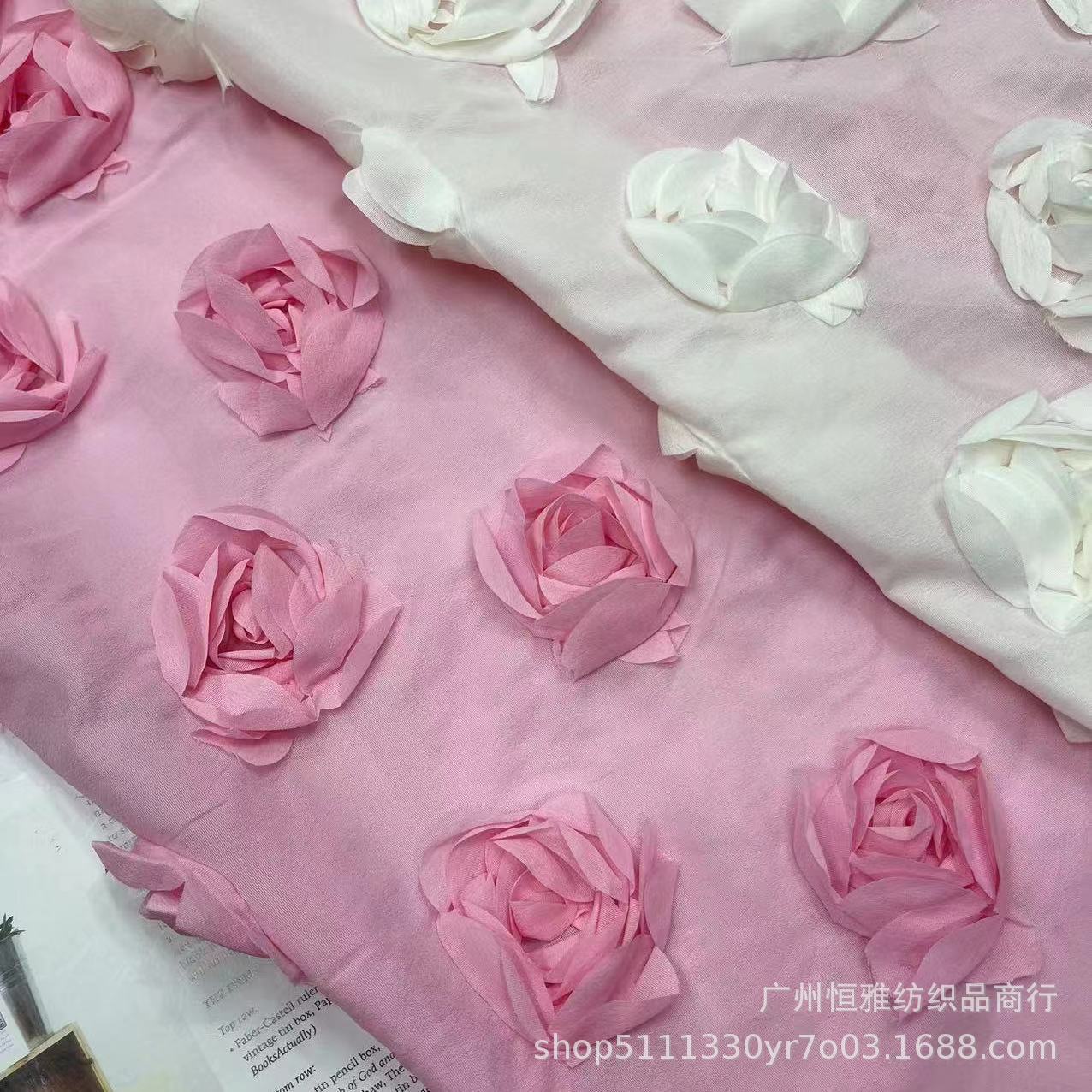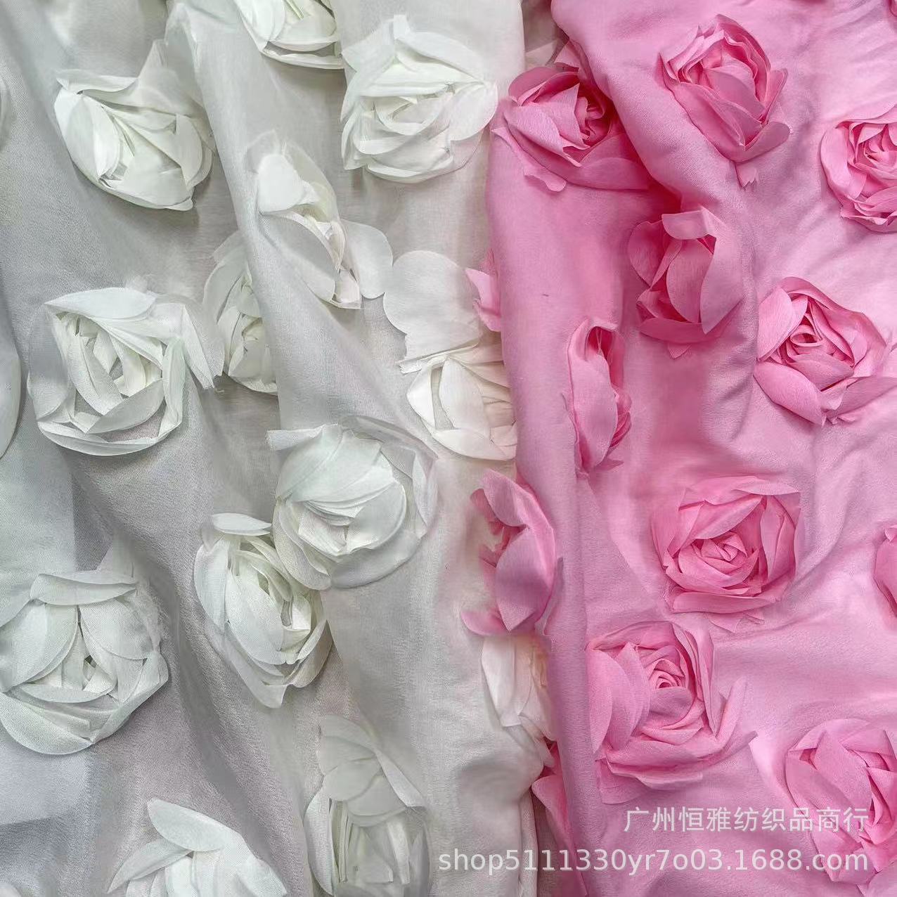 Ventas directas de fábrica bordado de rosa tridimensional tela encaje de malla encaje bordado tela de comercio exterior en stock al por mayor
