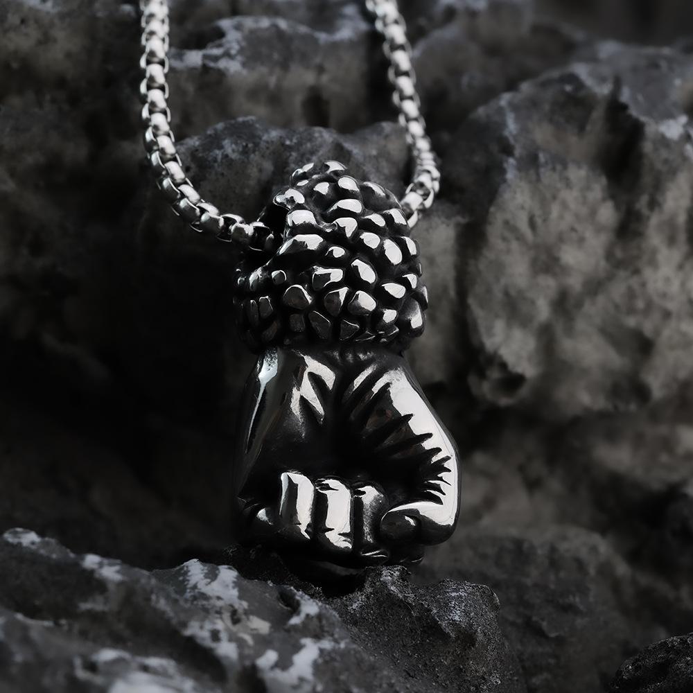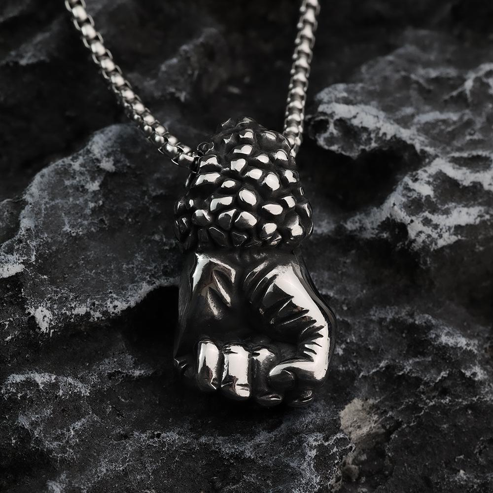 Collar de hip-hop europeo y americano con diseño de puño de poder vintage de acero de titanio para hombre, colgante de acero inoxidable, joyería