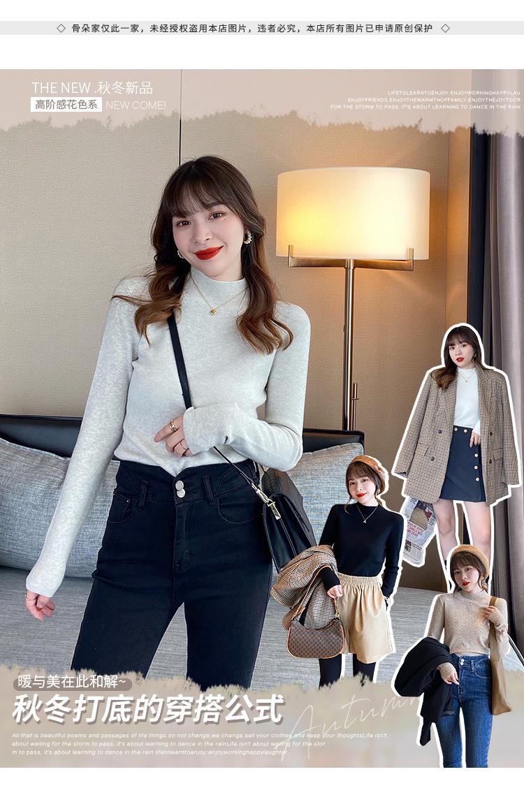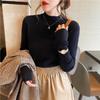 Camisa básica de cuello medio alto para mujer, suéter interior de manga larga para otoño e invierno, top de punto estilo occidental fino y holgado que combina con todo.