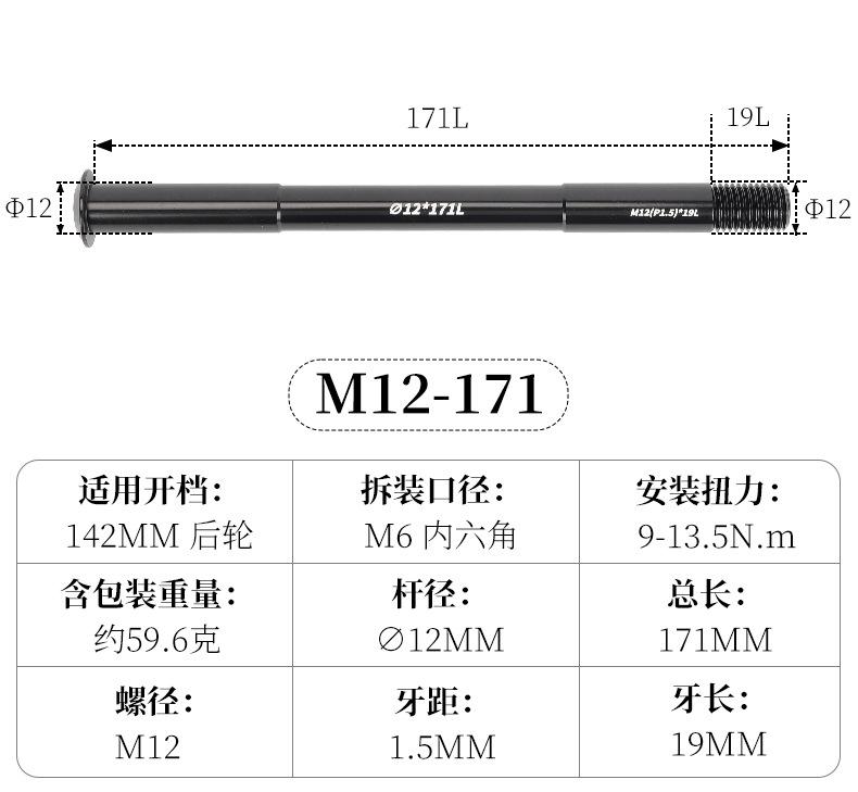 Rear wheel -12mm * 171 [applicable to rear wheel 12*142 open gear]]