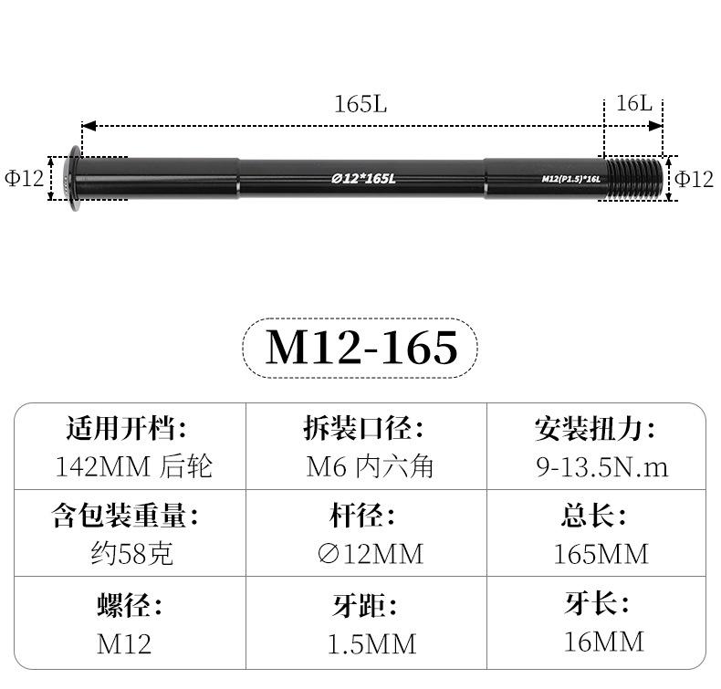 Rear wheel -12mm * 165 [applicable to rear wheel 12*142 open gear]]
