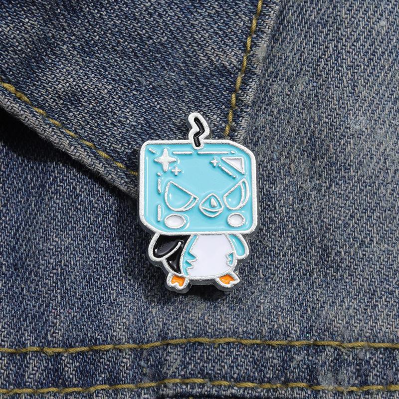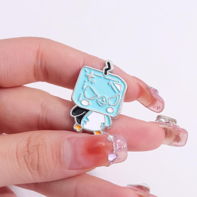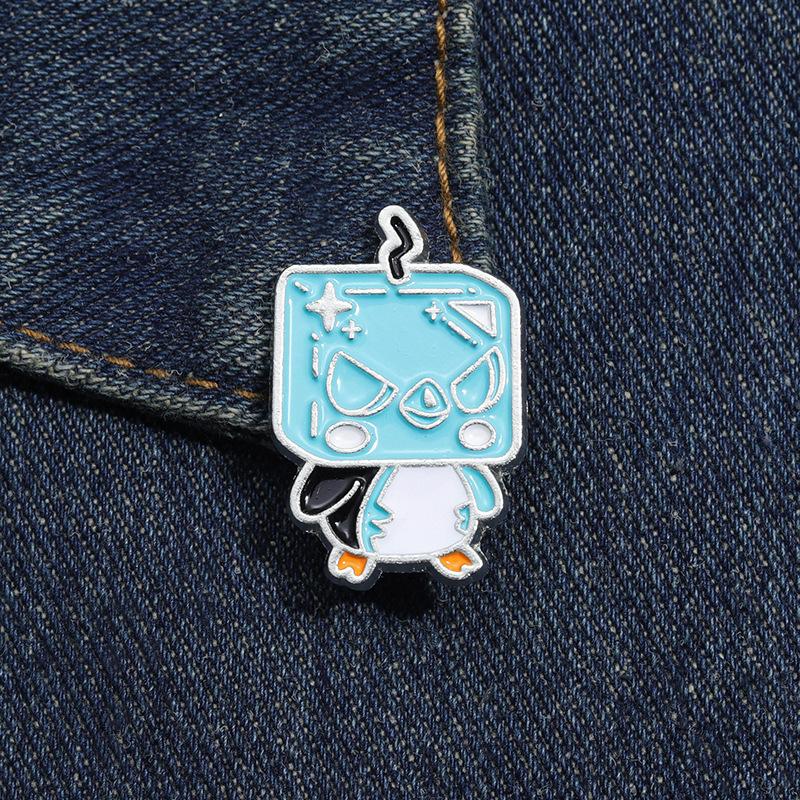 Lindo broche de pingüino de dibujos animados con forma de cabeza de hielo creativa, insignia de pintura de aleación, accesorios para bolsos y ropa al por mayor