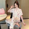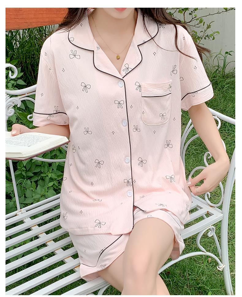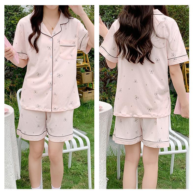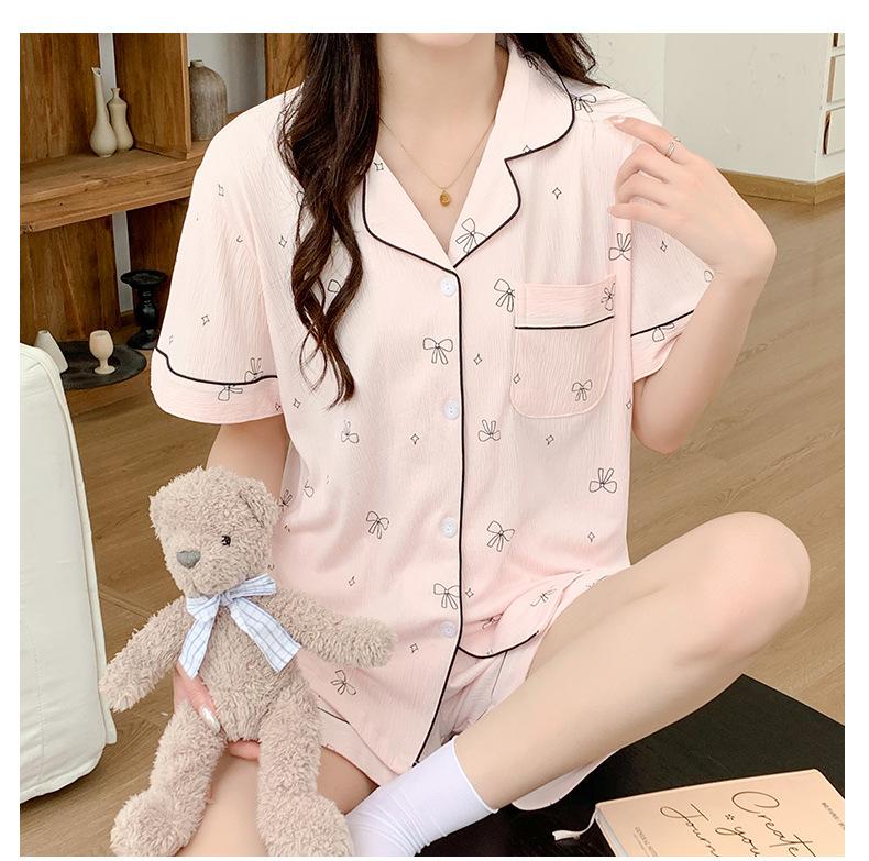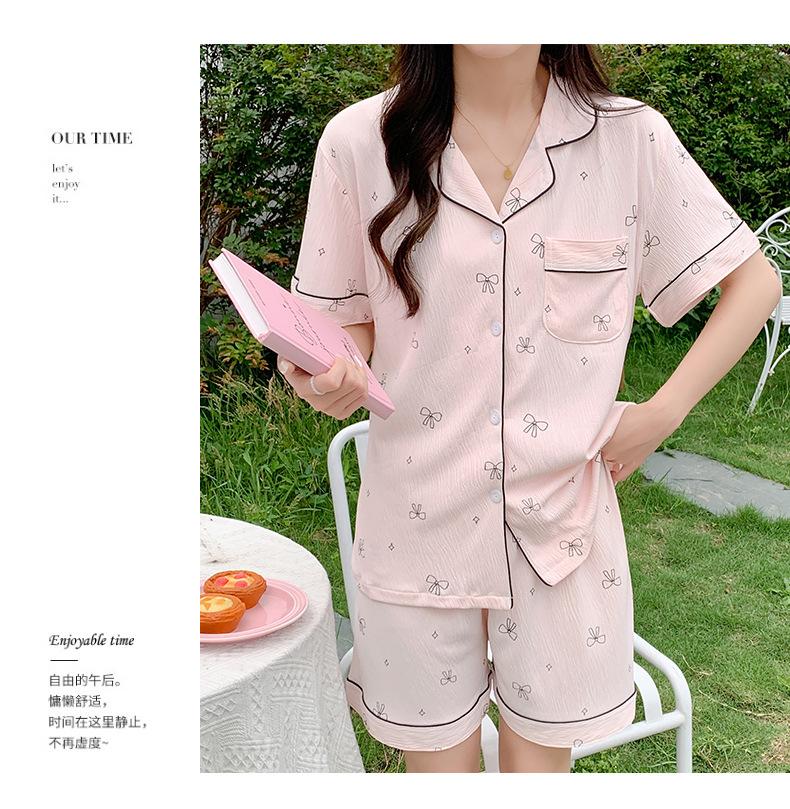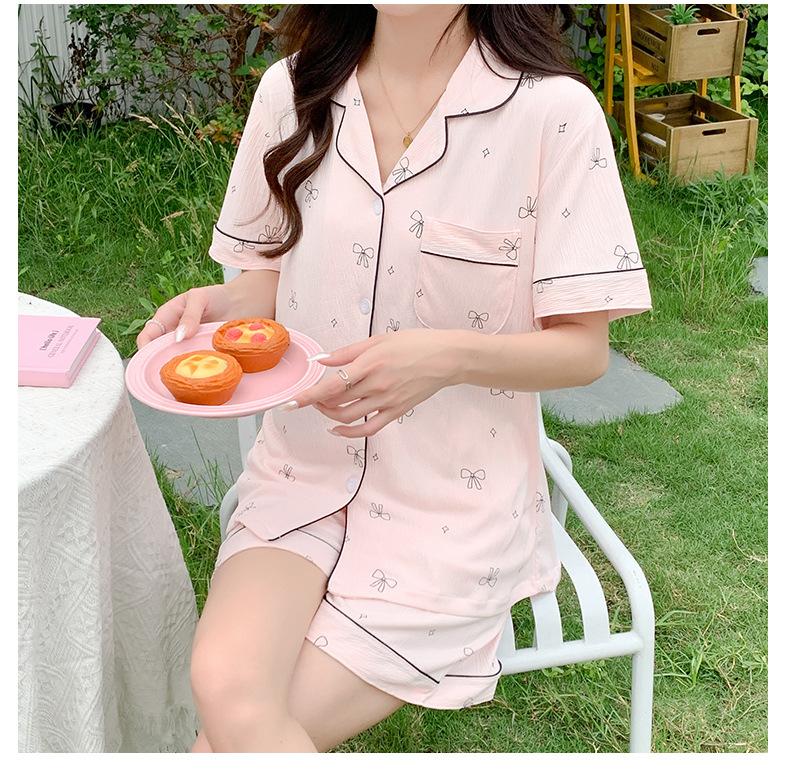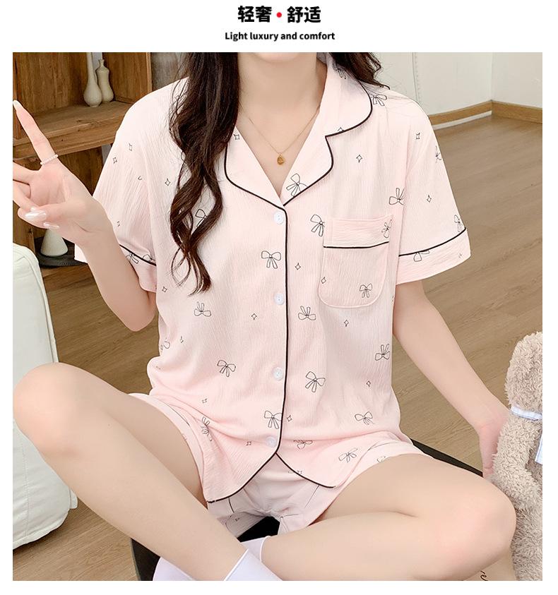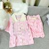 2024 Nuevo Verano Estilo Ins Pijama para Mujer Algodón Burbuja Cárdigan Casual Suelto Dulce Lindo Traje de Ropa para el Hogar