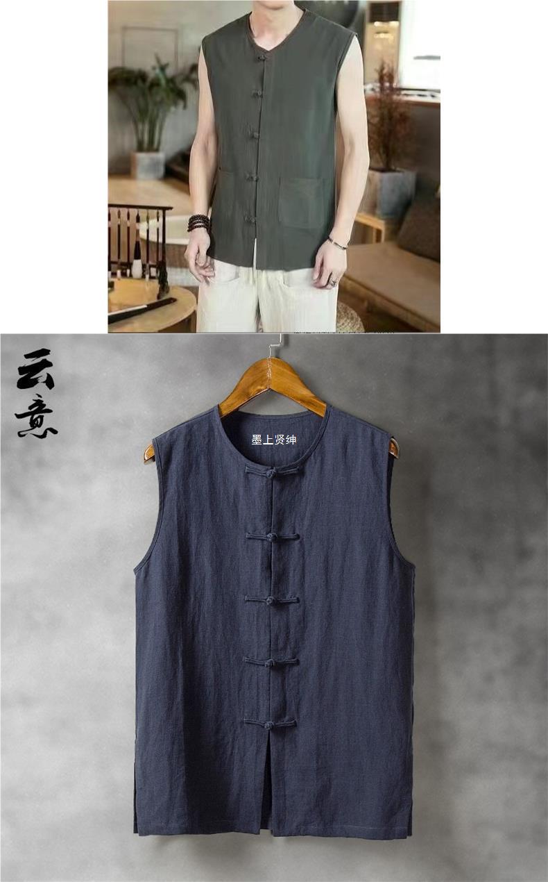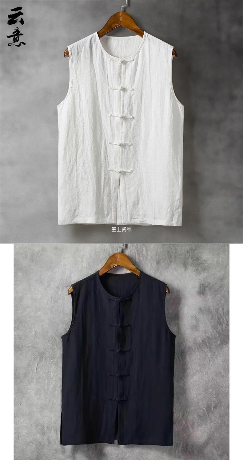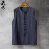 Estilo Étnico Estilo Japonés Vintage Chaleco Traje Tang Cuello Redondo Chaleco Sin Mangas Lino Suelto Mediana Edad y Adulto Mayor Chaleco Traje Han
