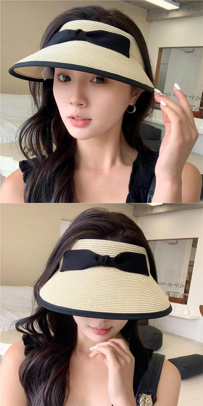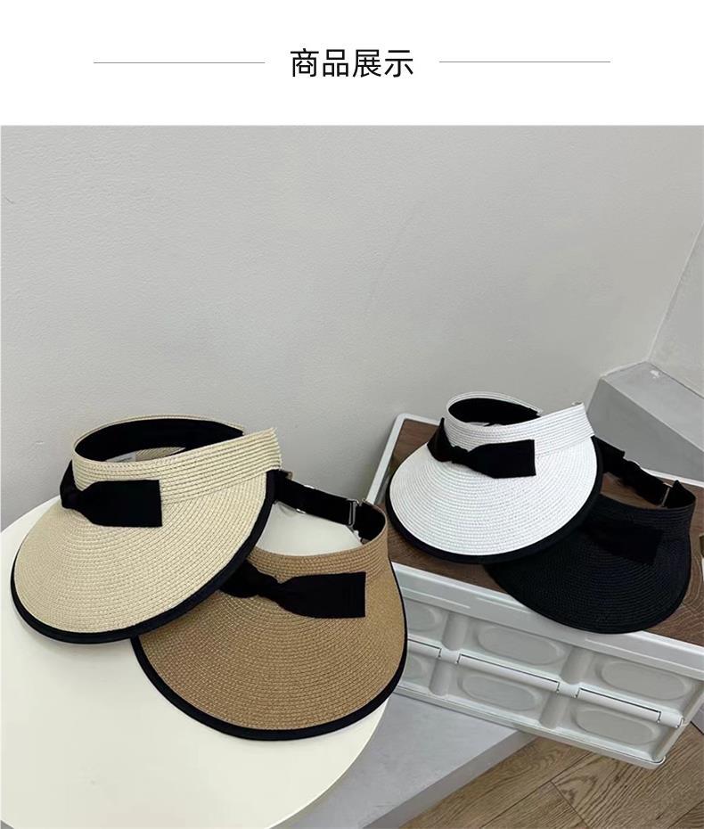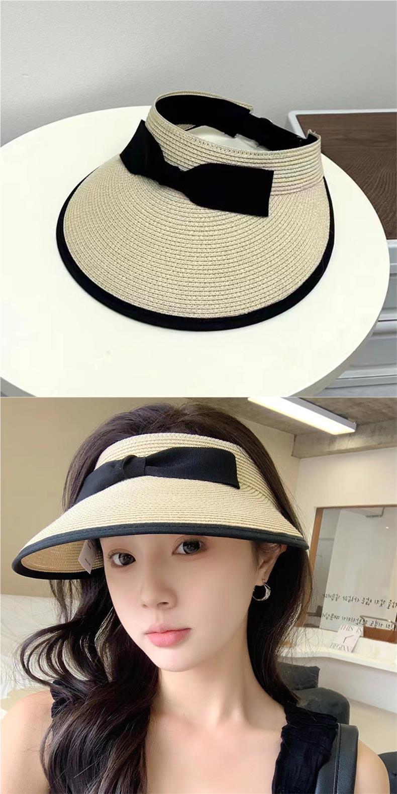 Bowknot covered empty top straw hat beige, Bowknot covered empty top Straw Hat Khaki, Bowknot covered empty top Straw Hat Black
