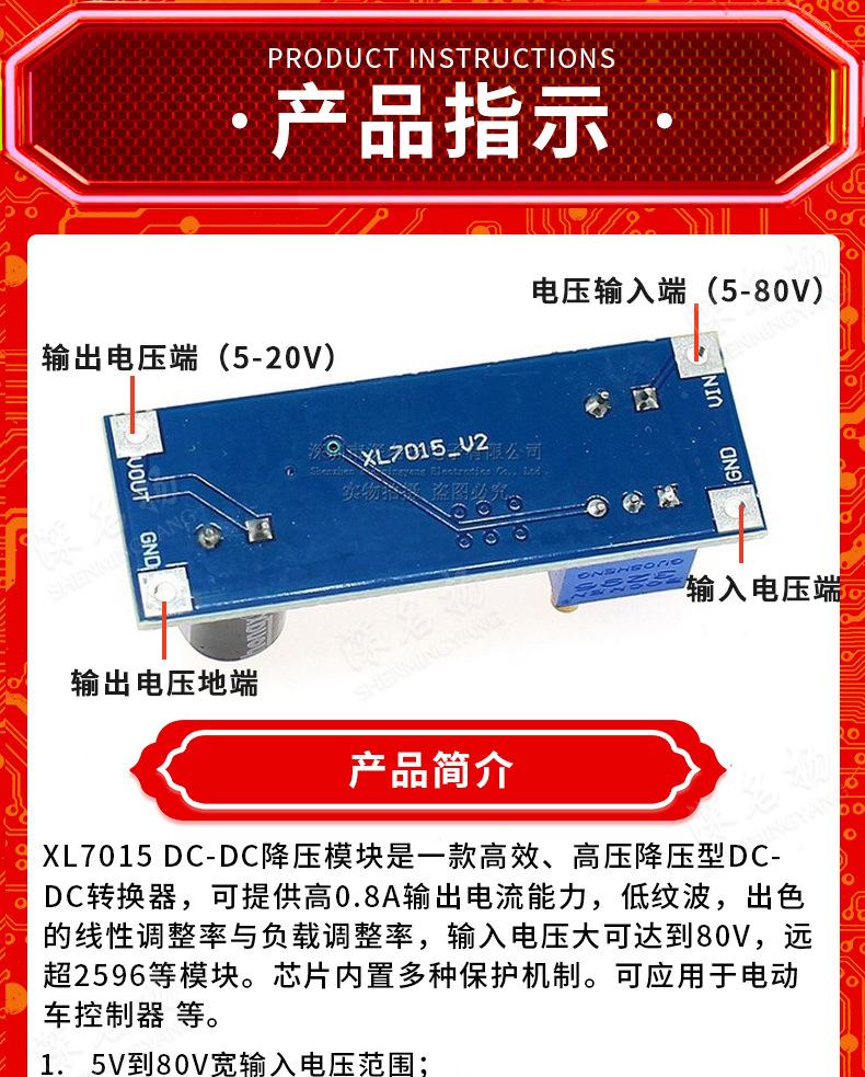 Módulo reductor de voltaje de entrada de 5 V a 80 V con convertidor CC-CC XL7015