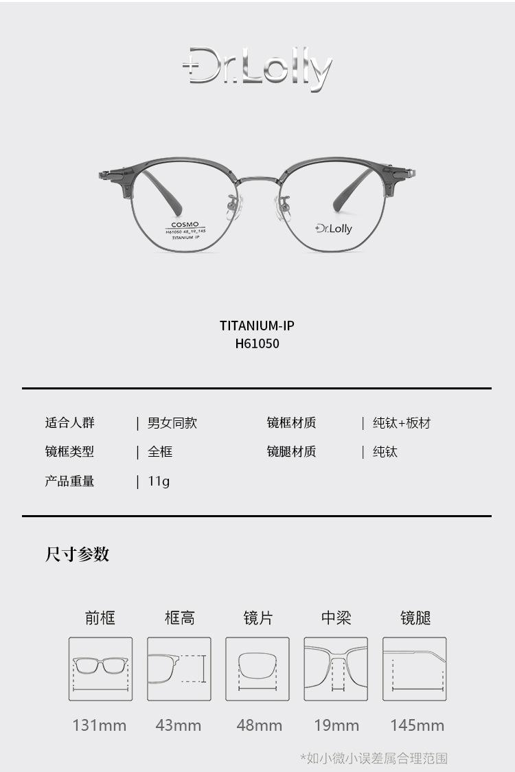 Gafas Danyang con montura de titanio puro ultraligeras DR.LOLLY, montura ovalada de titanio para miopía, con lentes de cara lisa y protección contra la luz azul.