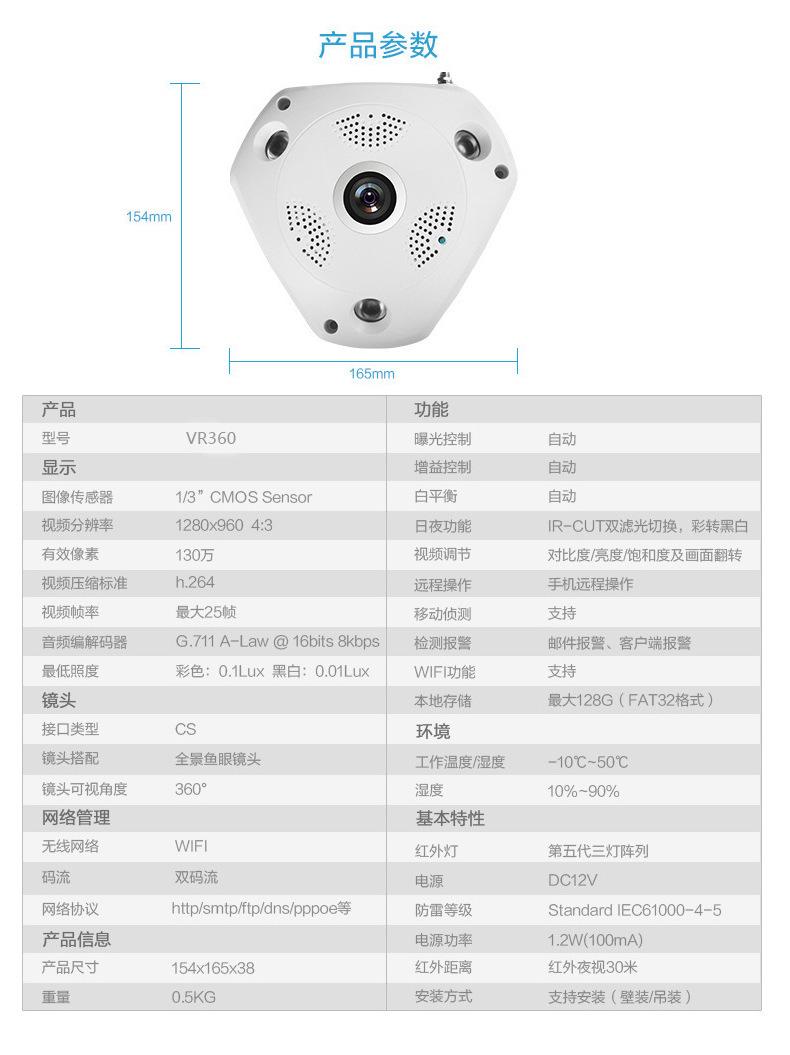 Lente Ojo de Pez de Vigilancia Inteligente AI para Uso en Interiores, Cámara Panorámica de Alta Definición de Triángulo Grande, Monitoreo Panorámico de 360 Grados
