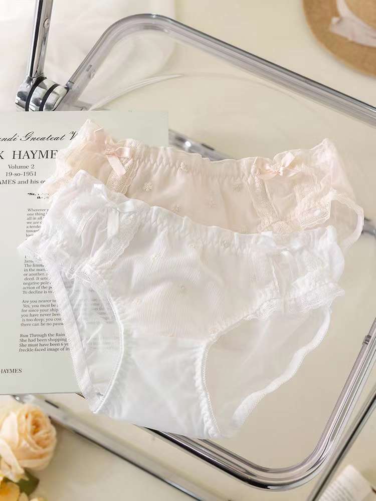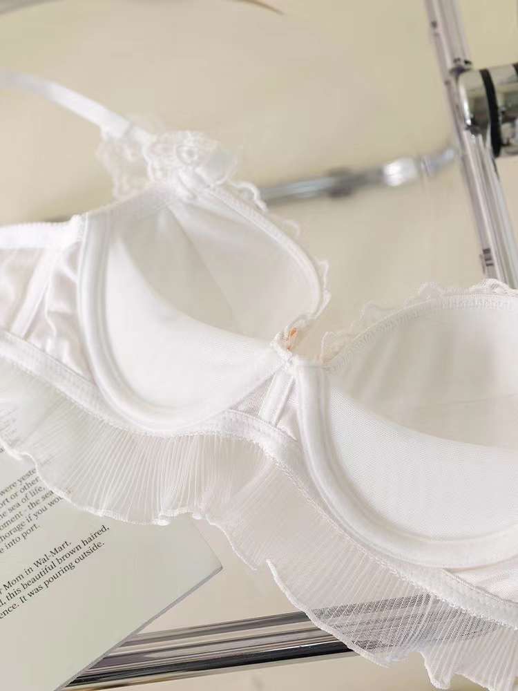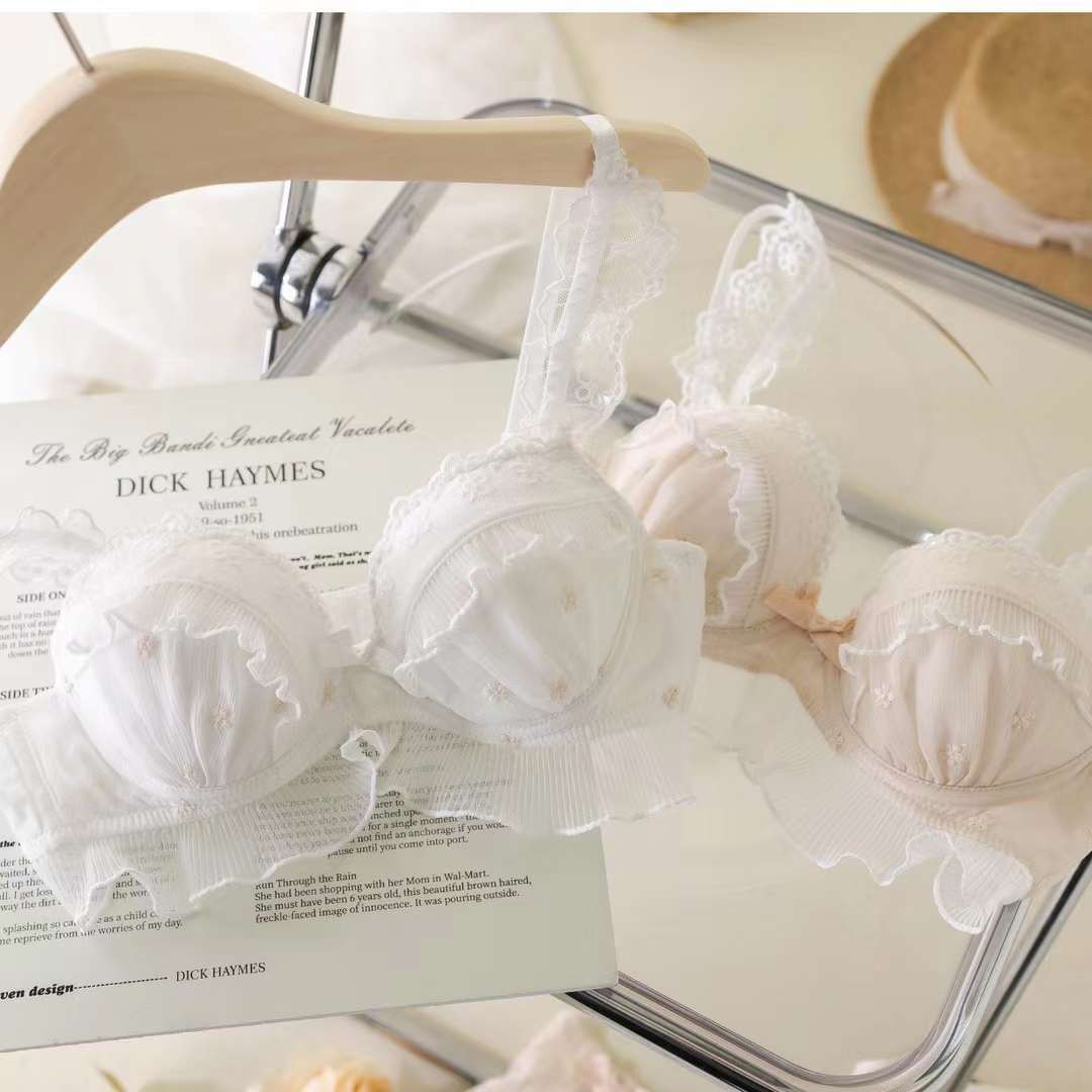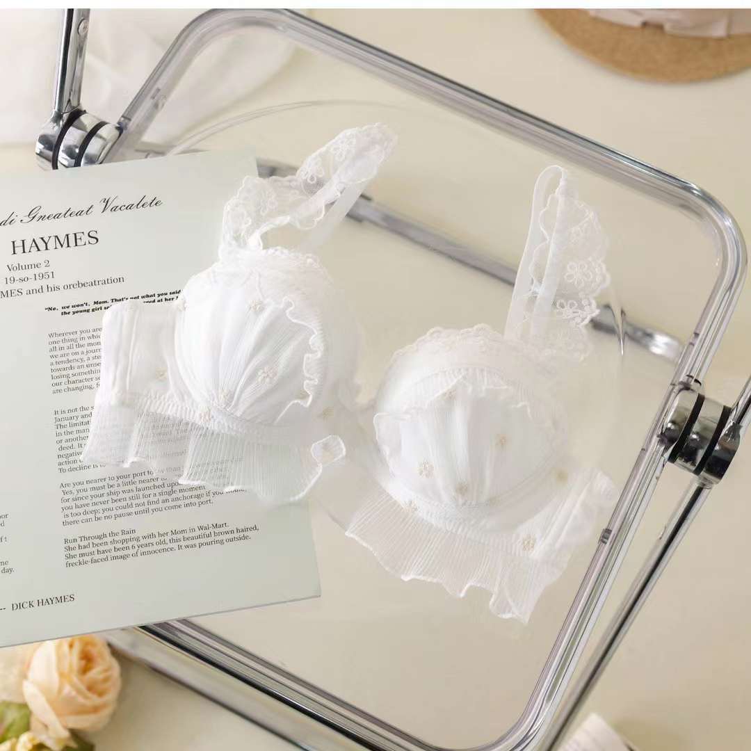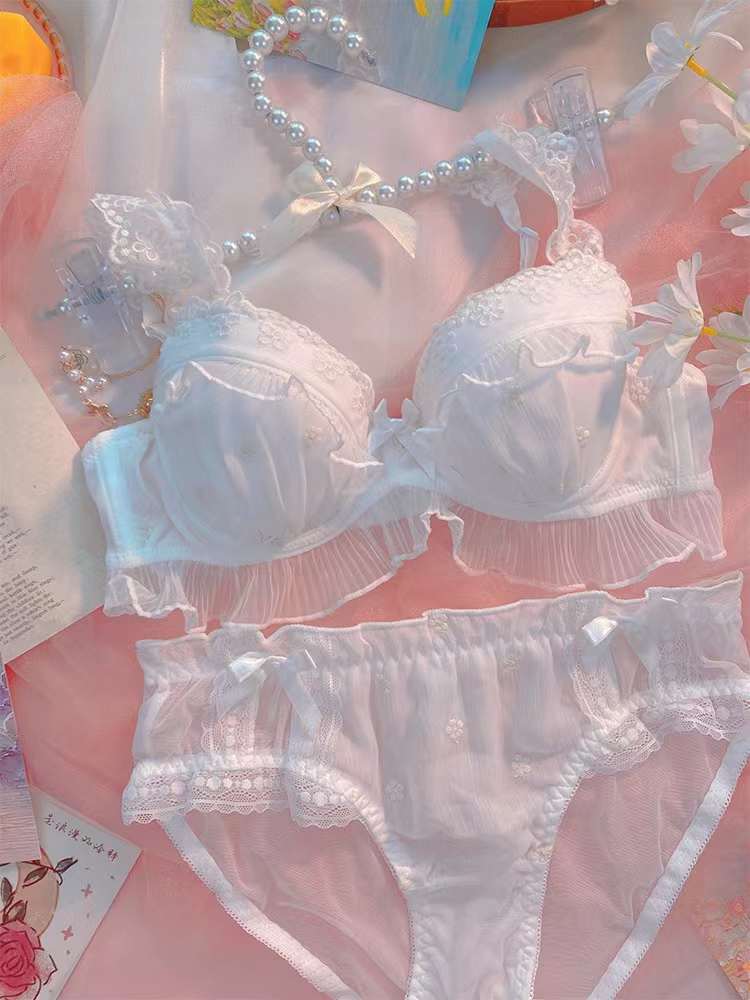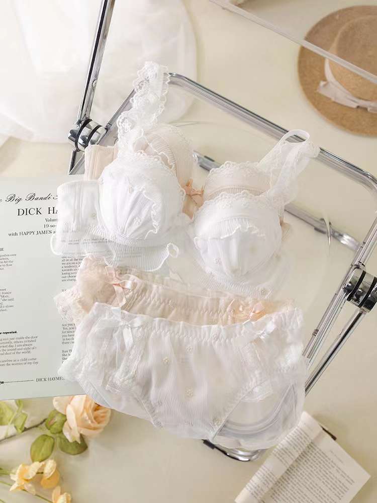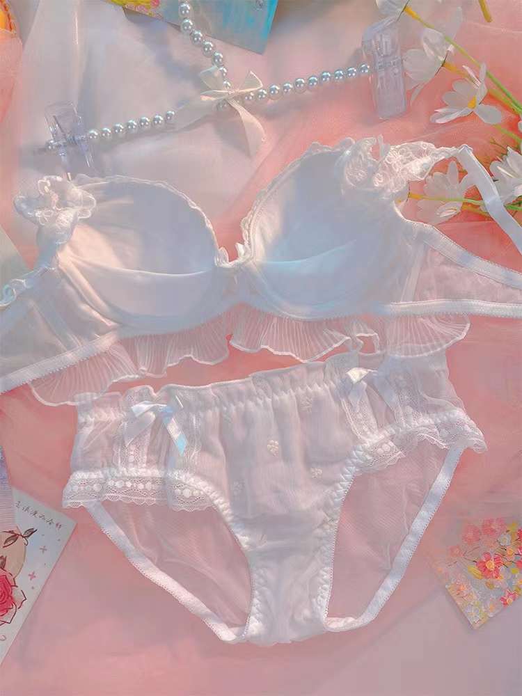 Ropa interior de encaje bordado estilo japonés para niña, realce para busto pequeño, transpirable, de encaje de malla, sujetador y braguita a juego, Colección Lateral