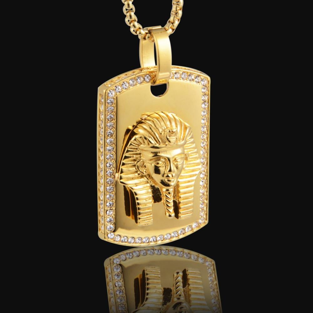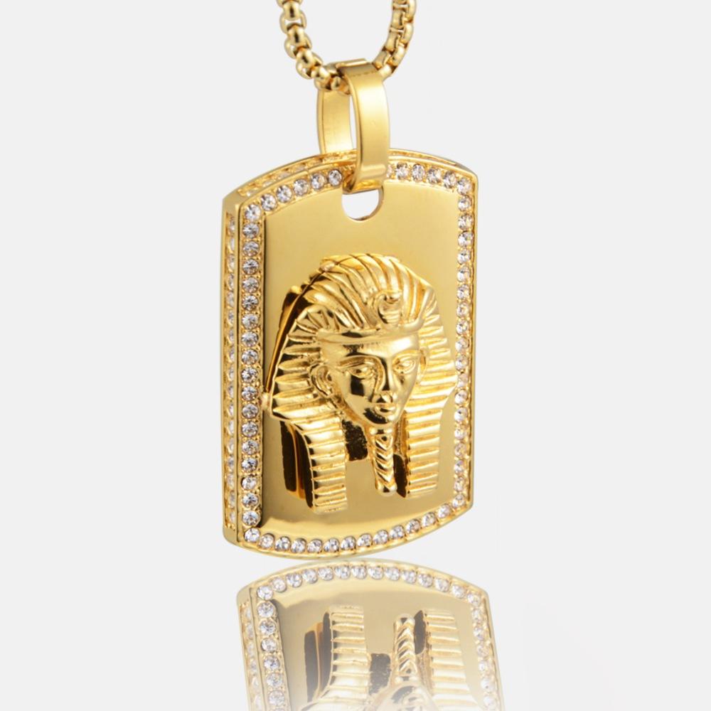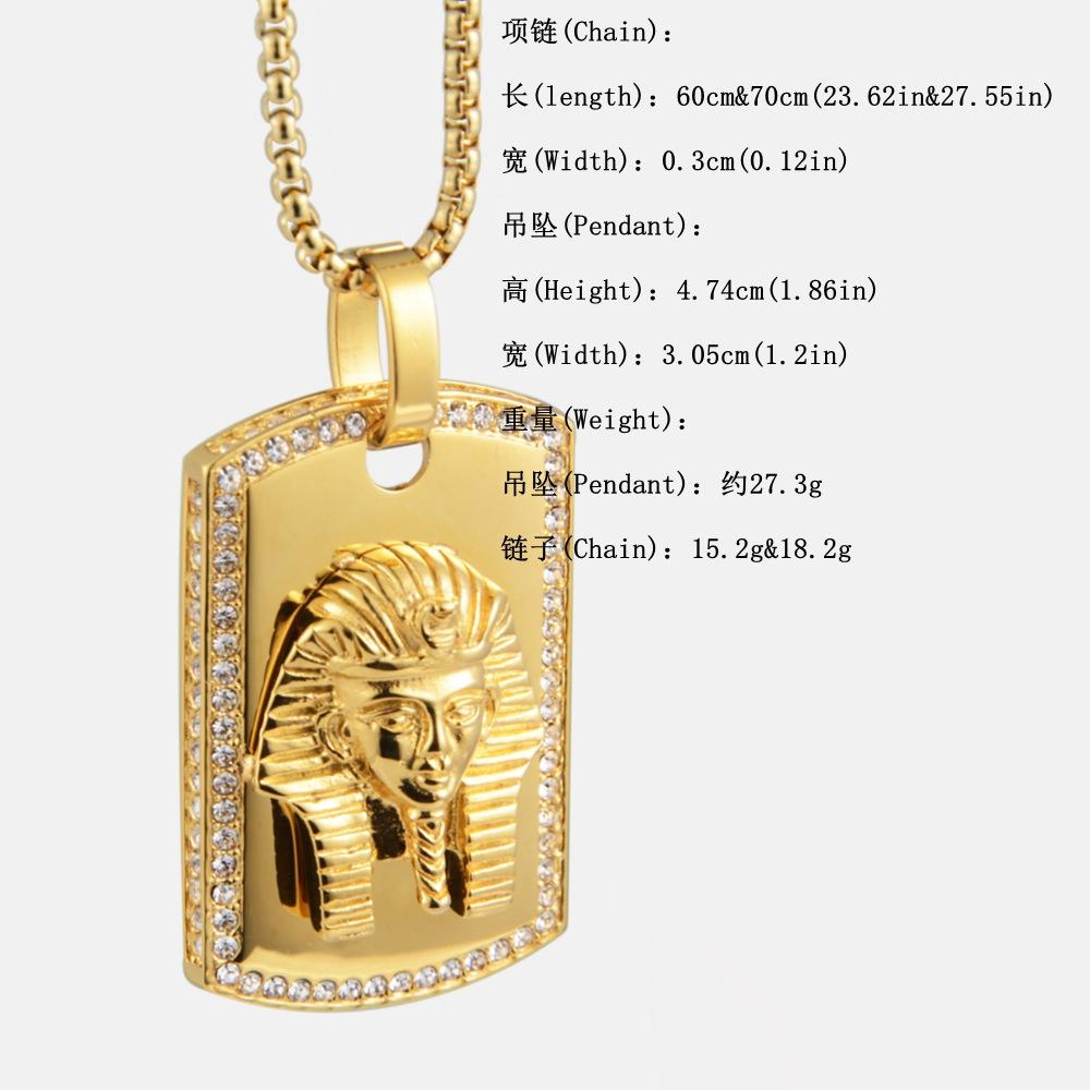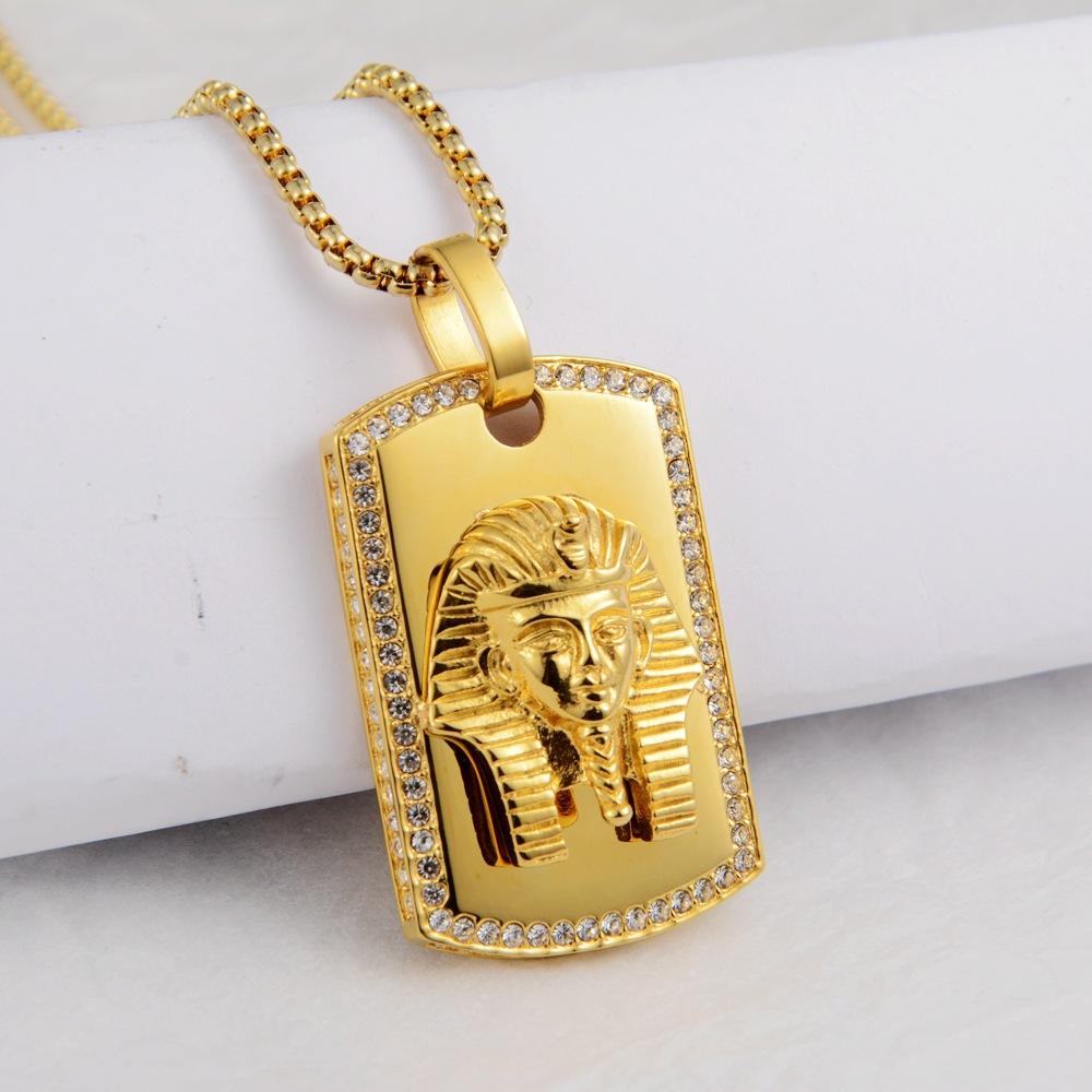 Collar con colgante cuadrado de faraón egipcio, personalizado, estilo hip hop, de acero de titanio y diamantes, para parejas, informal, para hombre y mujer.