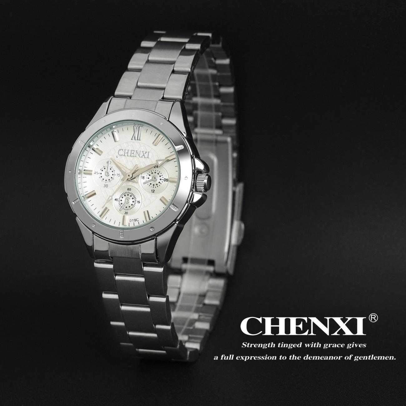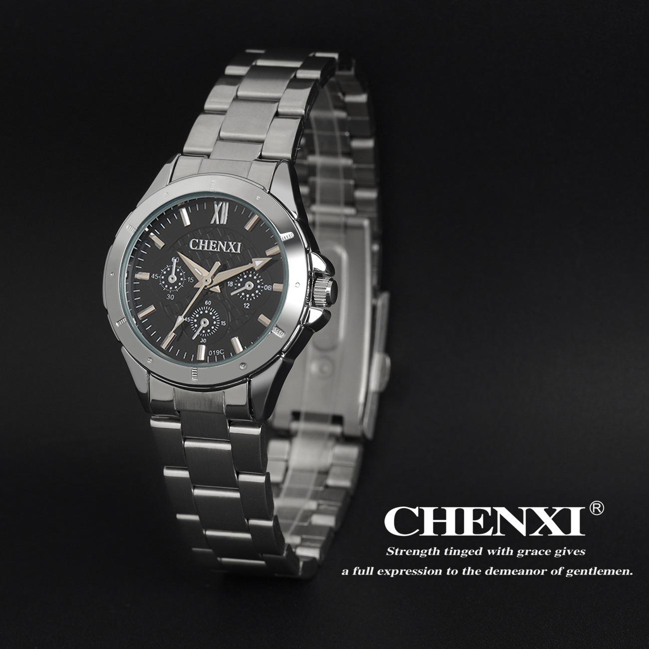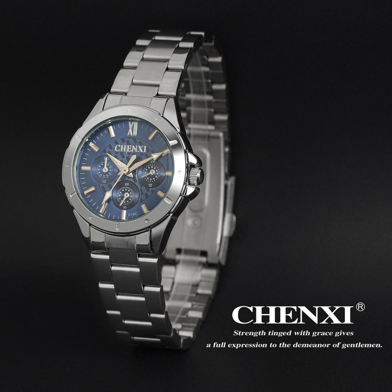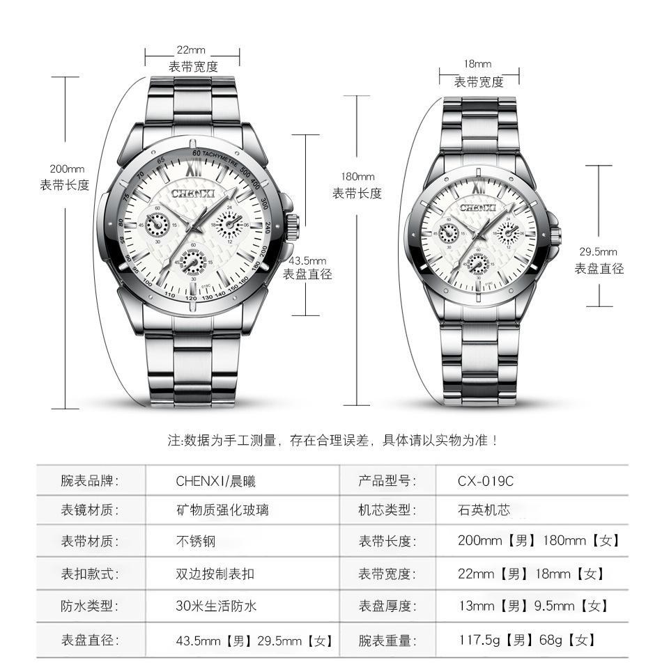 Reloj de pareja CHENXI Dawn Brand para hombre y mujer, de cuarzo, resistente al agua, con tres esferas, reloj de pulsera de acero para mujer, 019C