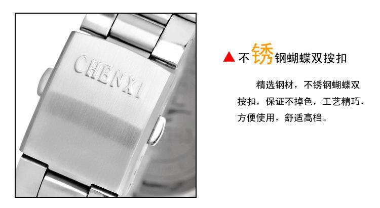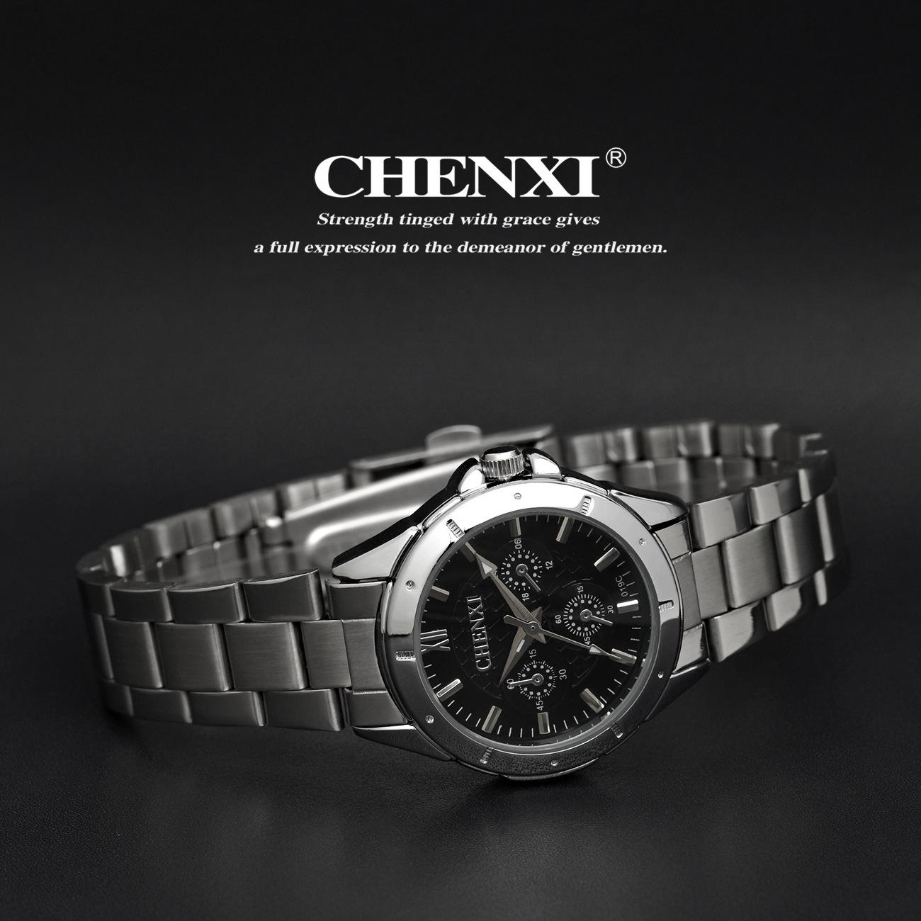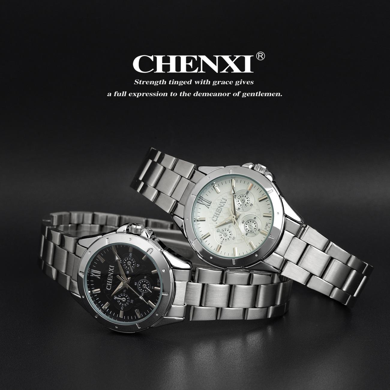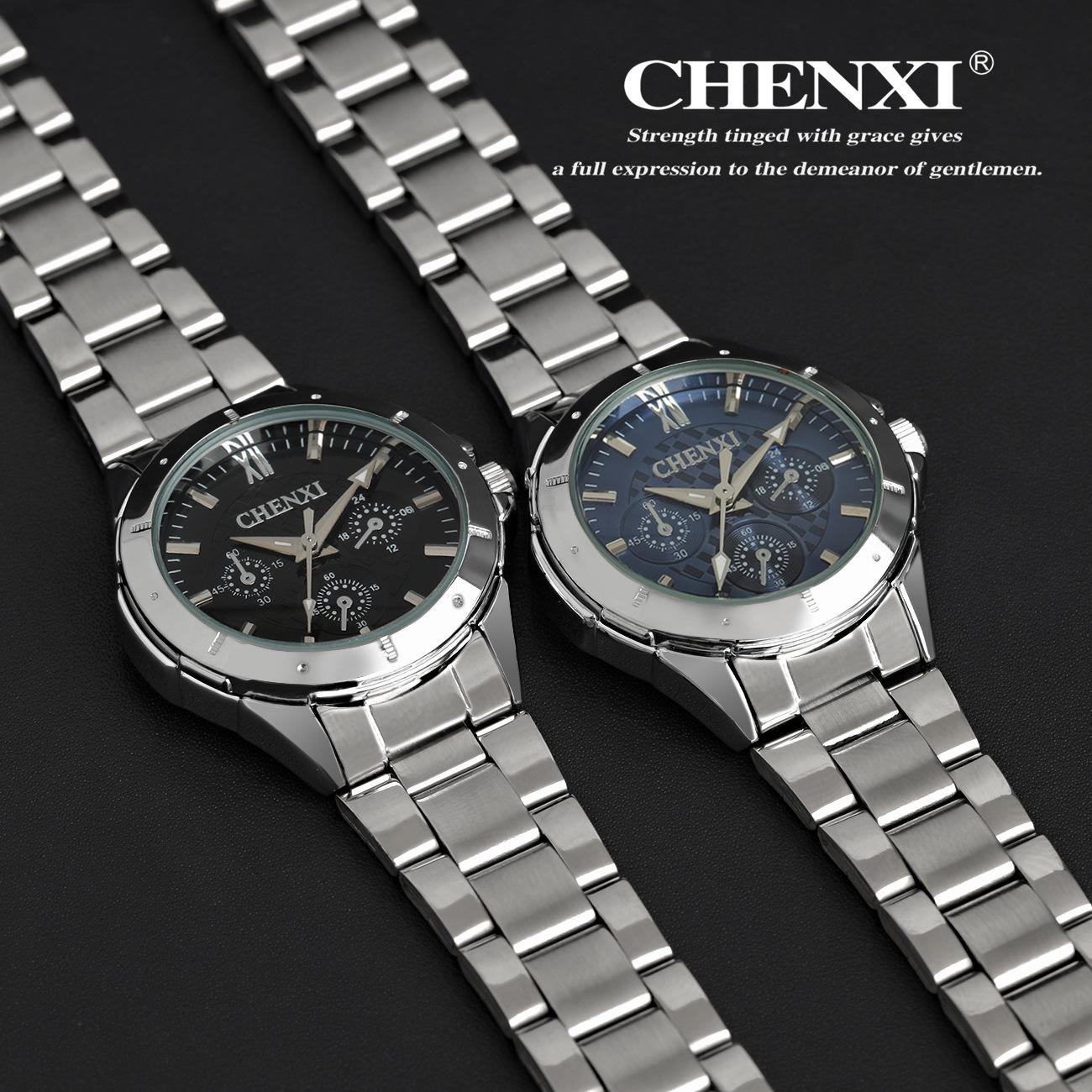 Reloj de pareja CHENXI Dawn Brand para hombre y mujer, de cuarzo, resistente al agua, con tres esferas, reloj de pulsera de acero para mujer, 019C