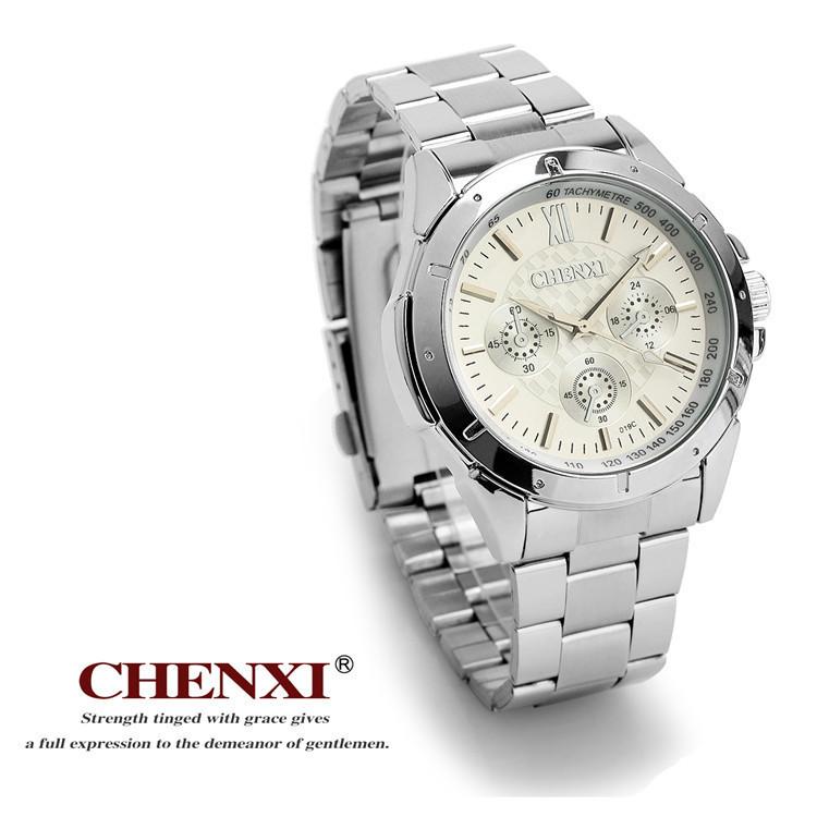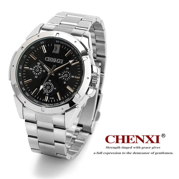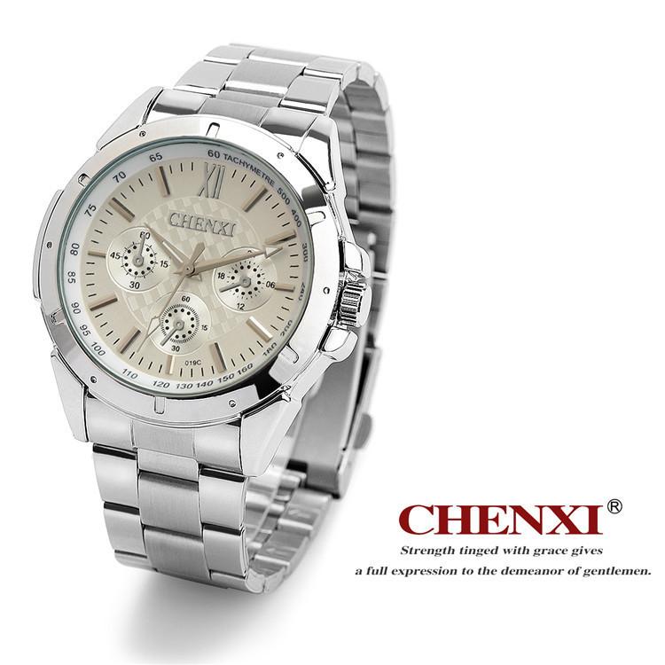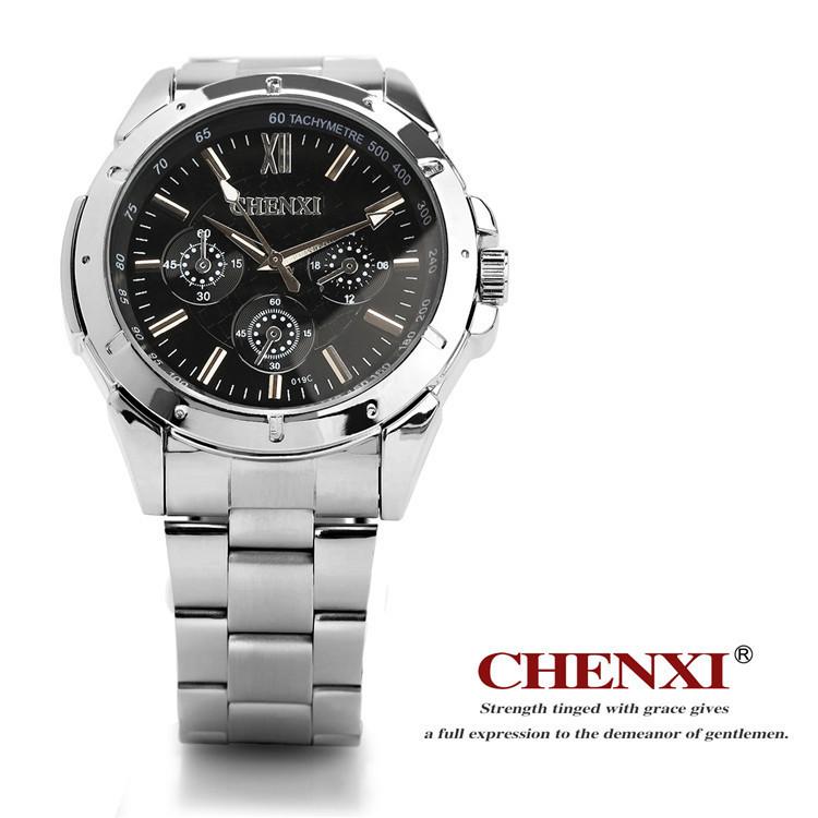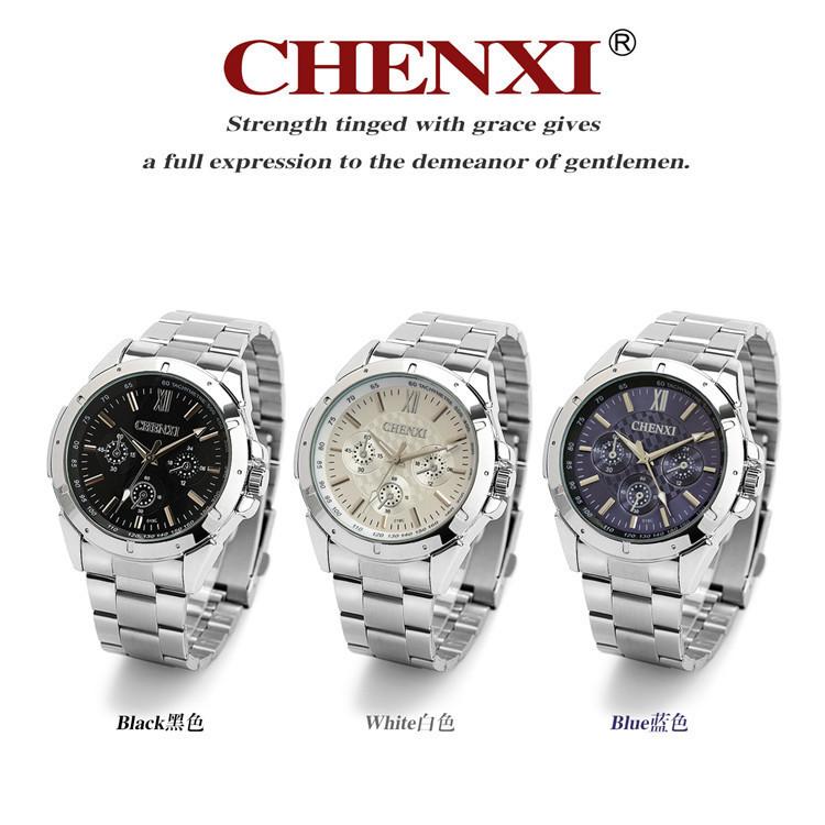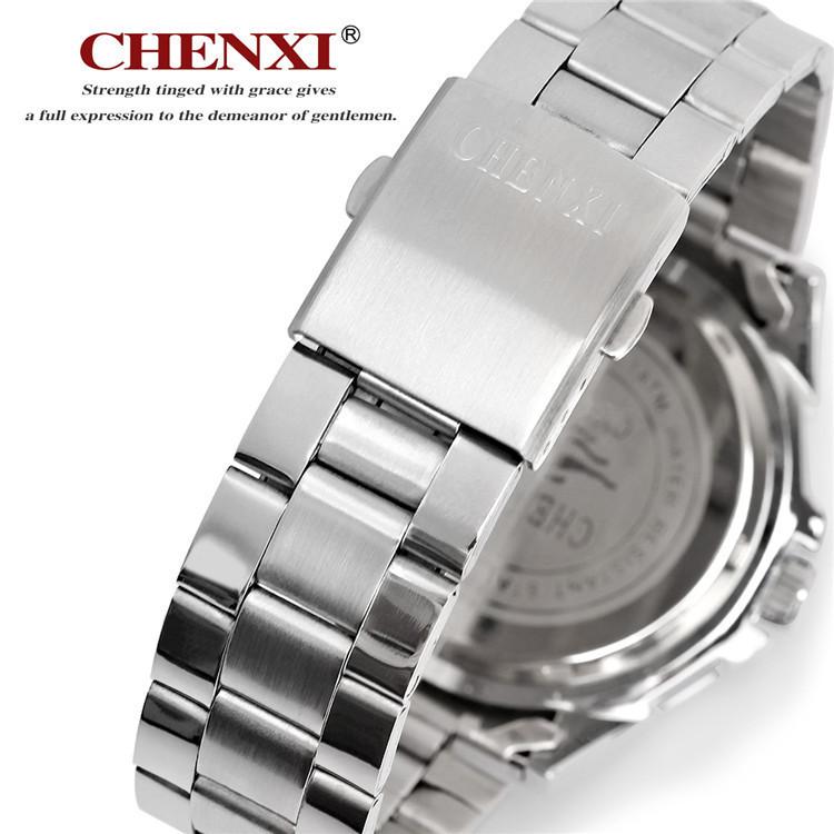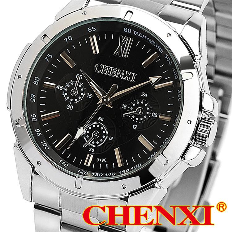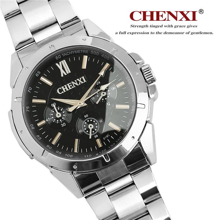 Reloj de pareja CHENXI Dawn Brand para hombre y mujer, de cuarzo, resistente al agua, con tres esferas, reloj de pulsera de acero para mujer, 019C