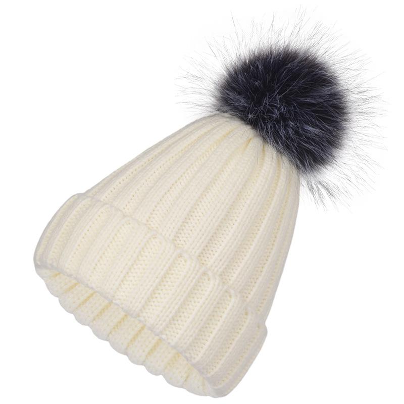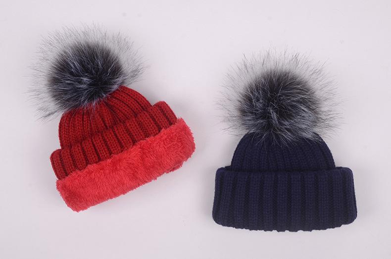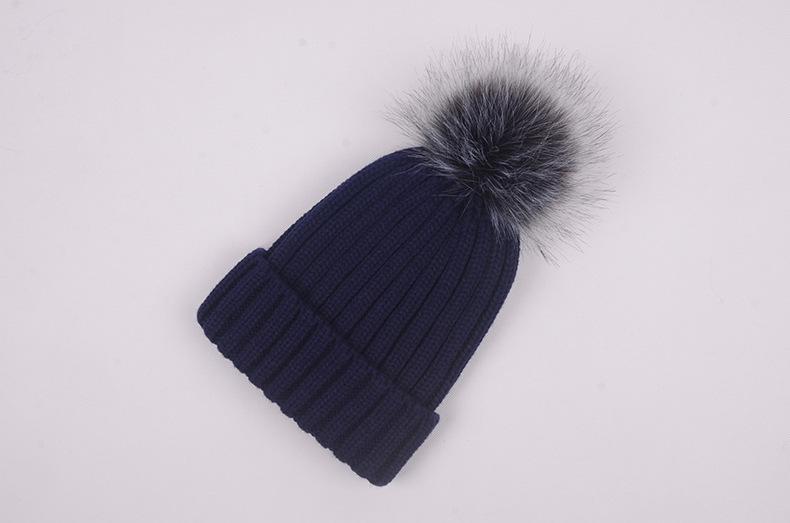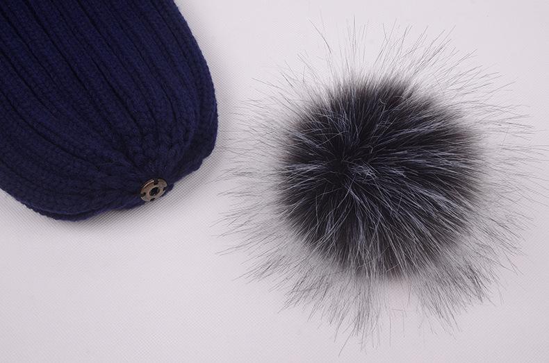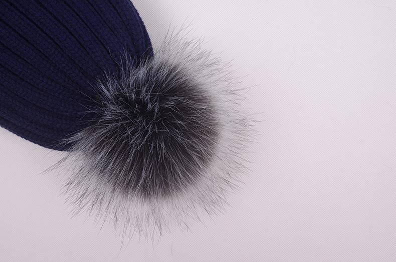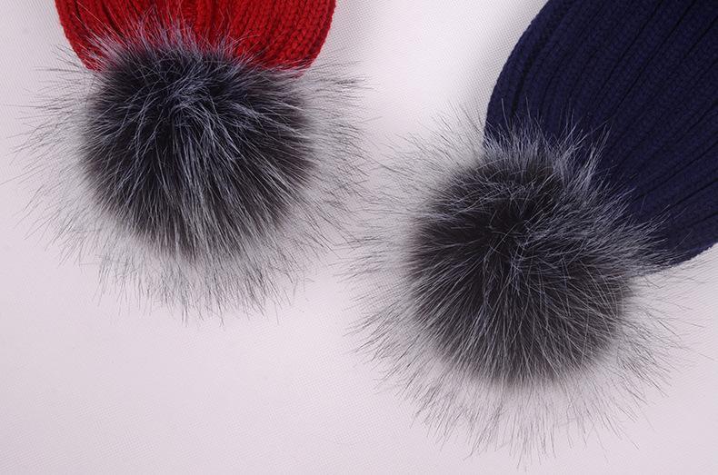 Sombrero de punto nuevo de otoño e invierno europeo y americano, sombrero de lana, bola de piel de zorro plateado de imitación | ||