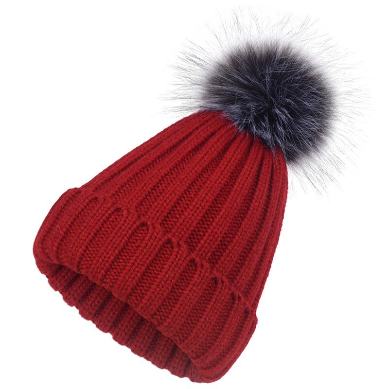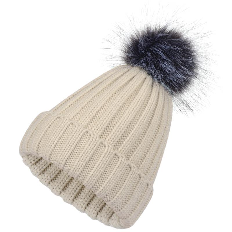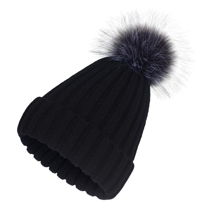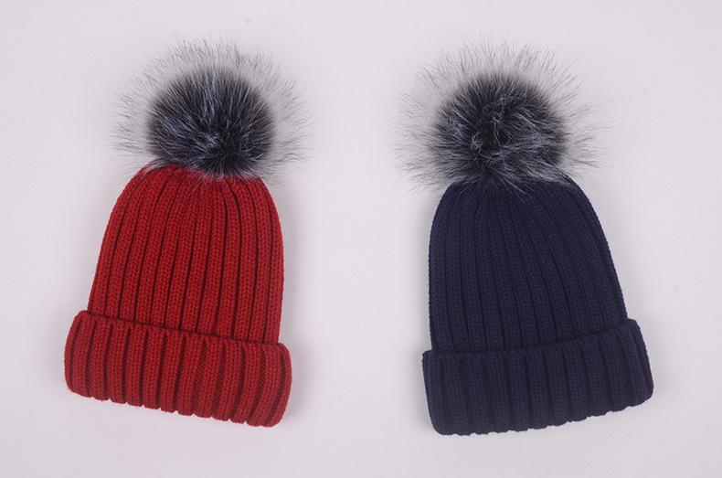 Nombre del producto: M-037 Gorro de lana acrílica con pompón de lana simple de zorro plateado de imitación | ||