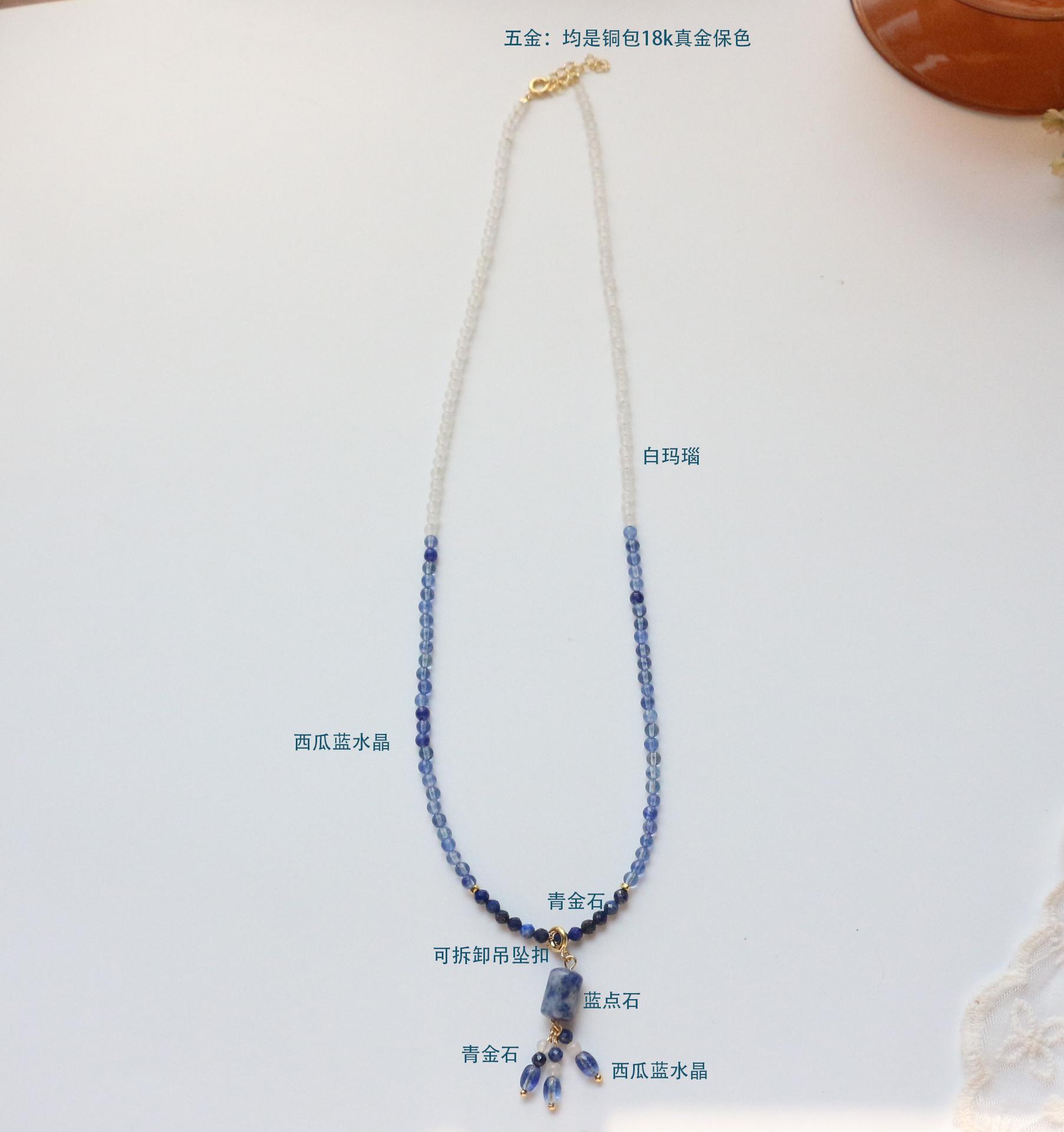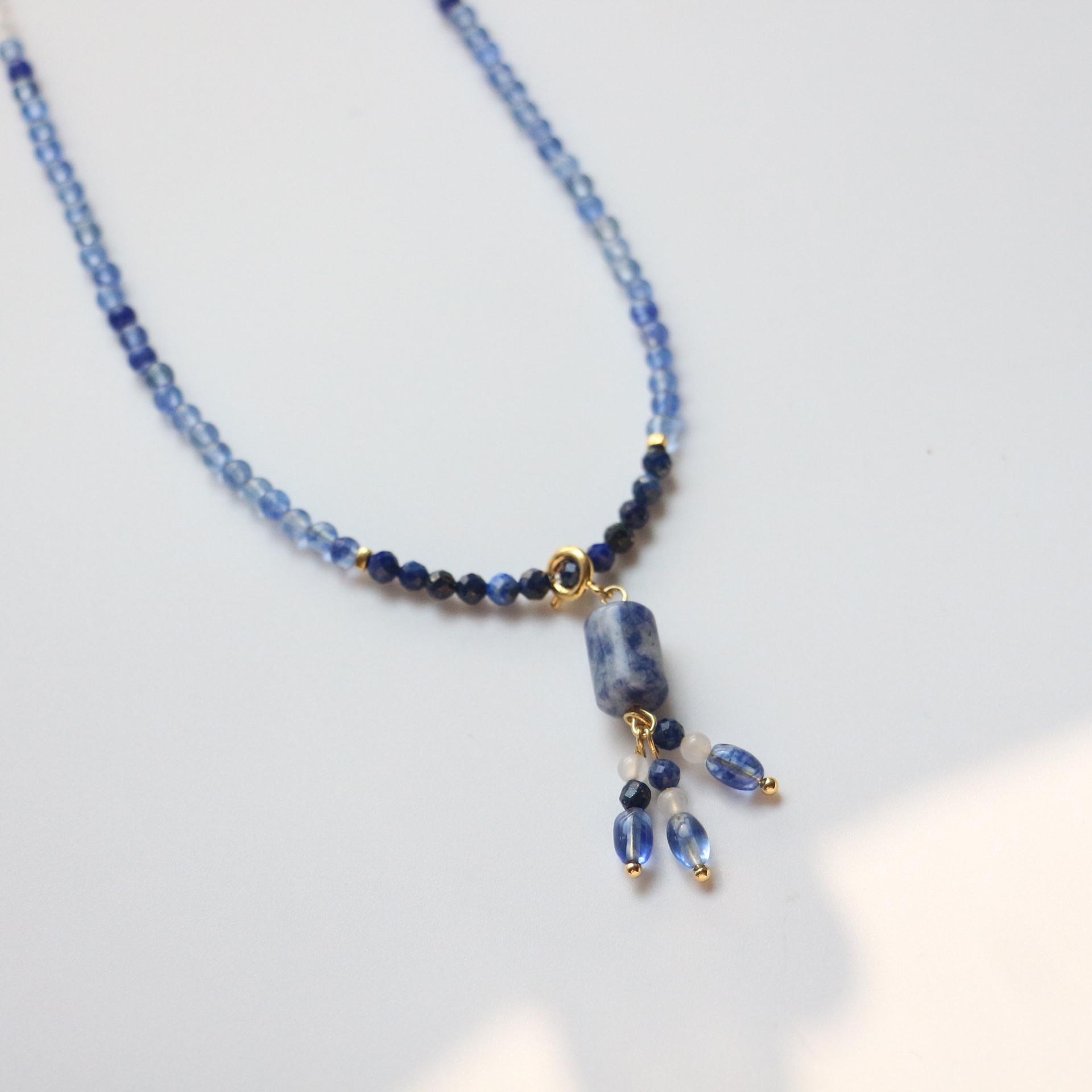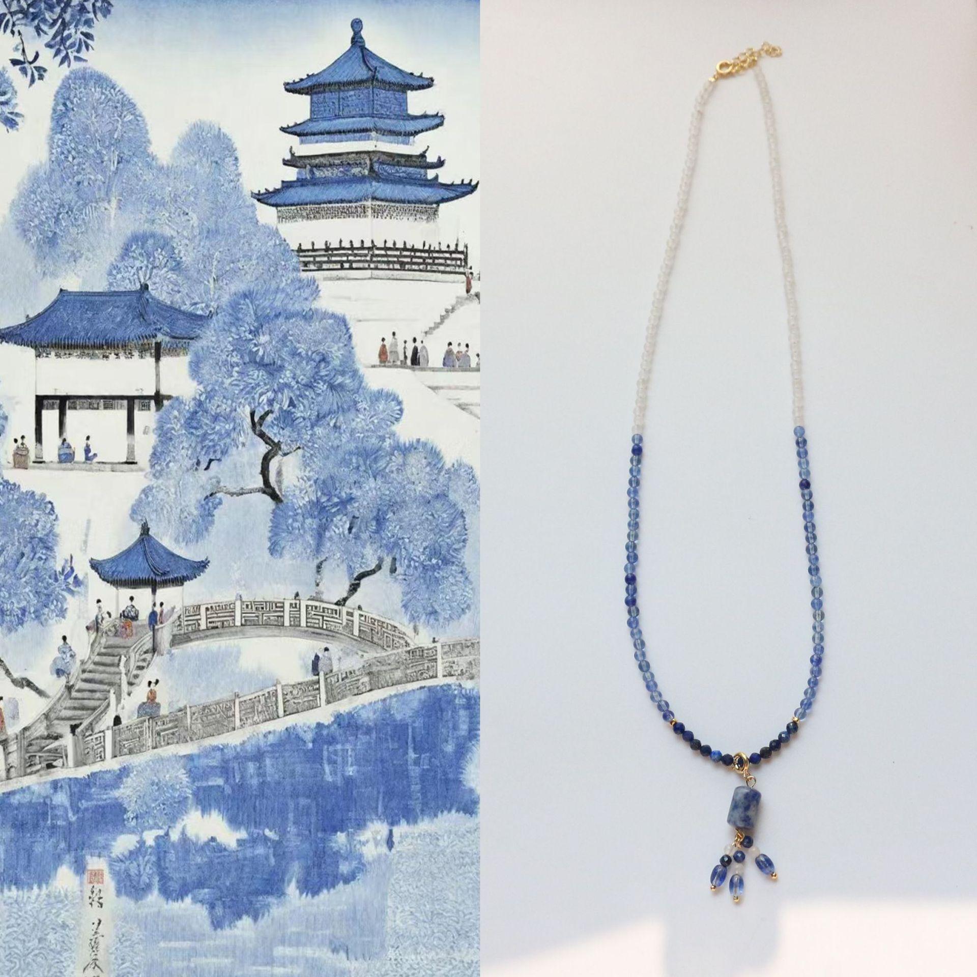 Collar de porcelana azul y blanca con piedra natural azul y blanca, pintura de tinta a juego, accesorios de estilo nacional, nuevo collar de cuentas chino, suministro transfronterizo