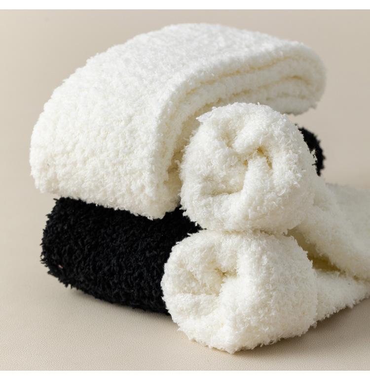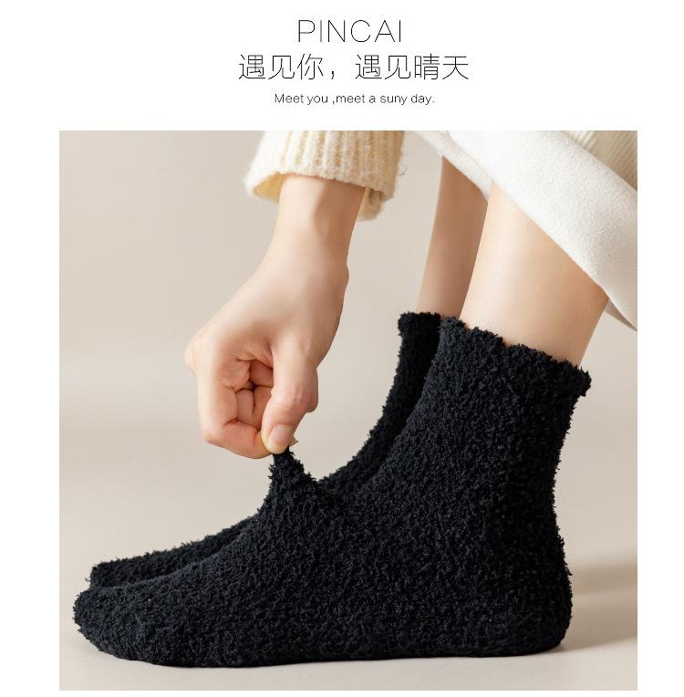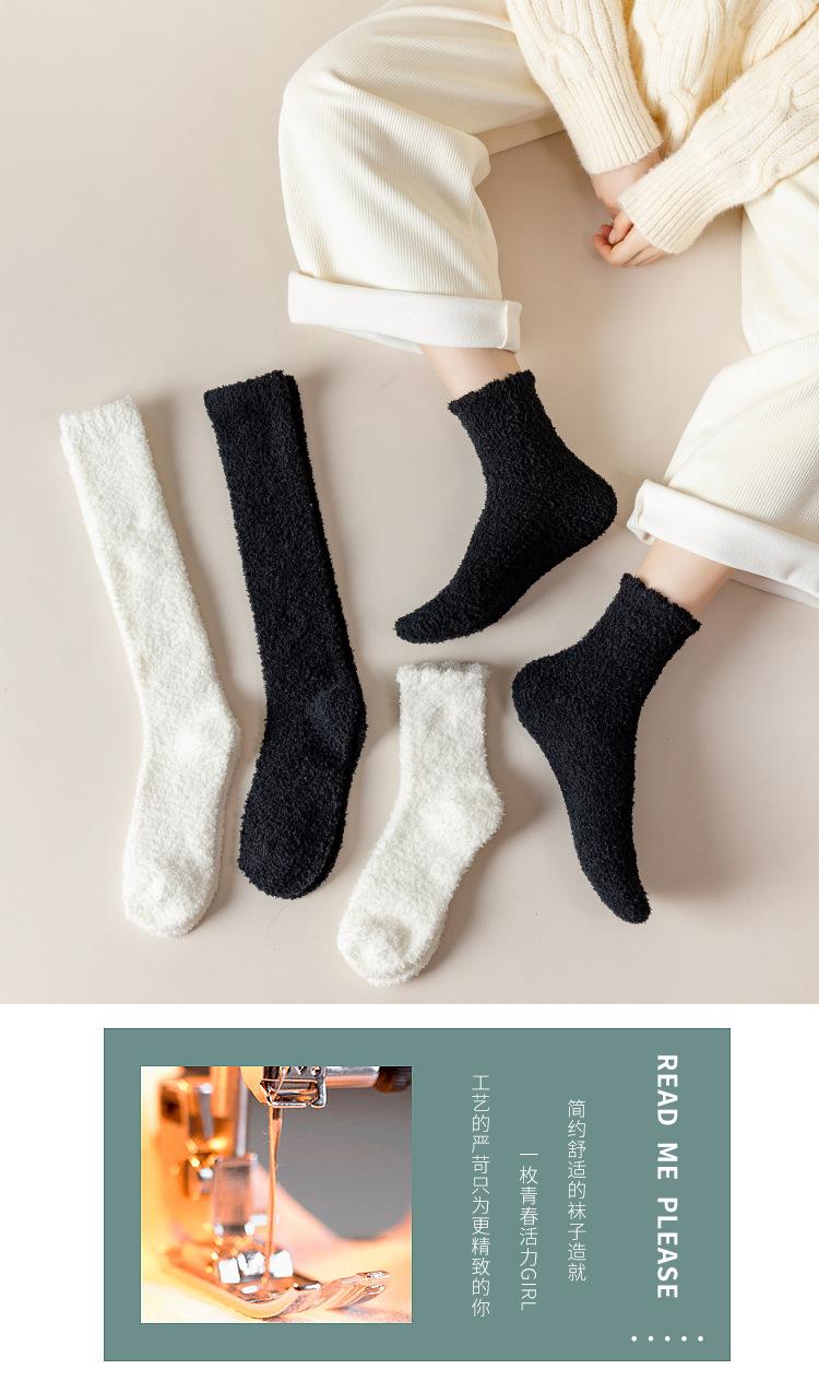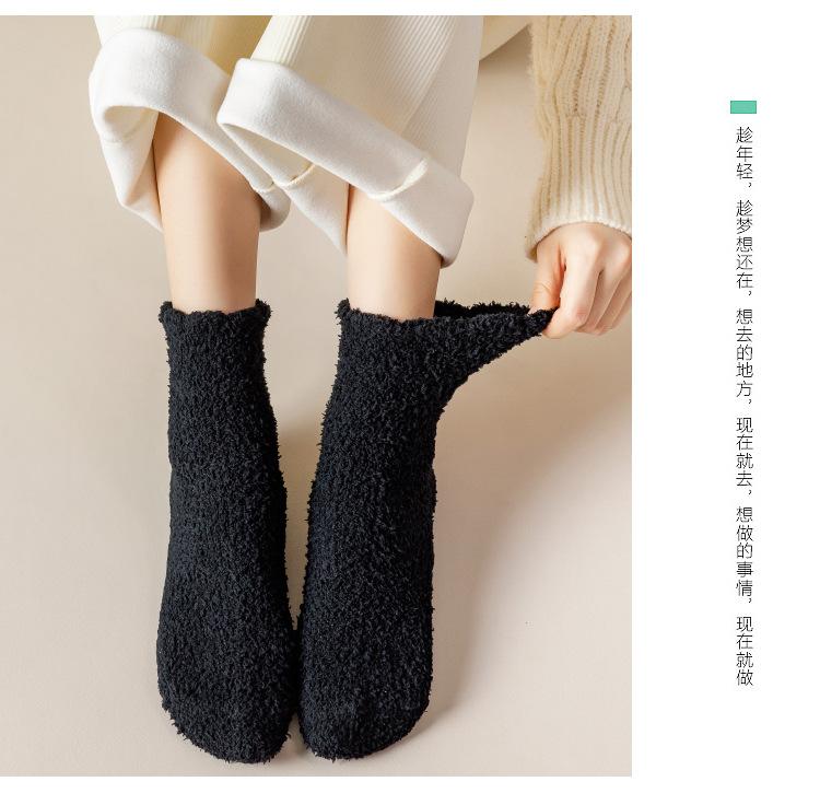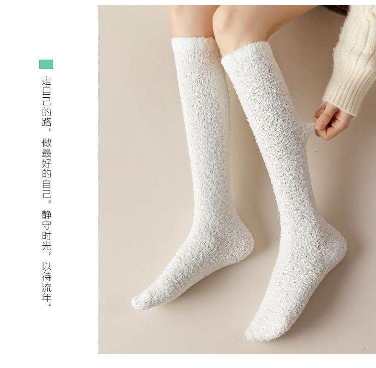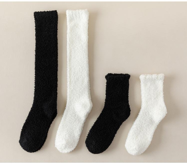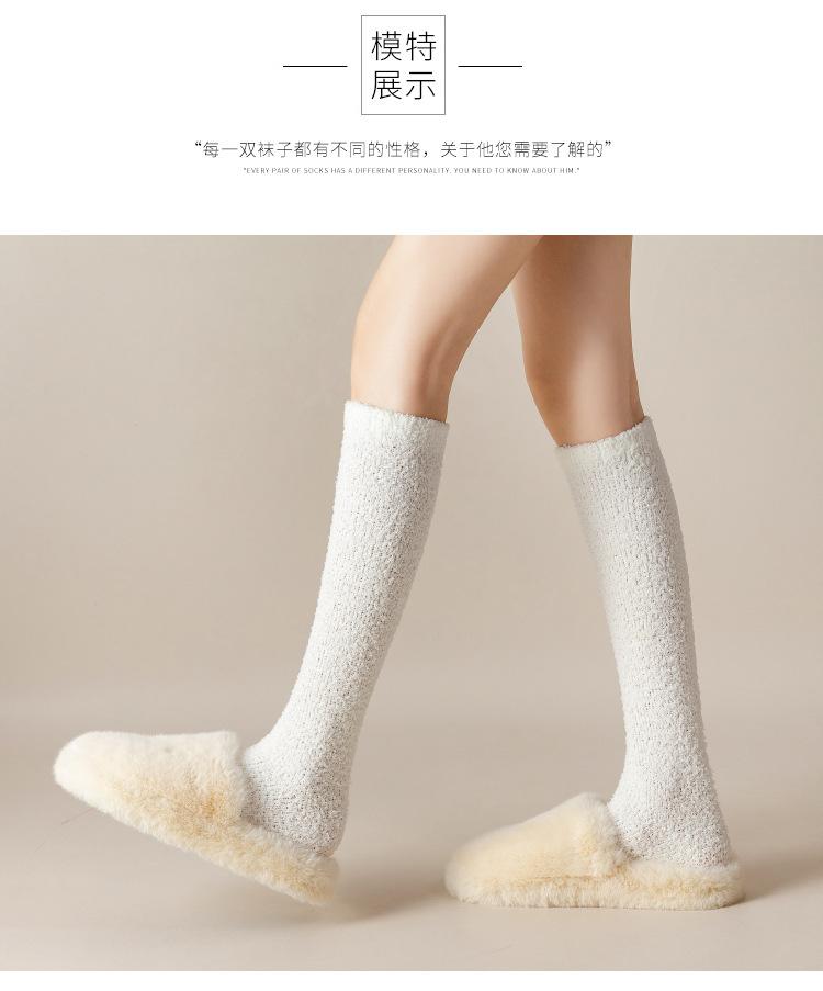 Calcetines de pantorrilla de forro polar de invierno cálido de forro polar coral Alfombra de toalla para piso Hogar para dormir Color sólido Calcetines para niños en el tubo