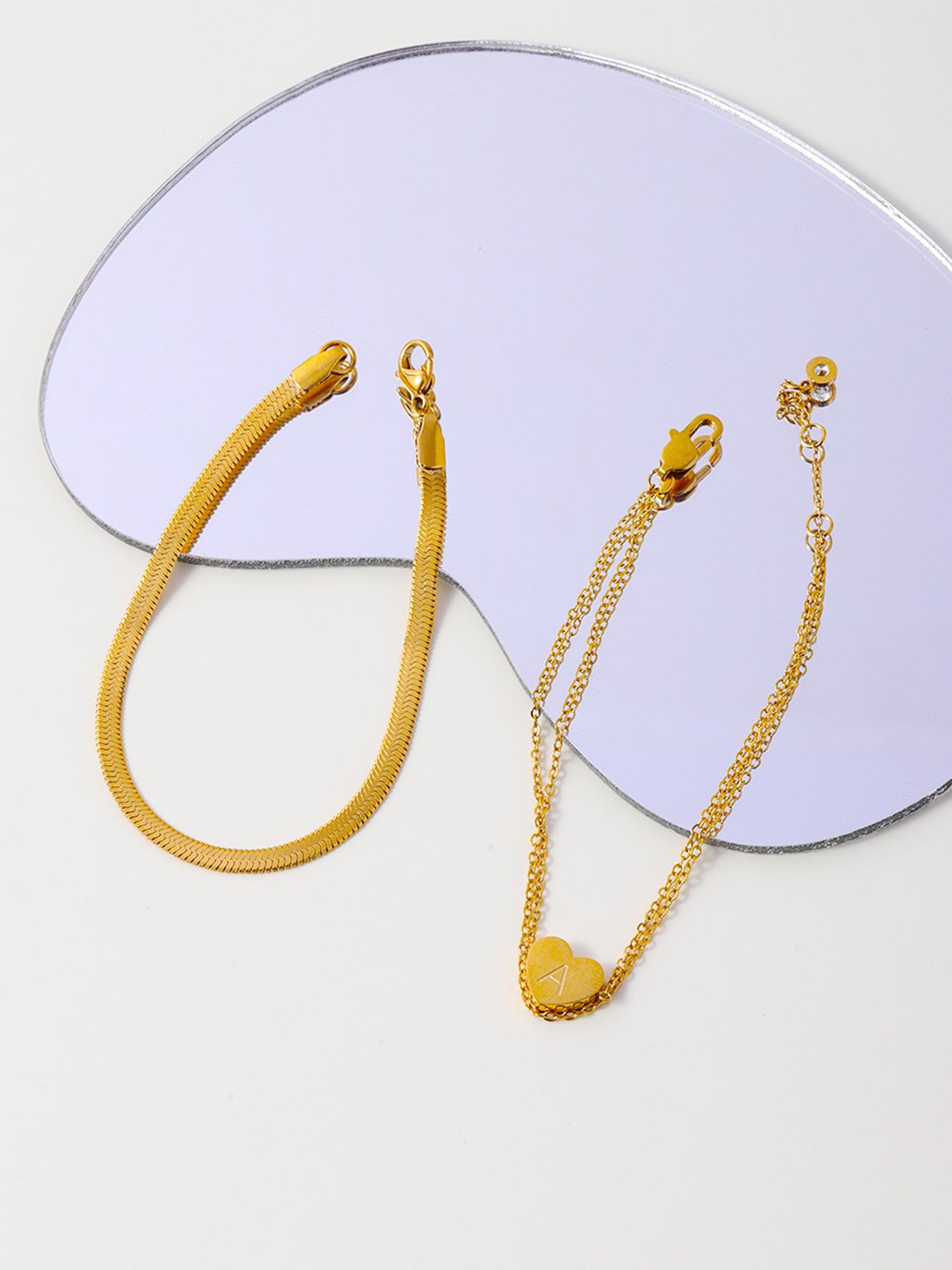 Love bracelet, Flat snake chain, Gold, Steel color, Rose gold