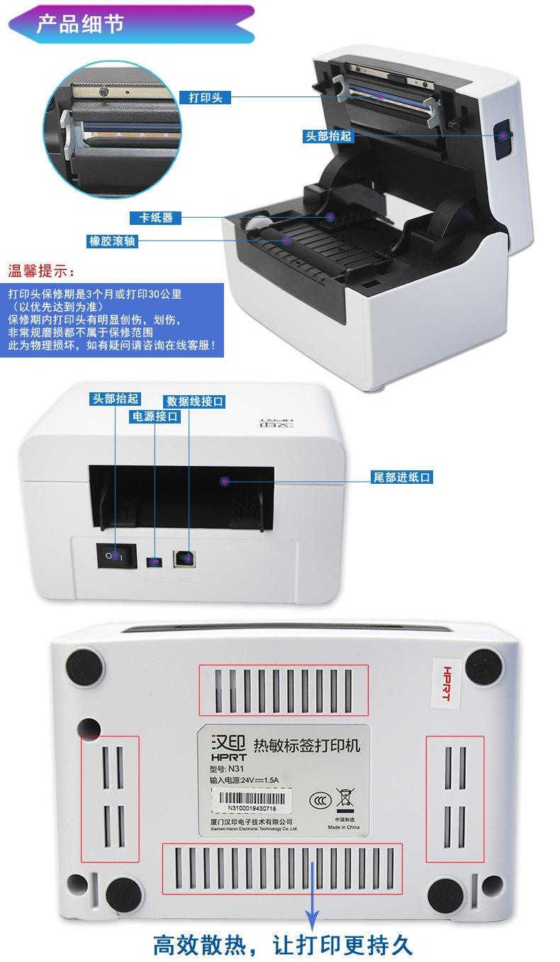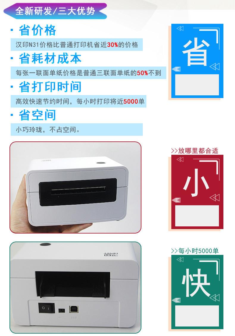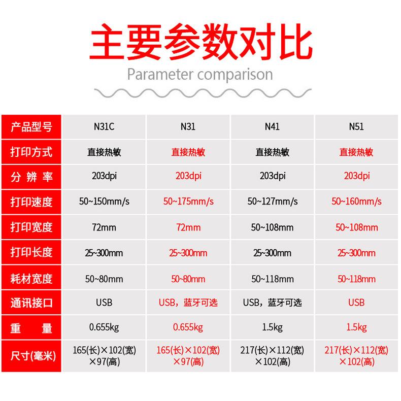 Impresora de etiquetas adhesivas de código de barras Han Yin N31/N41 Express, máquina electrónica individual con Bluetooth