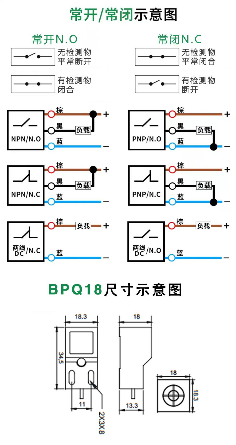 Bpq18-k04n1: distance: 4mm npn normally open convex head non-embedded q18, Bpq18-k04n2: distance: 4mm npn norm...