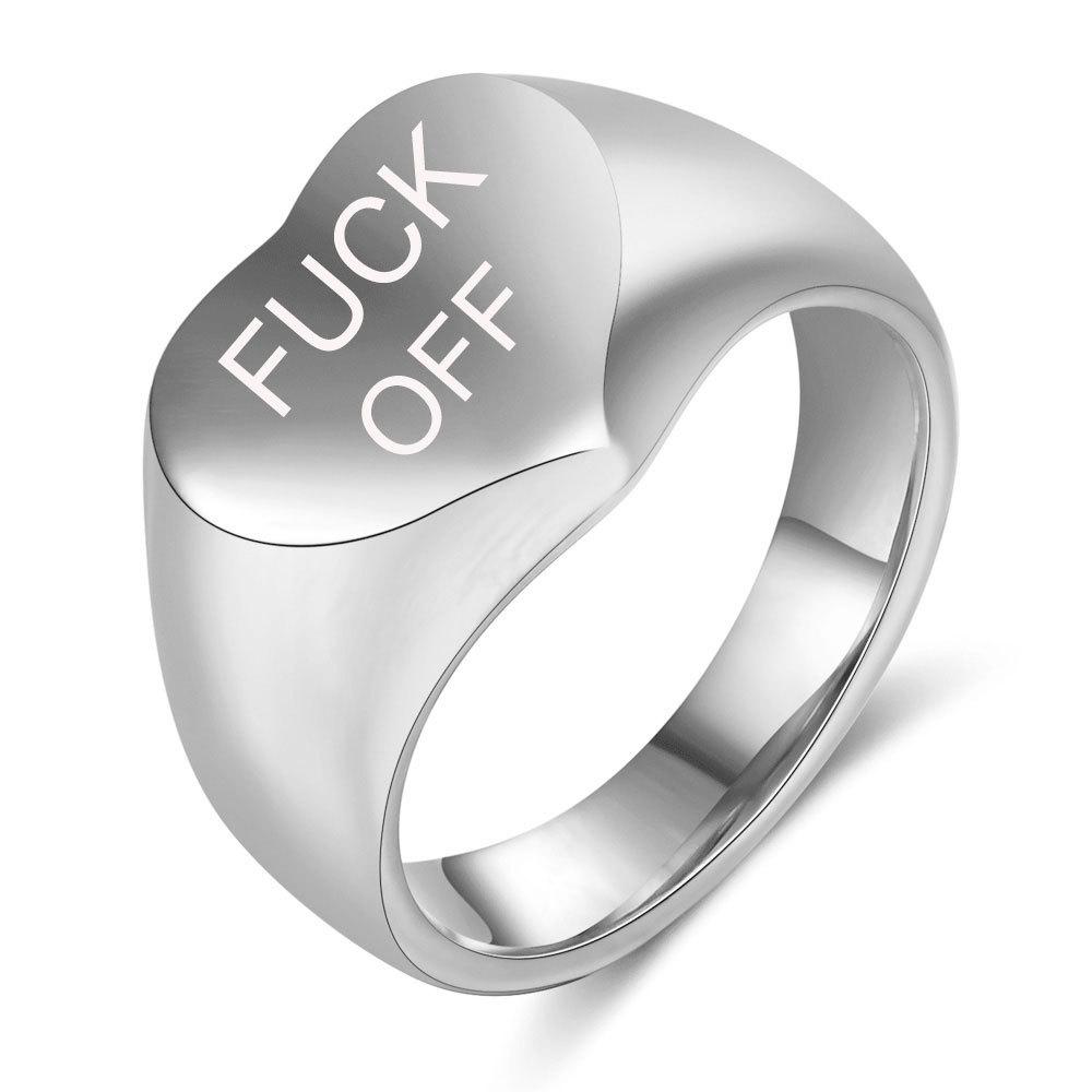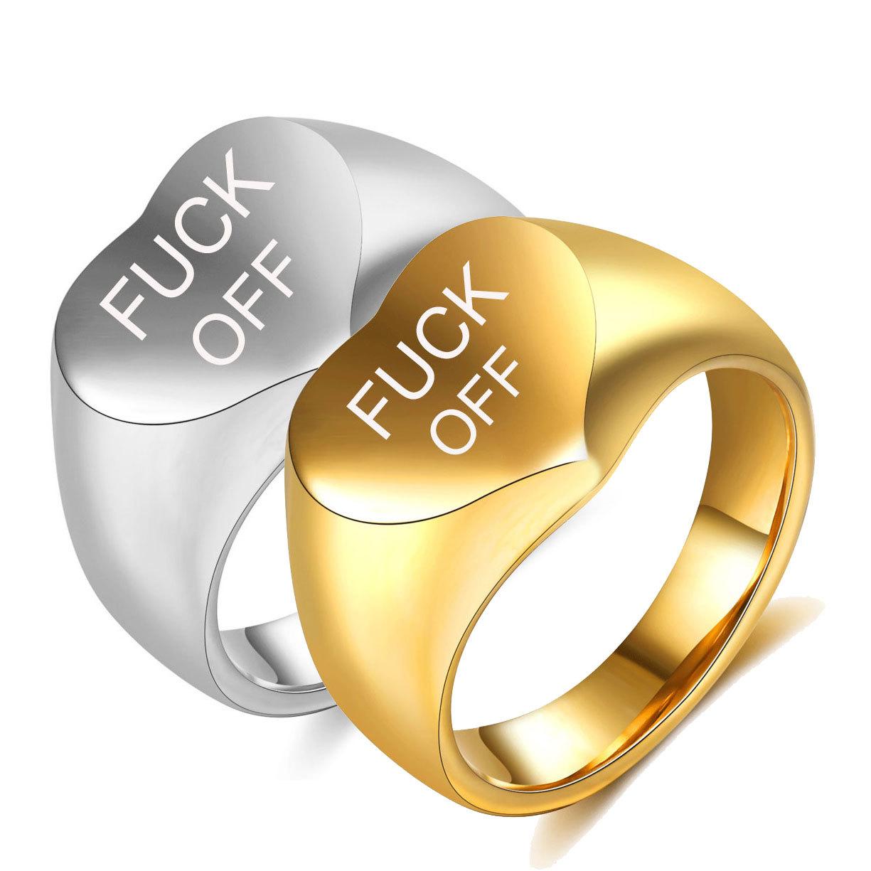 Anillo de acero de titanio con el amor, nuevo y superventas, de moda europea y americana, de acero inoxidable en oro de 18 quilates, con grabado de letras "FUCK OFF"