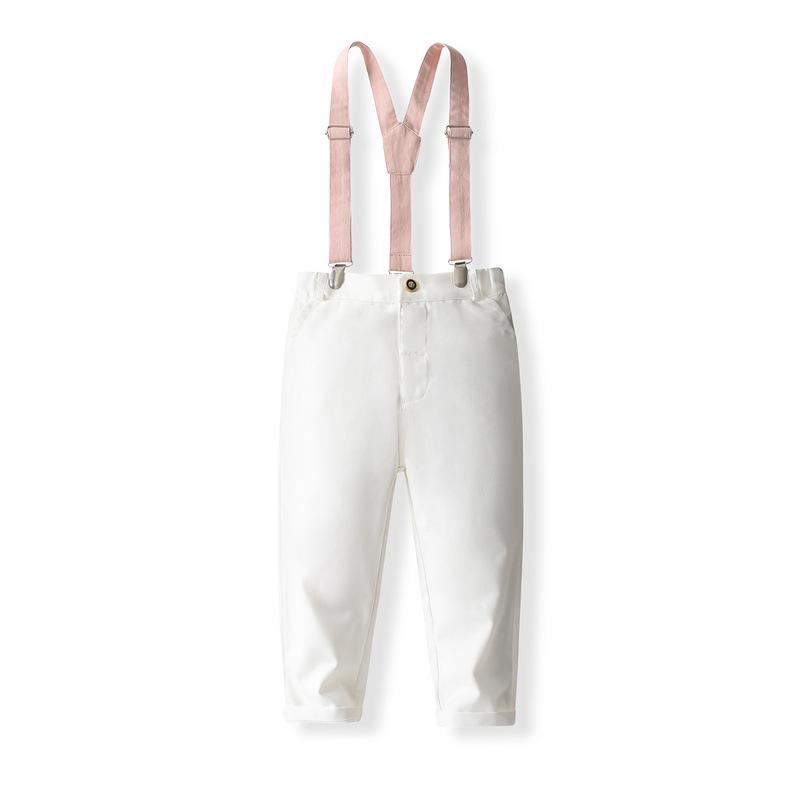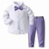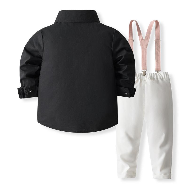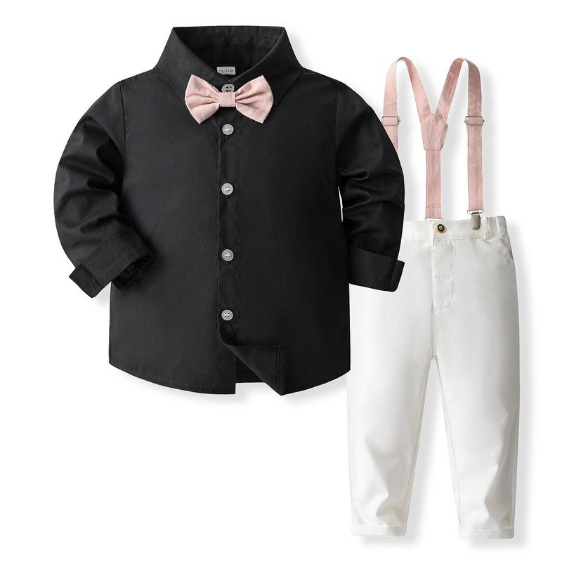 Traje de tirantes con lazo para niño, primavera y otoño, nuevo vestido pequeño, ropa de actuación para presentador de piano para bebé
