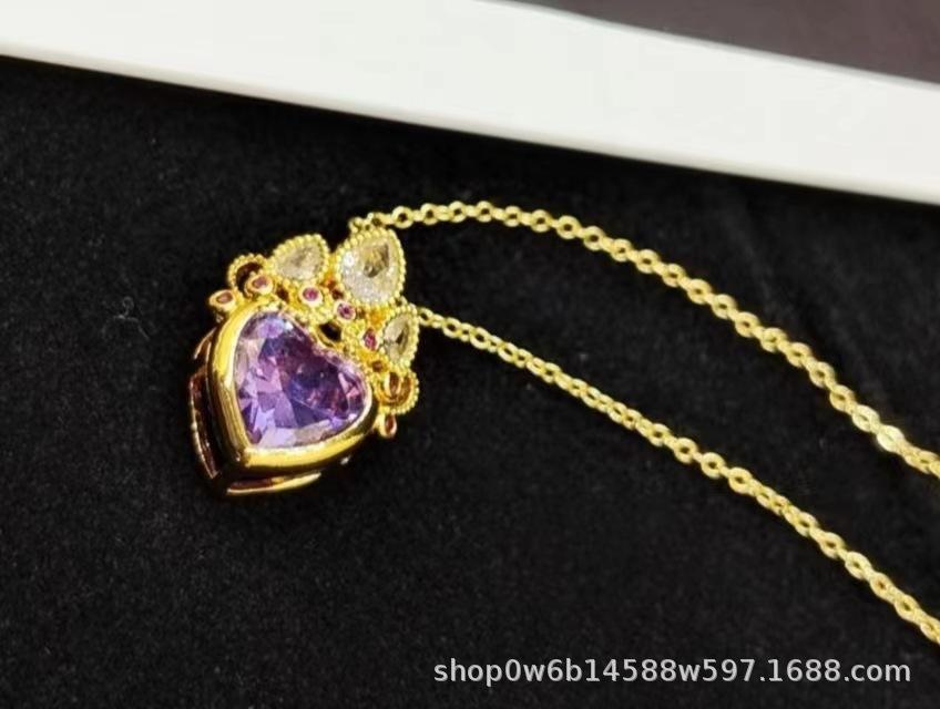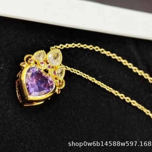 Temperamento europeo y americano transfronterizo caricatura colgante hueco en forma de corazón amor cadena clavicular accesorios collar de diamantes femenino corona simple